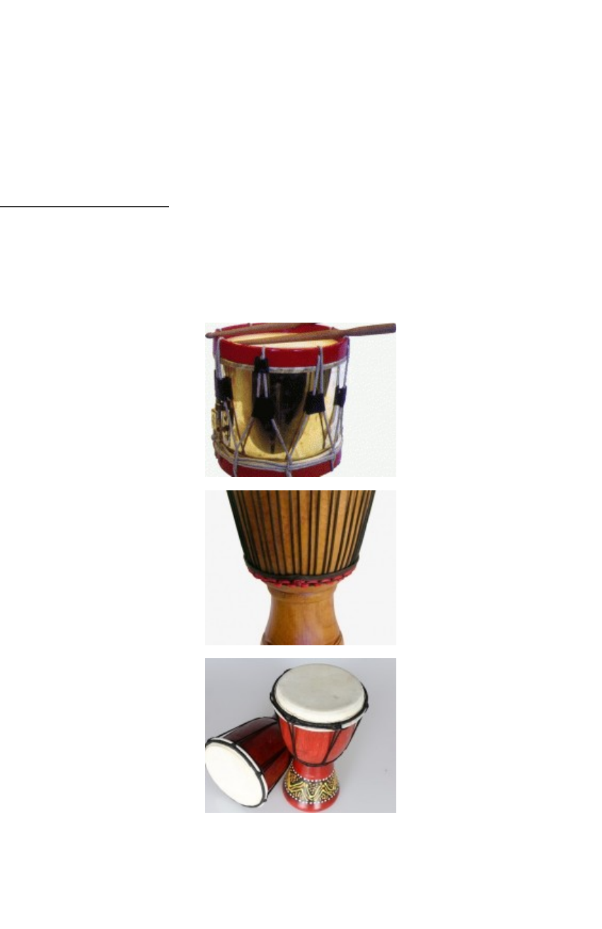 Origem do Tambor Muitos instrumentos do tipo membranofone recebem o nome popular de tambor tendo como sua principal característica ser feito a partir de uma membrana que é esticada para que possa ser então percutida. Há diferentes opções de armações em que essa membrana pode ser utilizada. Os tambores podem ser utilizados em diversos estilos musicais como jazz, rock, axé entre outros. História do Tambor O tambor remonta a eras antiquíssimas da humanidade, alguns historiadores acreditam que os primeiros tambores eram feitos a partir de troncos de árvores ocos tocados com galhos ou com os pés. A descoberta da sonoridade das peles para os tambores se deu assim que o homem começou a utilizar suas caças para a confecção de vestimentas e utensílios. Bastou esticar a pele dos animais para perceber que ao bater nelas se obtinha um som mais agudo e marcado. Por sua força rítmica os tambores ocuparam no decorrer da história um papel relevante em vários rituais e festas típicas de civilizações variadas assim como espaço na comunicação. Na Bíblia há diversas referências a tambores como, por exemplo, no Velho Testamento em que é dito que Miriam, irmã de Moisés, dançou ao som desse instrumento após cruzar o mar vermelho com o povo hebreu. Os tambores ainda são citados nas comemorações das vitórias de Saul e David. Tambores no Brasil Como os tambores não tem uma construção complexa ao longo dos séculos diferentes povos criaram as suas próprias versões, no Brasil, por exemplo, contamos com diversos modelos. Os mais antigos tambores do país são os indígenas que foram encontrados em diferentes localidades. Ainda hoje há modelos de tambores feitos com peles e madeiras em paralelo aos modelos modernos. Durante o século 19 houve o registro de muitos viajantes que vinham ao Brasil quanto ao uso de tambores por escravos em festividades. Desde o período colonial os tambores são utilizados pela banda militar. Algo interessante de destacar é que cada região brasileira desenvolveu a produção de tambores com as matérias-primas disponíveis de maneira que se torna possível até mesmo identificar questões culturais por meio da observação dos formatos, materiais entre outros detalhes desses instrumentos. Novidades de Materiais Os tambores produzidos atualmente podem ser feitos também com peles sintéticas ou ainda com membranas plásticas. Esses materiais oferecem menos variações decorrentes de mudanças de temperatura além de por ter menos tensão o que acarreta em sons de mais qualidade. Modelos de Tambores O ponto central a respeito dos tambores é que todos são membranofones, contudo, existem modelos diferentes com suas peculiaridades. Formatos de Tambores A forma de construção faz com que exista uma grande variedade de formatos de corpo de tambores. Os instrumentos feitos de troncos de árvores ou a partir de ripas de madeira tem formato de cone. Já os tambores que são feitos de metal são completamente cilíndricos. Os modelos de tambor conhecidos como tímpanos normalmente tem corpo esférico. Vale ressaltar que existem outros modelos possíveis para tambores destacando como exemplo o djêmbe que é um tambor em formato de cálice é mais largo numa das suas extremidades. O Som dos Tambores De maneira geral os tambores não possuem um som definido, porém, há alguns instrumentos que podem ser afinados para que atinjam notas predeterminadas. Os modelos de tambores conhecidos como tímpanos possibilitam a afinação precisa e tem pedais que servem para mudar a tensão da pele. Há também tambores que permitem produzir apenas uma nota como os timbales e ton-tons. Dessa forma para conseguir uma variedade de sons que um tímpano ofereceria com os ton-tons seria necessário maior quantidade deles uma vez que só emitem uma nota. Um pouco de história... No Brasil os tambores mais antigos são os indígenas, encontrados em várias regiões do país. Estes instrumentos, construídos de forma artesanal e com materiais naturais como madeira e pele de animais, coexistem atualmente com os instrumentos modernos, de fabricação industrial e constituídos em geral de metal e plástico. Ao longo de todo o período colonial, os tambores foram muito utilizados como instrumento de caráter marcial em ocasiões festivas que remetiam, sobretudo, à família real. Em 1808, segundo os históricos relatos do conhecido Padre Perereca, D. João VI foi recebido no Rio de Janeiro com muitos vivas e repiques de sino, aos “sons dos tambores e dos instrumentos músicos”. Viajantes estrangeiros que estiveram no Rio de Janeiro durante o século XIX registraram o uso de tambores pelos escravos negros em festividades religiosas e nas manifestações da capoeira, como retratadas em duas gravuras de Johann Moritz Rugendas em seu livro Viagem pitoresca através do Brasil: Fête de St. Rosalie, patrone des négres - Rugendas (séc. XIX) Jogar Capoëra ou Danse de la guerre - Rugendas (séc. XIX) Os tambores também integram, desde o período colonial, as bandas militares. Podem ser vistos até os dias de hoje, por exemplo, nos desfiles comemorativos da independência do Brasil, no dia 7 de setembro. Atualmente, vários tipos de tambores fazem parte das potentes baterias das escolas de samba tradicionais do carnaval carioca. Dentre eles estão os chamados surdos, repiques, caixas, tamborins e cuícas. Repique, Caixa, Tamborim, Cuíca
