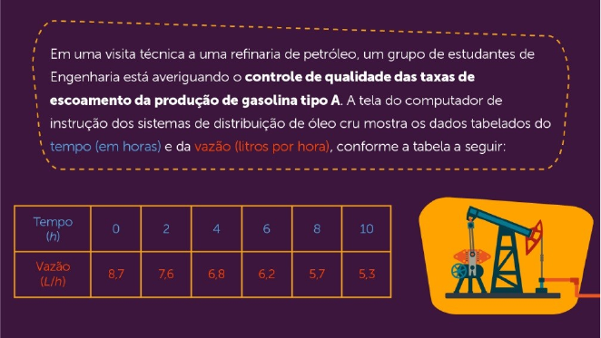 Desafio 2 Na Engenharia Civil, problemas aplicados à vazão de tanques ou reservatórios são comuns na construção de represas, estações de tratamento de águas pluviais e esgoto, como também de drenagem. A vazão se configura como uma taxa em função da capacidade ou volume despejado por unidade de tempo. Assim sendo, considere o seguinte cenário: Sabe-se que: * o óleo escoa do tanque de armazenamento para o tanque de refinamento a uma taxa de r(t) litros por hora; * tal taxa decresce à medida que tempo passa, de acordo com a tabela apresentada; * o cálculo da estimativa é para as duas primeiras horas. Então, resolva as seguintes questões: a) Qual é a estimativa inferior para a quantidade total de vazamento de óleo cru? b) Qual é a estimativa superior para a quantidade total de vazamento de óleo cru? c) Sabendo que a estimativa superior se encontra no intervalo [69,75; 71,25] e a inferior no intervalo [62,75; 63,25], os sistemas de calibragem do controle de vazão acoplados aos tanques estão dentro do padrão de qualidade esperado? Anexo conforme exercício proposto no desafio. Respostas: