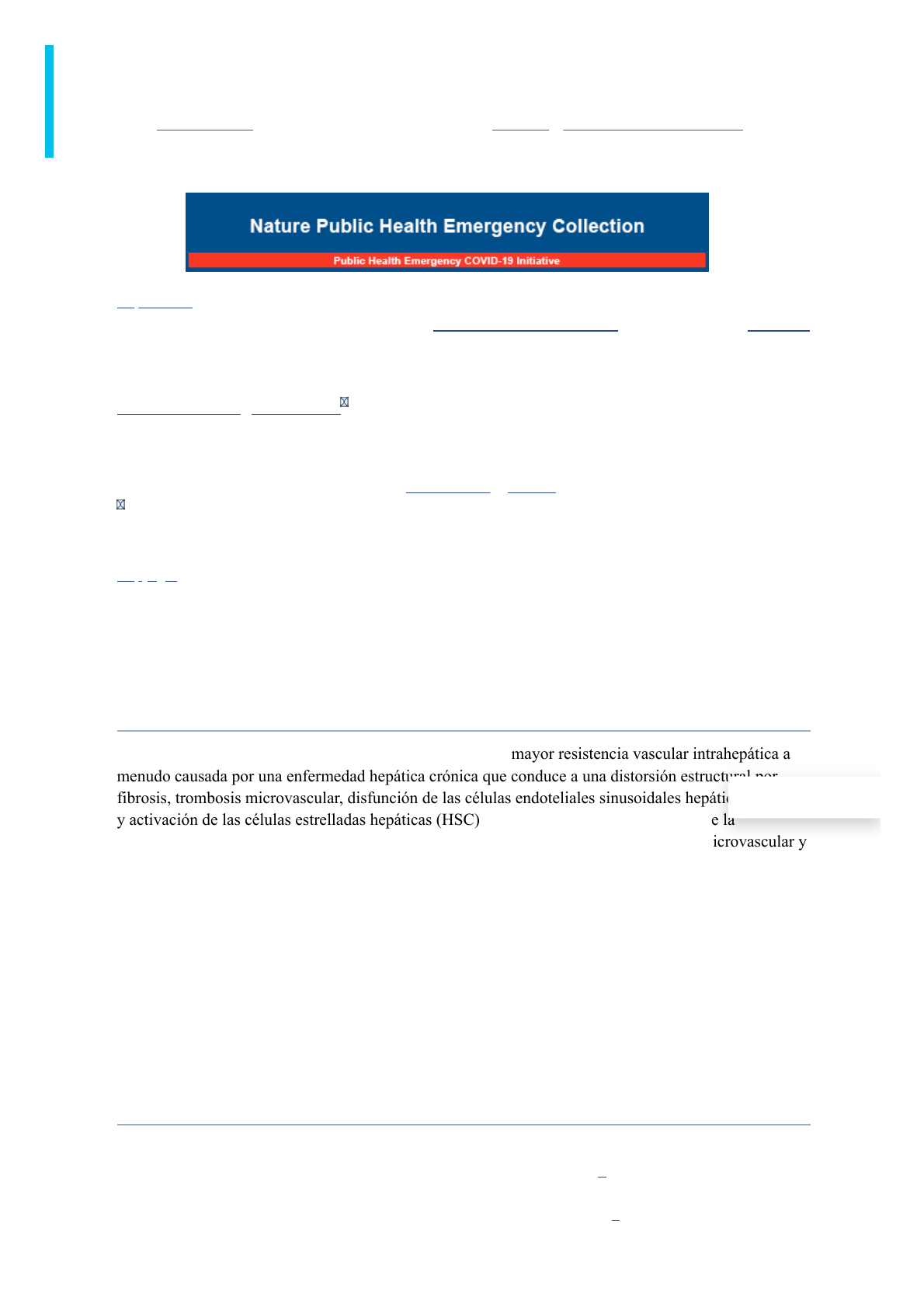 30/6/2021 Biología de la hipertensión portal https://www.ncbi.nlm.nih.gov/pmc/articles/PMC7090883/ 1/22 Hepatol Int. 2018 Feb; 12 (Supl. 1): 11–23. Publicado en línea el 26 de octubre del 2017. doi: 10.1007 / s12072-017-9826-x PMCID: PMC7090883 PMID: 29075990 Biología de la hipertensión portal Matthew McConnelly Yasuko Iwakiri Departamento de Medicina Interna, Sección de Enfermedades Digestivas, Facultad de Medicina de la Universidad de Yale, 1080 LMP, 333 Cedar St., New Haven, CT 06520 EE. UU. Yasuko Iwakiri, Phone: 203-785-6204, Email: yasuko.iwakiri@yale.edu. Corresponding author. Received 2017 Mar 2; Accepted 2017 Sep 26. Copyright © Asian Pacific Association for the Study of the Liver 2017 This article is made available via the PMC Open Access Subset for unrestricted research re-use and secondary analysis in any form or by any means with acknowledgement of the original source. These permissions are granted for the duration of the World Health Organization (WHO) declaration of COVID-19 as a global pandemic. Resumen La hipertensión portal se desarrolla como resultado de una mayor resistencia vascular intrahepática a menudo causada por una enfermedad hepática crónica que conduce a una distorsión estructural por fibrosis, trombosis microvascular, disfunción de las células endoteliales sinusoidales hepáticas (LSEC) y activación de las células estrelladas hepáticas (HSC). Si bien los mecanismos básicos de la desregulación de LSEC y HSC se han estudiado ampliamente, el papel de la trombosis microvascular y la función plaquetaria en la patogenia de la hipertensión portal aún no se ha caracterizado claramente. Como evento secundario, la hipertensión portal produce vasodilatación arterial esplácnica y sistémica, lo que lleva al desarrollo de un síndrome circulatorio hiperdinámico y, posteriormente, a complicaciones clínicamente devastadoras que incluyen varices gastroesofágicas y hemorragia variceal. encefalopatía hepática por la formación de derivaciones portosistémicas, ascitis e insuficiencia renal por síndrome hepatorrenal. Este artículo de revisión analiza: (1) los mecanismos de la hipertensión portal sinusoidal, centrándose en la biología de HSC y LSEC, la angiogénesis patológica y el papel de la trombosis microvascular y las plaquetas, (2) la vasculatura mesentérica en la hipertensión portal, y (3) direcciones futuras para investigación en biología vascular en hipertensión portal. Palabras clave: trombosis, plaquetas, disfunción endotelial, circulación hiperdinámica Introducción Como trastorno de la presión venosa portal, la hipertensión portal puede conceptualizarse utilizando la derivación hidráulica de la Ley de Ohm (presión = flujo × resistencia) [ 1 ], compuesta por variables basadas en la biología vascular básica. Inicialmente, la hipertensión portal se desarrolla como resultado de un aumento de la resistencia vascular intrahepática más comúnmente [ 2 ] causada por enfermedad hepática crónica que conduce a múltiples eventos patológicos en la circulación sinusoidal, como Pruebe PMC Labs y díganos lo que piensa. Obtenga más información . Ver PDF https://dx.doi.org/10.1007%2Fs12072-017-9826-x https://www.ncbi.nlm.nih.gov/pubmed/29075990 https://www.ncbi.nlm.nih.gov/pubmed/?term=McConnell%20M%5BAuthor%5D&cauthor=true&cauthor_uid=29075990 https://www.ncbi.nlm.nih.gov/pubmed/?term=Iwakiri%20Y%5BAuthor%5D&cauthor=true&cauthor_uid=29075990 mailto:dev@null https://www.ncbi.nlm.nih.gov/pmc/about/copyright/ https://www.ncbi.nlm.nih.gov/labs/pmc/ https://ncbiinsights.ncbi.nlm.nih.gov/2021/06/02/pmc-labs/ chrome-extension://dagcmkpagjlhakfdhnbomgmjdpkdklff/enhanced-reader.html?openApp&pdf=https%3A%2F%2Flink.springer.com%2Fcontent%2Fpdf%2F10.1007%2Fs12072-017-9826-x.pdf ED Resaltado 30/6/2021 Biología de la hipertensión portal https://www.ncbi.nlm.nih.gov/pmc/articles/PMC7090883/ 2/22 Fibrosis y distorsión arquitectónica. Células estrelladas hepáticas como pericitos Señalización de endotelina Regulación de la contracción de HSC distorsión estructural por fibrosis, trombosis microvascular, disfunción de las células endoteliales sinusoidales del hígado ( LSECs), y hepática de las células estrelladas (HSC) de activación [ 3 - 5]. Si bien los mecanismos básicos de la desregulación de LSEC y HSC se han explorado ampliamente, la aclaración del papel de la trombosis microvascular y la función plaquetaria en la patogenia de la hipertensión portal se queda atrás. Como evento secundario, la hipertensión portal conduce a una vasodilatación arterial esplácnica y sistémica, lo que contribuye a un aumento del flujo sanguíneo esplácnico al hígado y a un aumento de la presión portal a pesar de la formación colateral [ 3 - 7 ]. Una vasodilatación excesiva de las arterias mesentéricas facilita esta circulación hiperdinámica, y junto con el aumento del flujo sanguíneo a las colaterales portosistémicas da como resultado complicaciones clínicamente devastadoras que incluyen varices gastroesofágicas y hemorragia por varices, encefalopatía hepática por la formación de derivaciones portosistémicas, ascitis e insuficiencia renal debido a la síndrome hepatorrenal [ 8 - 10 ]. En este artículo de revisión, discutimos los siguientes temas: (1) mecanismos de la hipertensión portal sinusoidal, centrándonos en la biología de HSC y LSEC, angiogénesis patológica y el papel de la trombosis microvascular y las plaquetas, (2) la vasculatura mesentérica en la hipertensión portal, y (3) direcciones futuras para la investigación de la biología vascular en la hipertensión portal. Mecanismos de la hipertensión portal sinusoidal Los sinusoides hepáticos son pequeños vasos sanguíneos que forman parte de la microcirculación hepática. El bloqueo de los sinusoides y el aumento resultante de la resistencia vascular hepática al flujo venoso portal es la causa principal de hipertensión portal. Los sinusoid