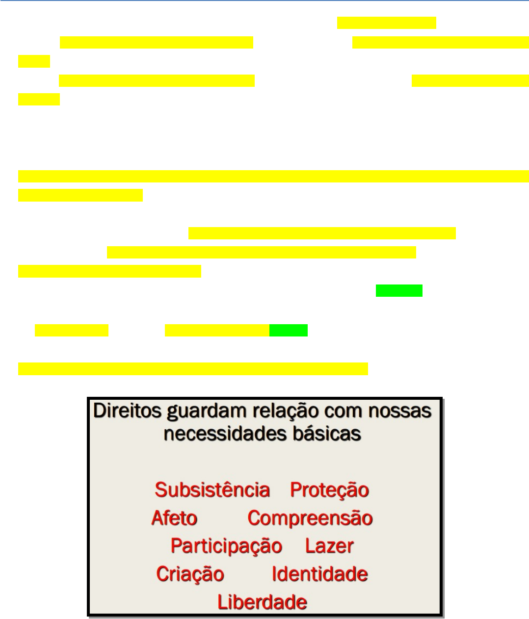 FUNDAMENTOS TEÓRICO-POLÍTICOS DOS DIREITOS HUMANOS E SUA RELAÇÃO COM A PRÁTICA MÉDICA · Na sua origem, a palavra direito significa exatamente aquilo que é reto, correto ou justo. · Direitos não são apenas demandas por justiça são também o reconhecimento de que algo nos é devido. · Direitos não são favores, súplicas ou gentilezas se existe um direito há um débito e uma obrigação correlata. · A cada direito corresponde um dever. · Ter um direito é ser beneficiário de um dever correlativo por parte de outras pessoas ou do próprio Estado. · Dizer que existe um dever correspondente a um direito não significa que os direitos possuam, necessariamente, eficácia, isto é, que eles sempre consigam produzir efeitos concretos na realidade. · Para que os direitos não sejam apenas frases escritas em um pedaço de papel, mas se convertam em obrigações plenamente realizadas, faz-se necessária a existência de instrumentos jurídicos. · Direitos guardam relação com a forma como pensamos o que é o ser humano e como deve ser sua relação com os outros seres humanos. · Seres humanos são detentores de determinados direitos em razão de sua dignidade. · Podemos avaliar as coisas pelo preço ou pela dignidade. · Os seres humanos devem ser sempre tratados com respeito. · Cada vez que usamos alguém como coisa, isto é, como instrumento para a obtenção de algo, estamos a violar a sua dignidade e, consequentemente, a desrespeitar seus direitos.