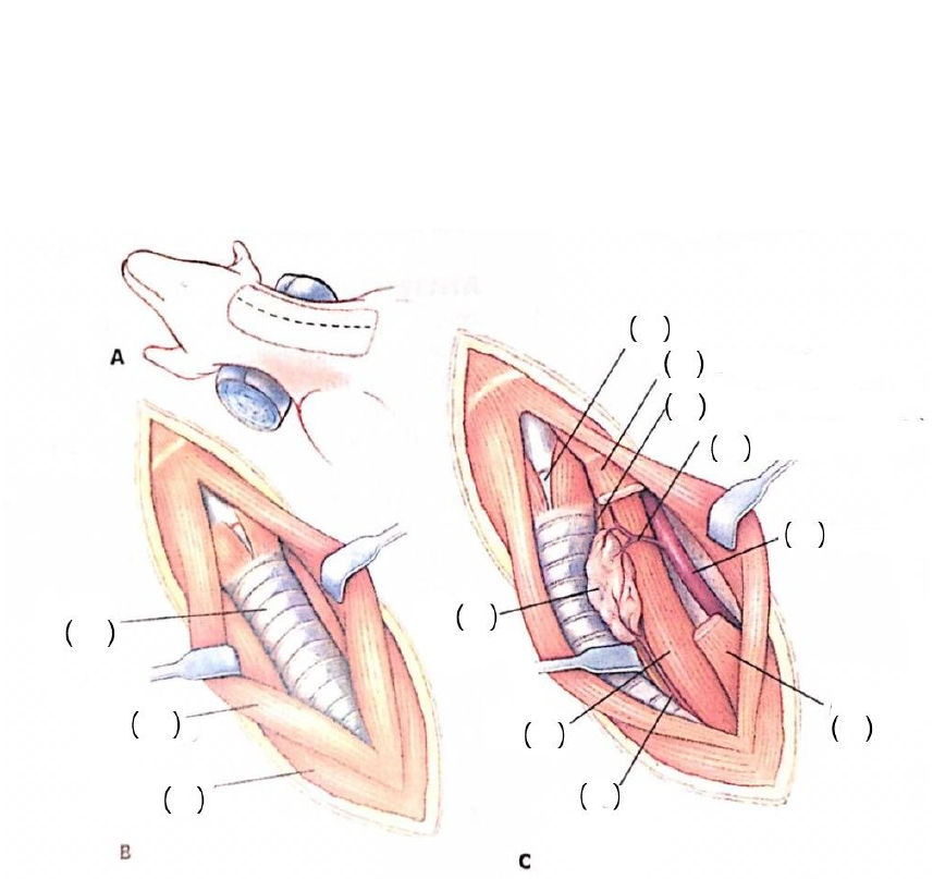 TRABALHOS ANATOMIA APLICADA ALTERNÂNCIA 1- ESOFAGOTOMIA é a abertura cirúrgica do esôfago com o intuito de proporcionar acesso à luz do órgão com a finalidade terapêutica ou exploratória, podendo esta abordagem ser feita nas porções cervical, torácica ou abdominal. No acesso cervical do esôfago, é feito incisão cutânea e subcutânea desde a região da laringe até o manúbrio. I- Laringe II- Traqueia III- Esôfago IV- Músculo esternohioideo V- Glândula tireoide VI- Artéria tireóidea caudal VII- Músculo esternocefálico VIII- Músculo esternotireoideo IX- Artéria carótida externa X- Nervo laríngeo recorrente XI- Artéria tireóidea cranial 2- FRATURA DE ÚMERO – Abordagem a região diafisária do úmero - Para expor a porção média da diáfise do úmero é necessário fazer uma incisão cutânea a partir da margem cranial do tubérculo lateral do úmero até o epicôndilo lateral em sentido caudal, onde é observado as estruturas anatômicas apontadas na imagem a baixo. (I) M. BRAQUIAL (II) M.BRAQUIOCEFÁLICO (III) CABEÇA LATERAL DO M. TRÍCEPS BRAQUIAL (IV) VEIA CEFÁLICA (V) NERVO RADIAL 3- URETROTOMIA PERINEAL.A uretrotomia perineal ocasionalmente é usada para remover cálculos alojados no arco isquiático e colocar cateteres dentro da bexiga de grandes cães machos. 4- FRATURAS DO COLO DO FÊMUR ocorrem na base do colo onde ele se une à metáfise do fêmur proximal.