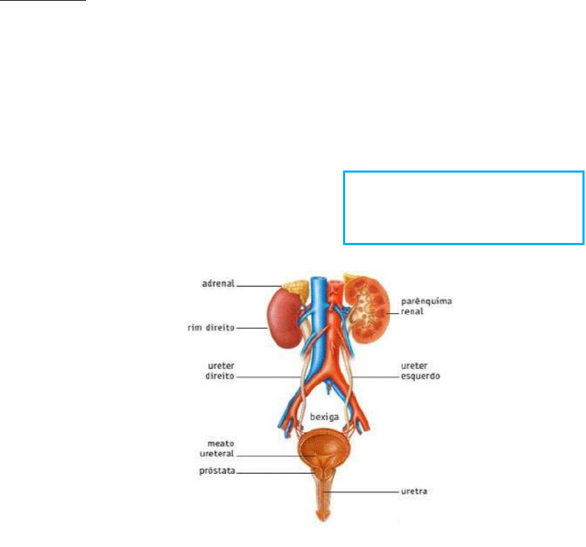 Aula 7- Semiologia Sistema Urinário O Sistema Urinário ou Aparelho Urinário é responsável pela produção e eliminação da urina, possui a função de filtrar as "impurezas" do sangue que circula no organismo. O Sistema Urinário é composto por:O trato urinário inferior é composto por vesícula urinária, uretra e musculatura. 1. Rins 2. Ureteres 3. Vesícula urinária 4. Uretra 1. Rins O rim é o órgão que está localizado sob os músculos sublombares e circundado por gordura e a superfície ventral coberta por peritônio, um de cada lado da coluna vertebral. Cada rim apresenta um polo cranial e um caudal, um bordo medial e um lateral, uma superfície dorsal e uma ventral. · No bordo medial está localizado o hilo renal (hilus renalis), através do qual passam ureter, veias e artérias renais, vasos linfáticos e nervos. · O polo cranial de cada rim é coberto com peritônio em ambas as superfícies, dorsal e ventral. · O polo caudal é coberto somente na superfície ventral. O rim é revestido por uma cápsula fibrosa, cuja rigidez restringe a habilidade de expansão do parênquima renal. O parênquima renal, localizado entre a cápsula e o seio renal, é constituído pela medula renal e pelo córtex renal. No parênquima renal estão os néfrons, que são as unidades estruturais específicas dos rins. O néfron consiste em um longo túbulo que se inicia no corpúsculo renal e termina em conexão com o ducto coletor. O corpúsculo renal, é constituído pela cápsula glomerular, que envolve completamente uma rede capilar esférica, denominada glomérulo. As diferenças de tamanho dos rins, nas várias espécies animais, estão relacionadas com o número de glomérulos presentes nesses órgãos. Equinos: o rim direito tem formato de triângulo equilátero com os bordos arredondados. Mede de 13 a 15 cm de comprimento e está localizado no espaço compreendido entre a 15a costela e a 1a vértebra lombar, não sendo acessível à palpação retal. O rim esquerdo tem formato de feijão, mede de 15 a 20 cm de comprimento e, em geral, seu polo caudal encontra-se em relação com a 3 a vértebra lombar. Normalmente é mais caudal que o rim direito, mas, por ter mais mobilidade, o rim esquerdo pode variar quanto à sua localização. Bovinos, Ovinos e Caprinos: o rim direito está relacionado dorsalmente com a última costela e as três primeiras vértebras lombares, podendo, em alguns casos, ter localização mais caudal. O rim esquerdo tem posição muito variável; quando o rúmen está parcialmente cheio, o que ocorre em período de jejum, o rim repousa à esquerda. Após a ingestão de alimentos, quando o rúmen está distendido, o rim esquerdo é pressionado para o plano médio e repousa abaixo e caudalmente ao rim direito, no espaço compreendido pelas 3a, 4a e 5a vértebras lombares. · Bovinos – rins são lobulados; o comprimento do rim direito varia de 18 a 24 cm e o do esquerdo entre 19 e 24 cm. · Ovinos e Caprinos – têm os rins muito semelhantes aos de cães (formato de feijão), com comprimento variando entre 5,5 e 7 cm Cães e Gatos: os rins têm o formato típico de feijão. O comprimento pode ser estimado por meio de radiografia lateral e varia entre 2,5 e 3,2 vezes o comprimento da 2a vértebra lombar no cão e entre 2,5 e 3,0 vezes no gato. Adotando o mesmo critério de medida, a largura varia de 1,4 a 1,8 para os cães e 1,6 a 1,9 para os gatos. Cão – o rim direito está localizado no espaço correspondente ao intervalo entre a 13a vértebra torácica e a 1a vértebra lombar, enquanto o rim esquerdo, cuja posição pode variar mais, está localizado no espaço correspondente ao intervalo entre as 2a e 4a vértebras lombares. Gatos – a fixação dos rins à parede dorsal é mais frouxa nos gatos do que nas demais espécies. Assim, os rins dos gatos são bem móveis, portanto, fáceis de palpar. O rim esquerdo dos gatos ocupa posição ligeiramente pendular, o que facilita ainda mais a palpação. Pela localização particular no gato, esse órgão é, algumas vezes, mal interpretado como massa abdominal anormal. O rim direito ocupa o espaço compreendido entre as 1a e 4a vértebras lombares, e o rim esquerdo se estende da 2a até a 5a vértebra lombar. Os rins produzem a urina que, por meio dos ureteres, chega à bexiga, onde é temporariamente armazenada. Durante o esvaziamento vesical, a urina passa pela uretra, chegando ao meio externo. Para a produção de urina, os rins filtram o plasma, extraindo grande quantidade de um líquido chamado ultrafiltrado, que é, então, processado para reabsorção de substâncias úteis e concentração dos rejeitos a serem eliminados. A maior parte da água do ultrafiltrado é reabsorvida, de modo a manter o volume plasmático em parâmetros normais. Assim, os rins movimentam um volume muito grande de líquidos a cada 24 h. 2. Ureteres transportam urina dos rins para a bexiga. Eles são estruturas tubulares, localizados na pelve renal. Cada ureter se projeta no sentido caudomedial, em direção à bexiga, quando deixa a posição sublombar e ganha acesso à superfície dorsolateral da bexiga, fixado pela prega peritoneal que forma o ligamento lateral da bexiga, um à direita e outro à esquerda. Os ureteres penetram a camada serosa da parede dorsal da bexiga, adentram a camada muscular, onde percorrem um trajeto e, finalmente, abrem- se para o lúmen vesical. A inserção da extremidade distal do ureter entre as fibras musculares previne refluxo de urina da bexiga para os ureteres, quando a pressão intravesical aumenta. A parede do ureter, assim como a da pelve renal, é composta por três camadas: a) adventícia externa b) muscular média c) mucosa interna. A musculatura ureteral apresenta movimentos peristálticos que ajudam a levar urina para a bexiga e, quando provocada por irritações tais como as determinadas por urólitos, pode entrar em espasmo localizado. Por se tratar de estrutura de acesso difícil, o