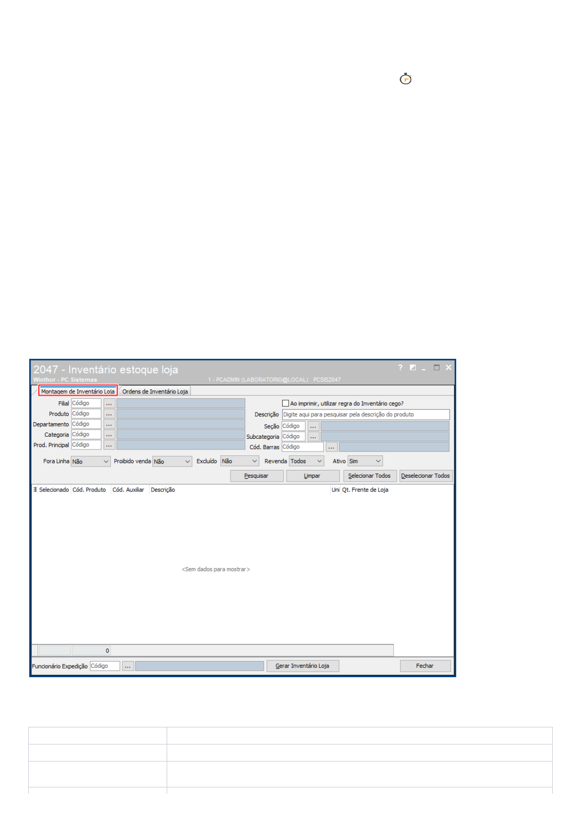 23/10/2020 2047 - Inventário Estoque Loja - DR - PC Sistemas - TDN https://tdn.engpro.totvs.com.br/pages/releaseview.action?pageId=464977106 1/3 Páginas / … / Varejo - DR Tempo aproximado para leitura: 3 minutos 2047 - Inventário Estoque Loja - DR Criado por Ingrid Rezende De Camargo, última alteração em 08 ago, 2019 ÍNDICE 1. Visão Geral 2. Exemplo de utilização 3. Tela Montagem de Inventário Loja a. Principais Campos e Parâmetros 4. Tela Ordens de Inventário Loja a. Principais Campos e Parâmetros 01. VISÃO GERAL Esta rotina tem como objetivo montar o inventário de loja e realizar baixa, cancelamento e impressão de ordens de inventário já cadastradas. 02. EXEMPLO DE UTILIZAÇÃO Para gerar o inventário de loja é preciso preencher os filtros de pesquisa de produtos contidos na aba Montagem de Inventário Loja, após realizar a pesquisa dos produtos desejados selecione a opção Gerar Inventário Loja para que seja gerado o mesmo. Uma vez que o inventário tenha sido gerado no sistema, será possível realizar a baixa, cancelamento ou impressão deste utilizando a aba Ordens de Inventário Loja, é necessário para isso informar o período desejado no campo de pesquisa para que seja apresentada a ordem e em seguida será possível prosseguir com as ações desejadas. 03. TELA MONTAGEM DE INVENTÁRIO LOJA Principais Campos e Parâmetros Campo Descrição Filial Permite informar a filial desejada para realizar a ordem de inventário. Ao Imprimir, Utilizar Regra do Inventário Cego? Flag que permite ser marcada conforme necessidade para que ao imprimir a ordem de inventário seja utilizada a regra de inventário cego. https://tdn.engpro.totvs.com.br/collector/pages.action?key=PCS https://tdn.engpro.totvs.com.br/display/PCS/Varejo+-+DR https://tdn.engpro.totvs.com.br/pages/viewpage.action?pageId=464977106 https://tdn.engpro.totvs.com.br/display/~ingrid.camargo https://tdn.engpro.totvs.com.br/pages/diffpagesbyversion.action?pageId=464977106&selectedPageVersions=4&selectedPageVersions=5 23/10/2020 2047 - Inventário Estoque Loja - DR - PC Sistemas - TDN https://tdn.engpro.totvs.com.br/pages/releaseview.action?pageId=464977106 2/3 Produto Permite informar o produto desejado para realizar a ordem de inventário. Descrição Permite informar a descrição do produto desejado para realizar a ordem de inventário. Departamento Permite informar o departamento em que o produto desejado está alocado para que seja realizada a ordem de inventário. Seção Permite informa a seção em que o produto desejado está alocado para que seja realizada a ordem de inventário. Categoria Permite informar a categoria em que o produto desejado está alocado para que seja realizada a ordem de inventário. Subcategoria Permite informar a sub categoria em que o produto está alocado para que seja realizada a ordem de inventário. Prod. Principal Permite informar o produto principal desejado para que seja realizada a ordem de inventário. Cód. Barras Permite informar o código de barras do produto desejado para que seja realizada a ordem de inventário. Fora Linha Permite pesquisar entre produtos dentro de linha, fora de linha ou todos. Proibido Venda Permite pesquisar entre produtos com venda proibida, liberados para venda ou todos. Excluído Permite pesquisar entre produtos excluídos, ainda no cadastro ou todos. Revenda Permite pesquisar entre produtos de revenda, sem revenda ou todos. Ativo Permite pesquisar entre produtos ativos, inativos ou todos. Funcionário Expedição Permite informar o funcionário da expedição responsável conforme necessidade. Gerar Inventário Loja Gera a ordem de inventário com base nas informações previamente informadas. 04. TELA ORDENS DE INVENTÁRIO LOJA Principais Campos e Parâmetros Campo Descrição Período Permite informar o período da ordem de inventário a ser pesquisada. Trazer Somente Ordens de Inventário em Aberto? Flag que permite ser marcada conforme necessidade para que ao pesquisar, sejam trazidos somente resultados com ordens de inventário em aberto. Observação do Item Permite incluir uma observação na ordem de inventário de acordo com a necessidade. 23/10/2020 2047 - Inventário Estoque Loja - DR - PC Sistemas - TDN https://tdn.engpro.totvs.com.br/pages/releaseview.action?pageId=464977106 3/3 Baixar ordem Permite baixar a ordem de inventário conforme necessidade. Cancelar Ordem Permite realizar o cancelamento da ordem de inventário pesquisada. Salvar Baixa Permite salvar a baixa da ordem de inventário pesquisada. Cancelar Baixa Permite cancelar a baixa da ordem de inventário retornando-a para seu estado inicial. Imprimir Ordem Permite imprimir a ordem de inventário em relatório padrão e também customizado, podendo alterar o layout conforme necessidade. documento_de_referencia supermercado autosservico bra 2047 Política de privacidade Termos de uso https://tdn.engpro.totvs.com.br/label/PCS/documento_de_referencia https://tdn.engpro.totvs.com.br/label/PCS/supermercado https://tdn.engpro.totvs.com.br/label/PCS/autosservico https://tdn.engpro.totvs.com.br/label/PCS/bra https://tdn.engpro.totvs.com.br/label/PCS/2047 https://www.totvs.com/politica-de-privacidade https://www.totvs.com/termos-de-uso