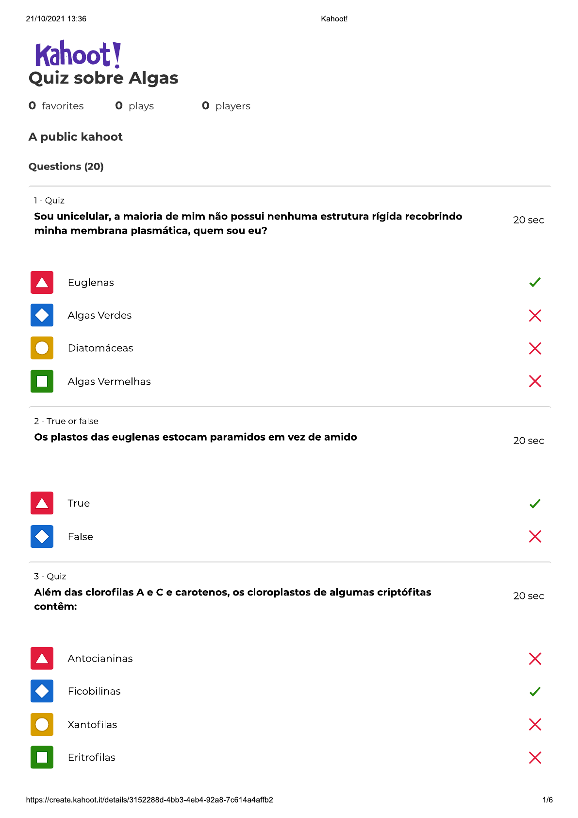 Quiz sobre algas