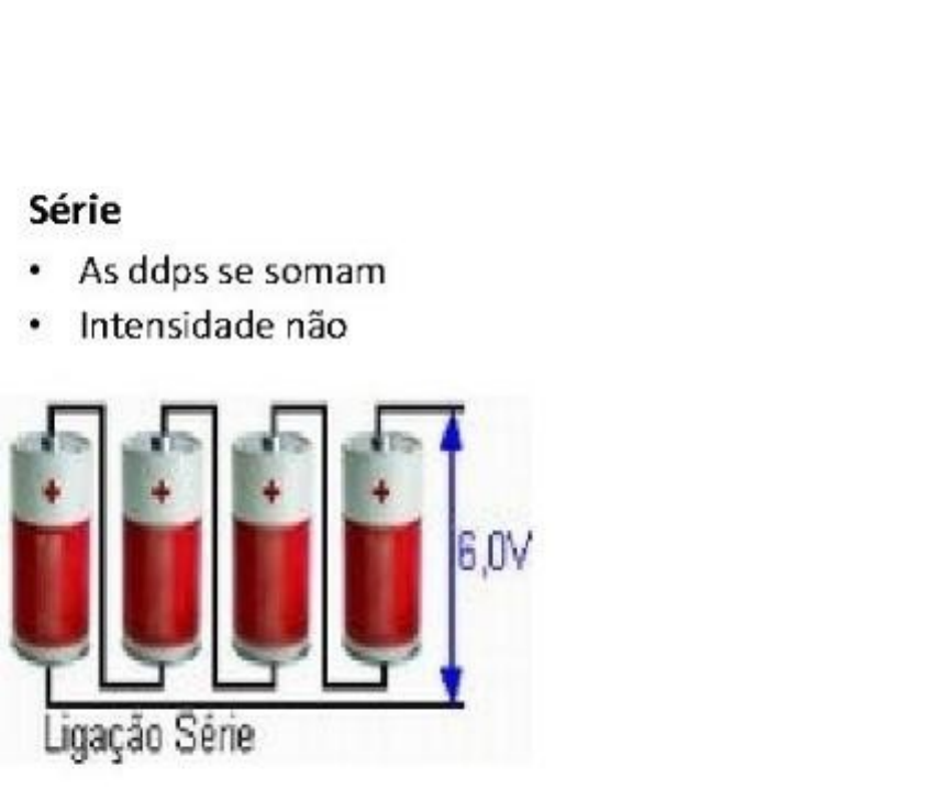 Circuito em serie O circuito em série tem como característica a ligação em sequência, sem divisão do mesmo circuito. Temos como exemplo a associação em série de fontes de energia: pilhas e baterias. Em alguns circuitos temos exemplo a bateria de 9v e outro com 6 pilhas de 1,5V cada, e esse tem em comum e que a alimentação e a mesma quando se coloca as pilhas com os polos positivos nos negativos isso causa efeito de soma, mas caso não seguir a sequência vindo inverter um dos polos o circuito ira subtrair o valor da quantidade de pilhas fora da sequência. Como característica desse circuito as cargas não vão receber a mesma tensão fornecida pela fonte, ou seja, se uma fonte fornece 20v e temos no circuito 4 lâmpadas idênticas cada uma ficara com 5v, porém caso a resistência das lâmpadas sejam diferentes esse valor pode mudar e a intensidade de luz vai ter variação pois afeta diretamente na potência da carga. Circuito paralelo O circuito paralelo e o inverso do circuito em série, o paralelo modifica a corrente porem a tensão se mantem. Como exemplo usaremos pilhas porem agora conectados de modo paralelo positivo com positivo e negativo com negativo, com as mesmas 6 pilhas de 1,5V, porem cada pilha possui 1A (ampere é a unidade que mede a intensidade da grandeza física corrente elétrica), então teremos 6A na aplicação do circuito. Porém não e recomendado ser usado este tipo de circuito com pilhas devido uma descarregar e sobrecarregar a outra pilha para que se mantenha a tensão e corrente assim acabando com a equalização do circuito. [ Circuito Série-Paralelo Esse circuito é nada mais que o misto do circuito série com o circuito paralelo, carregando junto suas características.