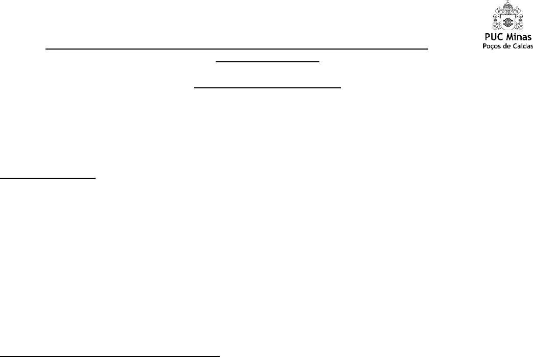 Pontifícia Universidade Católica de Minas Gerais – Campus de Poços de Caldas Curso de Fisioterapia Anatomia Humana Segmentar Trabalho Clínico 1 Data: 17 e 20/03/20 Nomes: LEONARDO GIANINI RABELO CASO CLÍNICO 1: JR, 19 anos, dirigia sua motocicleta na Avenida Beira-Mar em alta velocidade quando uma gaivota literalmente o atropelou, levando-o a uma queda muito violenta. JR teve sua perna esquerda esmagada, fraturando ambos os ossos da perna. Fraturou ainda a porção distal do osso externo do antebraço e os ossos do punho. O mesmo foi levado ao hospital pelos paramédicos, após ser devidamente imobilizado no local, e lá foi submetido a exames de RX que determinaram a real presença das fraturas acima mencionadas. Ele deverá ficar imobilizado com gesso nos segmentos apendiculares acometidos por um bom tempo! Responda: Quais foram, com terminologia anatômica correta, os ossos fraturados por JR? JR fraturou respectivamente, tíbia e fíbula, região distal do rádio, ossos do carpo. CASO 2: APLICABILIDADE FUNCIONAL: Após sair sua nota de Anatomia e você vir que “fechou a prova” (tirou nota máxima), você caiu sobre um joelho (1), inclinou sua cabeça para trás (2), ergueu um braço acima de sua cabeça (3), cerrou a mão (4), esticou seu antebraço para cima (5) e para baixo (6) e gritou bem alto: “YES!” Atividade: Use os termos apropriados para descrever os movimentos realizados pelas várias articulações envolvidas (você pode usar a numeração apresentada a cada movimento para dar a ele o nome correto). (1) Flexão de joelho e flexão plantar; (2) Extensão de pescoço; (3) Flexão de ombro; (4) Flexão das articulações Inter falangianas do 1° ao 5° dedo, e movimento de oposição do polegar; (5) Extensão de cotovelo; (6) Flexão de cotovelo. No caso dos movimentos (3) e (5), realizados respectivamente pela articulação do ombro e do cotovelo, cite qual o tipo de articulação envolvida (classificação) e quais os movimentos permitidos a elas. Ombro: Articulação tipo: Esferoide. Movimentos permitidos: Flexão e extensão, adução e abdução, circundução, rotação interna e rotação externa. Cotovelo: Articulação tipo: Gínglimo. Movimentos permitidos: Flexão e extensão. CASO 3: Após sofrer uma fratura sem deslocamento ósseo no fêmur esquerdo, J.L.M. ficou seis longas semanas imobilizada com gesso. Após esse período, ao retirar a imobilização, pensou que voltaria imediatamente ao ritmo normal de treinamento no time de voleibol ao qual pertence. Porém, sua coxa esquerda estava com a metade do tamanho da coxa direita (indicando uma atrofia significativa do músculo quadríceps), verificada através da circumetria da coxa (tomada de medida do diâmetro do segmento através do uso de uma fita métrica), e a amplitude de movimento (ADM) do joelho esquerdo estava limitada (mensurada através de um procedimento que usamos na fisioterapia e que se chama goniometria – medida do ângulo de deslocamento articular). Com base nessa descrição clínica, responda: 1) Porque houve perda de massa muscular durante o período de permanência com o gesso? Existe a lei do uso e desuso, sendo ela bem clara, ou seja, o fato de um tempo de inatividade muito grande é comum a perda de massa muscular, justificando a atrofia. 2) Quantos tendões de origem e de inserção distal o quadríceps possui? 4 tendões de origem e 1 de inserção. 3) Como o quadríceps deverá ser fortalecido na atleta a fim de que retome sua massa muscular normal? a) fazendo exercício com resistência (peso) para extensão de joelho na fisioterapia, visto que essa é sua função principal b) fazendo alongamento do quadríceps c) somente retomando suas atividades esportivas é que ela conseguirá devolver o músculo a sua função normal, não sendo necessária fisioterapia d) uma vez atrofiado, não há como recuperar totalmente a função, e ela deverá abandonar sua atividade esportiva. CASO 4: HMA: J.R., 20 anos, dirigia sua motocicleta em alta velocidade pela Av. João Pinheiro quando sofreu uma colisão ao desviar de um cão que se soltara de seu dono e atravessara a rua em desabalada carreira. J.R. foi socorrido pelo SAMU local e encaminhado ao hospital municipal, onde através de exames de raio-x foram evidenciadas múltiplas fraturas no membro superior direito. Descrição geral dos achados radiológicos: No desastre, J.R. teve seu braço direito fraturado exatamente na altura da proeminência onde se insere o músculo que dá forma ao ombro (deltóide), além de ter esmagado extremidade pontiaguda distal do osso lateral do antebraço, e os dois ossos mais laterais do punho. Houve ainda fratura não desviada (“trinca”) da maior proeminência óssea na região superior do ombro e da estrutura óssea que forma a “ponta” do cotovelo quando fletido. Não houve comprometimento em nenhum osso da mão e graças ao uso apropriado do capacete não houve fraturas cranianas. Nenhum outro segmento do esqueleto foi acometido. Com base na descrição acima sofre as múltiplas fraturas sofridas por J.R., associe as colunas (nome usado na descrição do caso com o nome correto). OBS: há estruturas listadas na coluna da direita que não se relacionam com o caso e devem ser deixadas em branco. (1) osso do braço fraturado ( ) fêmur (2) proeminência de inserção do deltóide ( ) processo estilóide da ulna (3) extremidade pontiaguda distal do osso lateral do antebraço (4) escafóide e trapézio (4) dois ossos mais laterais do punho (1) úmero (5) proeminência óssea na região superior do ombro ( ) processo coracóide (6) estrutura óssea que forma a “ponta” do cotovelo quando fletido. ( ) capitato e hamato (3) processo estilóide do rádio (6) olécrano (2) tuberosidade deltóidea ( ) tubérculo menor do úmero (5) acrômio