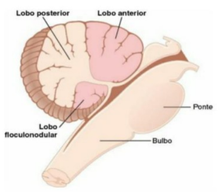 Cadu – 3°β / TIII · Também são essenciais para a função motora normal, mas não fazem de modo independente, sempre em associação com outros sistemas de controle motor.CEREBELO E GÂNGLIOS DA BASE CEREBELO E SUAS FUNÇÕES MOTORAS · Desempenha papéis no ritmo das atividades motoras e na progressão homogênea rápida de um movimento muscular. · Ajuda a controlar a intensidade da contração muscular. · Controla a necessária inter-relação instantânea entre grupos musculares agonistas e antagonistas. · Atua no equilíbrio, nos movimentos de previsão e no amortecimento. · Sua excitação elétrica não causa sensação consciente e raramente proporciona movimento motor. · É essencial durante as atividades musculares rápidas. · Auxilia na sequência das atividades motoras, monitora e faz ajustes corretivos nas atividades motoras corporais enquanto estão sendo executadas. · Recebe das áreas de controle motor cerebrais informações continuamente atualizadas sobre a sequência das contrações musculares desejadas, além de informações sensoriais das partes periféricas do corpo capazes de informar sobre mudanças sequenciais da situação de cada parte do corpo. · Compara os movimentos reais retratados pelas informações sensoriais com os movimentos originalmente programados pelo sistema motor. Caso exista diferença entre eles, há a distribuição dos sinais corretivos subconscientes. · Auxilia o córtex cerebral no planejamento do próximo movimento sequencial. · Caso um movimento não saia como o desejado, seu circuito aprende a fazer o movimento para um próximo momento para que as contrações subsequentes tenham melhor correspondência com os movimentos pretendidos. CIRCUITO NEURAL · Cada uma de suas dobras recebe o nome de folha. · Profundamente, sob o córtex cerebelar, estão os núcleos cerebelares profundos. - VIAS AFERENTES · A corticoespinocerebelar se origina no córtex pré-motor, no córtex motor e no córtex somatossensorial cerebral. Ela passa pelos núcleos pontinos e pelos tratos pontocerebelares. · O cerebelo recebe sinais sensoriais das partes periféricas do corpo pelos tratos: - Espinocerebelar dorsal: chega pelo pedúnculo cerebelar inferior e termina no verme. Os sinais que transmite originam-se dos fusos musculares e de alguns receptores somáticos que informam sobre a contração muscular, o grau de tensão sobre os tendões musculares, a posição e a velocidade dos movimentos e sobre as forças que agem sobre a superfície do corpo - Espinocerebelar ventral: entra pelo pedúnculo cerebelar superior e termina em ambos os lados do cerebelo. Recebem menos informações dos receptores periféricos, sendo mais excitados por sinais motores que chegam aos cornos anteriores da medula vindos do encéfalo e dos geradores de padrão motor intenso na própria medula. - VIAS EFERENTES · Profundamente na massa cerebelar. · A cada lado estão 3 núcleos cerebelares profundos, denteado, interpósito e fastígio, que recebem sinais do córtex cerebelar e dos tratos sensoriais profundos aferentes para o cerebelo. · Cada vez que o sinal chega ao cerebelo ele se divide, indo para os núcleos cerebelares ou para a área do córtex cerebelar. UNIDADE FUNCIONAL DO CÓRTEX · Centralizada na célula única de Purkinje e na célula nuclear profunda. - CIRCUITO NEURAL · A saída da unidade funcional se dá pelas células nucleares profundas. Influências excitatórias: se originam de conexões diretas com fibras aferentes que entram no cerebelo vindas do SNC ou da periferia. Influências inibitórias: se originam das células de Purkinje, no córtex cerebelar. · As aferências para o cerebelo são pelas fibras trepadoras e pelas fibras musgosas. · As células nucleares profundas são excitadas pelas fibras musgosas e trepadoras e inibidas pelos sinais que chegam das células de Purkinje. · Durante a execução de um movimento motor rápido, o sinal iniciador do córtex motor cerebral ou do TE de início aumenta muito a excitação das células nucleares profundas. Depois chegam sinais inibitórios em modo de feedback negativo vindos do circuito das células de Purkinje. Assim, quando o sistema motor está excitado ocorre sinal de feedback negativo após um curto retardo para impedir que o movimento muscular ultrapasse a dimensão programada, caso contrário haveria oscilação do movimento. SINAIS EFERENTES DO TIPO LIGA / DESLIGA DO CEREBELO · A função típica do cerebelo é ajudar a emitir sinais rápidos de ligar para os mm. agonistas e de desligar para os mm. recíprocos. Esse processo inicia com sinais do córtex cerebral que passam por vias não cerebelares do tronco encefálico e da medula, indo diretamente para o m. agonista e dando início à contração. Paralelamente, sinais são enviados por meio das fibras musgosas da ponte para o cerebelo, sendo que um ramo vai para as células nucleares profundas, que enviam sinais excitatórios de volta ao sistema motor corticoespinal cerebral para sustentar o sinal de contração muscular que já havia sido começado pelo córtex. Tal sinal fica mais forte, pois passa a ser uma soma de sinais corticais e cerebelares. Quando o movimento precisa ser inibido, as células de Purkinje realizam esse trabalho. Essa via é formada por algumas das menores fibras de condução mais lenta do SN. Seus sinais são fracos e exigem um período finito para acumular excitação eficiente para estimular. Uma vez estimulada, ela vai enviar forte sinal inibitório para a mesma camada nuclear profunda que originalmente havia ajudado a iniciar o movimento. Assim, esse sinal ajuda a desligar o movimento. AS CÉLULAS DE PURKINJE APRENDEM A CORRIGIR ERROS MOTORES · O grau em que o cerebelo sustenta o início e o término das contrações musculares tem que ser aprendido por ele. · Quando a pessoa realiza pela primeira vez um novo ato motor, a temporização das contrações é sempre incorreta para que ocorra o de
