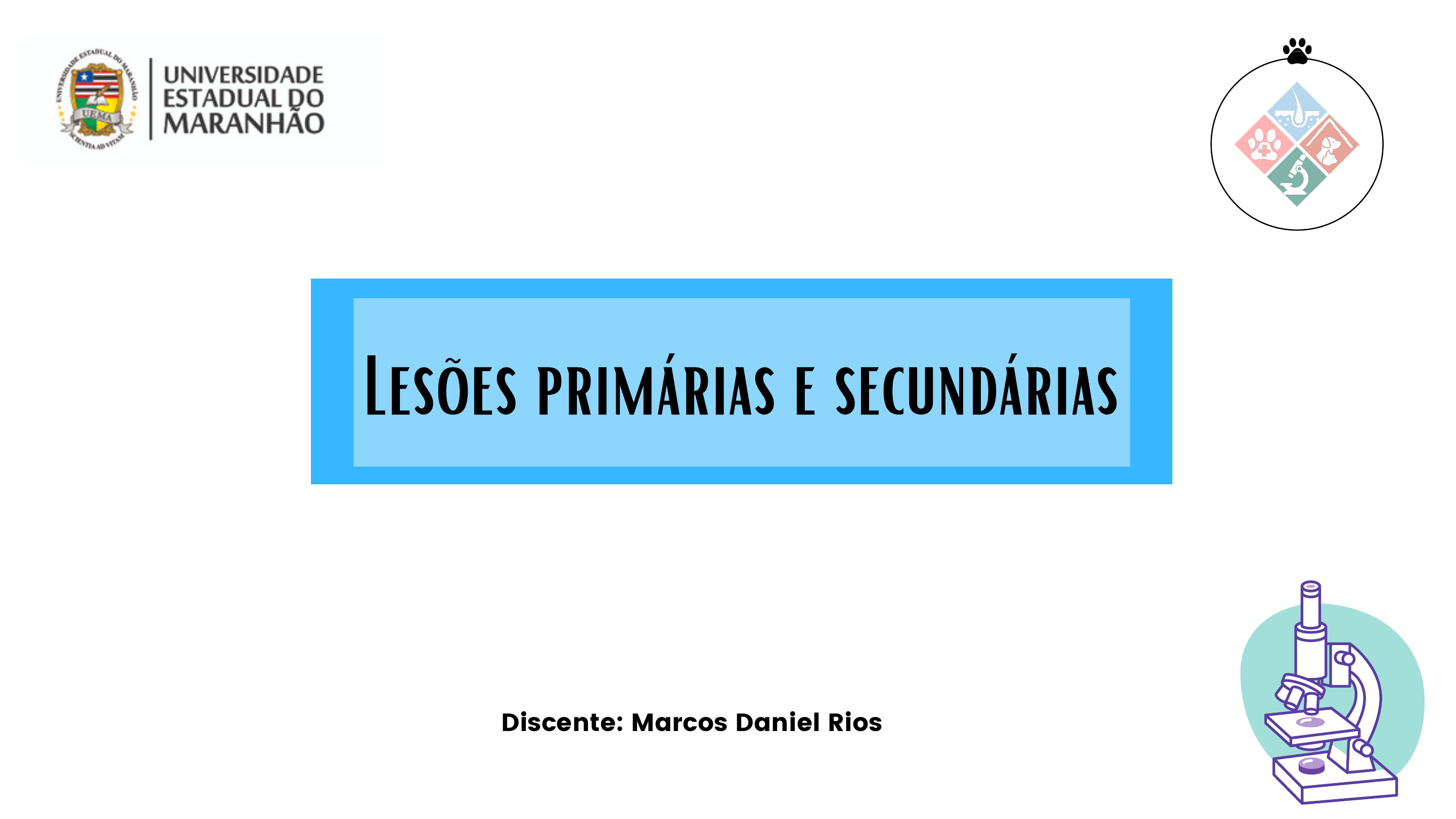 Lesões primárias e secundárias Discente: Marcos Daniel Rios Lima Grupo de estudos em Dermatologia Veterinária G R U P O D E E S TU DO S E M DERMATOLOG IA V E T E R IN Á R IA GEDVET - UE MA Importância da integridade da pele Barreira anatomofisiológica entre o animal e o ambiente Perdas econômicas Reflexo da saúde do animal Uma pele saúdavel é uma pele....? Exame clínico Lesões da pele O que é uma lesão? Anamnese http://primeirosemestredemedicinaveterinaria.blogspot.com/2014/02/pele.html Determinação do padrão dermatológico predominante Lesão primária? Lesão secundária? Lesão primária x Lesão secundária Lesão primária Lesão secundária Desenvolvem-se espontaneamente Resultado direto de doença ou distúrbio. Consequência da progressão natural de uma lesão primária Menos específicas que as primárias Podem ser derivadas de automutilação ou de ação de medicamentos Lesão primária Modificação da cor Lesão sólida Preenchida por líquido Eritema Púrpura Mácula Mancha Pápula Placa Nódulo Tumor Cisto Vesícula Bolha Pústula Lesão primária Mácula: Área circunscrita, plana e não palpável, possui cor distinta da pele ao redor e tem até 1cm de diâmetro. Fonte: Caderno técnico de veterinária e zootecnia, 2013, Pápula: Lesão sólida circunscrita, elevada, superficial de até 1cm de diâmetro. Fonte: Caderno técnico de veterinária e zootecnia, 2013, Lesão primária Placa: Lesão sólida superficial, plana, circunscrita e elevada, com mais de 1cm de diâmetro Fonte: Caderno técnico de veterinária e zootecnia, 2013, Cisto: Cavidade elíptica, fechada, contendo fluido ou material semi-sólido. Fonte: Caderno técnico de veterinária e zootecnia, 2013, Lesão primária Pústula: Lesão elevada circunscrita contendo fluido purulento. Fonte: Caderno técnico de veterinária e zootecnia, 2013, Petéquia: Área de depósito de sangue ou seus pigmentos, com até 1cm de diâmetro. http://www.fmv.ulisboa.pt/atlas/pele/paginas_pt/pele_036.htm Lesão secundária Produções anormais Perda de substância Colarete epidérmico Crosta Erosão Escoriação Lesão secundária Descamação: Perda de células da epiderme que podem estar secas ou oleosas. Fonte: Caderno técnico de veterinária e zootecnia, 2013, Comedo: Oclusão do folículo piloso (poro) http://www.fmv.ulisboa.pt/atlas/pele/paginas_pt/pele_036.htm Lesão secundária Erosão: Uma escavação da pele limitada à epiderme e que não ultrapassa a junção derme- epiderme. Fonte: Caderno técnico de veterinária e zootecnia, 2013, Liquenificação: Área difusa de espessamento da pele, com resultante aumento das linhas e marcas cutâneas. http://www.fmv.ulisboa.pt/atlas/pele/paginas_pt/pele_036.htm Lesão secundária Úlcera: Cavitação de tamanho e forma irregulares que estende-se pela derme. Fonte: Caderno técnico de veterinária e zootecnia, 2013, Crosta: Coleções de exsudatos cutâneos de diversas cores. http://www.fmv.ulisboa.pt/atlas/pele/paginas_pt/pele_036.htm Próximos passos Padrão determinante Lista de diagnósticos diferenciais Existem alterações de pigmentação? As lesões são elevadas? As lesões são achatadas, em depressão ou discretamente elevadas? Realizar exames e testes diagnósticos RELATO DE CASO CLÍNICO Sobre o paciente Anamnese Suspeita Clínica Exames realizados RELATO DE CASO CLÍNICO https://vetsmart-parsefiles.s3.amazonaws.com/822e15469234876d8829b043ff3b6fe9_vetsmart_admin_pdf_file.pdf https://vetsmart-parsefiles.s3.amazonaws.com/822e15469234876d8829b043ff3b6fe9_vetsmart_admin_pdf_file.pdf RELATO DE CASO CLÍNICO https://vetsmart-parsefiles.s3.amazonaws.com/822e15469234876d8829b043ff3b6fe9_vetsmart_admin_pdf_file.pdf DA COSTA VAL, Adriane Pimenta. Dermatologia em cães e gatos. Cadernos Técnicos de Veterinária e Zootecnia: FEPMVZ Editora, 2013. RELATO DE CASO CLÍNICO. [S. l.], 2019. Disponível em: https://vetsmart- parsefiles.s3.amazonaws.com/822e15469234876d8829b0 43ff3b6fe9_vetsmart_admin_pdf_file.pdf. Acesso em: 30 set. 2021. PRODUÇÃO E PERSPECTIVA DO SETOR DE COURO E CALÇADOS DO BRASIL, NORDESTE, CEARÁ E BAHIA. [S. l.], 2021. Disponível em: https://www.bnb.gov.br/s482- dspace/bitstream/123456789/647/1/2021_CDS_148.pdf. Acesso em: 30 set. 2021. Referências
