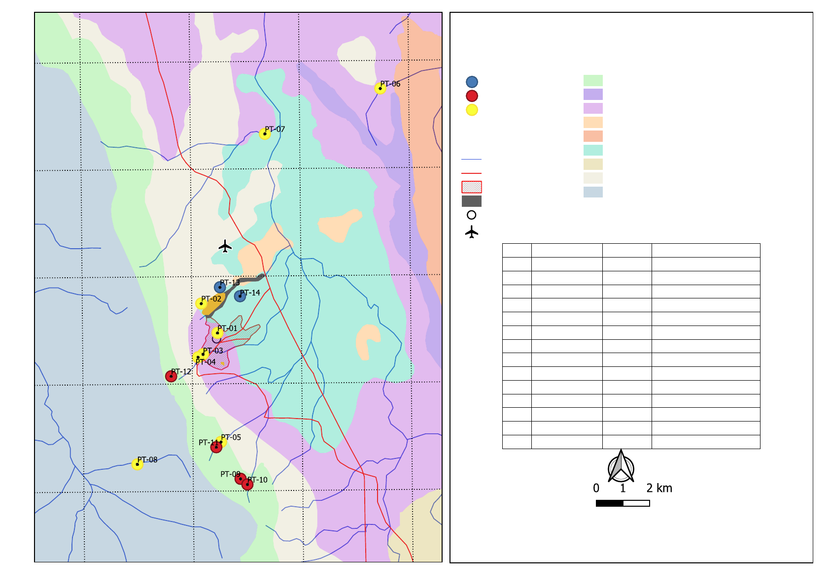 85 92 00 0. 00 0 85 92 00 0. 00 0 85 88 00 0. 00 0 85 88 00 0. 00 0 85 84 00 0. 00 0 85 84 00 0. 00 0 85 80 00 0. 00 0 85 80 00 0. 00 0 85 76 00 0. 00 0 85 76 00 0. 00 0 -100.000 -100.000 -60.000 -60.000 -20.000 -20.000 753500.000 753500.000 AMOSTRAGEM Cisterna Nascente Poço Tubular Rede de Drenagem Rodovias Área Urbana Bacia de Rejeito Sede do Município Pista de Pouso LITOLOGIA Formação Bom Retiro Unidade Boquira Complexo Caraíba-Paramirim Cobertura Detrito-Laterítica Neo-Pleistocênica Depósitos Coluviais Holocênicos Granito de Boquira Granito Veredinha Greenstone Belt Brumado Formação Serra do Boqueirão CONVENÇÕES CARTOGRÁFICAS Pontos NOME tipo Geologia PT-01 Chico Ferro Poço tubular Complexo Caraíba-Paramirim PT-02 Vila Operária Poço tubular Greenstone Belt Brumado PT-03 Dr. Roberto Poço tubular Complexo Caraíba-Paramirim PT-04 Maria de Nuca Poço tubular Complexo Caraíba-Paramirim PT-05 Alto do Bonito Poço tubular Formação Bom Retiro PT-06 Caldeirão Poço tubular Complexo Caraíba-Paramirim PT-07 Tonho da Mamona Poço tubular Granito de Boquira PT-08 Rasgão 09 Poço tubular Formação Serra do Boqueirão PT-09 Boqueirão II Nascente Formação Bom Retiro PT-10 Boqueirão I Nascente Formação Bom Retiro PT-11 Alto do Bonito Nascente Formação Bom Retiro PT-12 Da Mata Nascente Formação Bom Retiro PT-13 Flávio de Adolfino Cisterna Greenstone Belt Brumado PT-14 João de Inácio Cisterna Granito de Boquira MAPA DE AMOSTRAGEM Boquira/BA Projeção Cartográfica Cilíndrica UTM / SIRGAS / 2000 / 23S Fonte de dados amostrados: Daltro, 2017 Fonte de bases cartográficas/geológicas: IBGE, 2017. PEREIRA, L. S.; Elaborado em 2020
