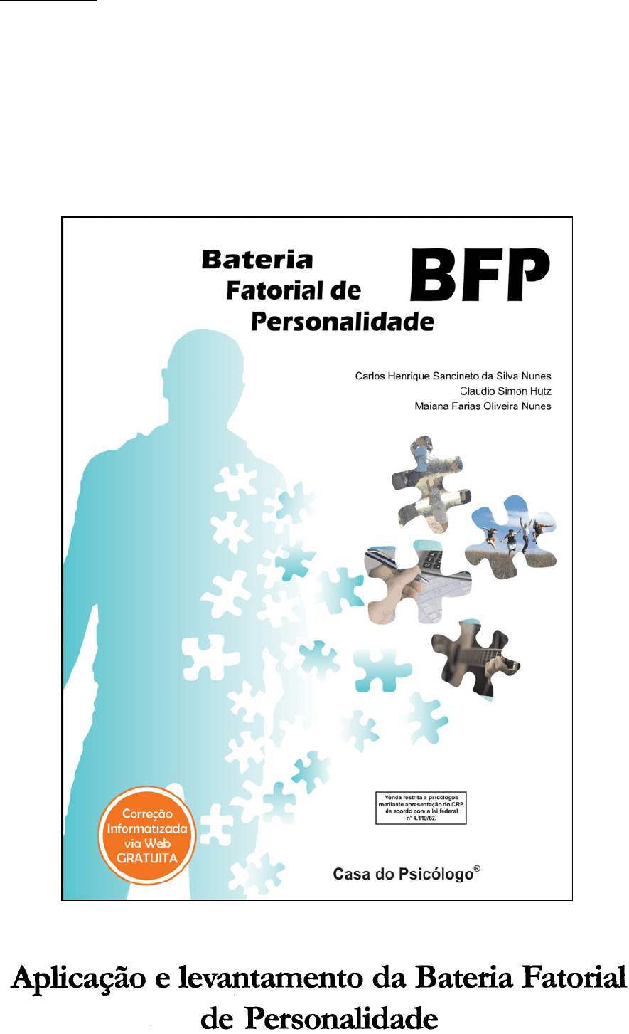 APRESENTAÇÃO A Bateria Fatorial de Personalidade (BFP) é um instrumento psicológico construído para a avaliação da personalidade a partir do modelo dos Cinco Grandes Fatores (CGF), que inclui as dimensões: Extroversão, Socialização, Realização, Neuroticismo e Abertura a experiências. A bateria foi desenvolvida no Brasil, levando em conta a linguagem falada no país, os valores culturais, as diversidades regionais e especificidades dos quadros clínicos na nossa realidade. Essas características, portanto, diferenciam a BFP de outros instrumentos para a avaliação da personalidade desenvolvidos em outros países e adaptados para o Brasil. O tempo de aplicação usualmente não ultrapassa 40 minutos.