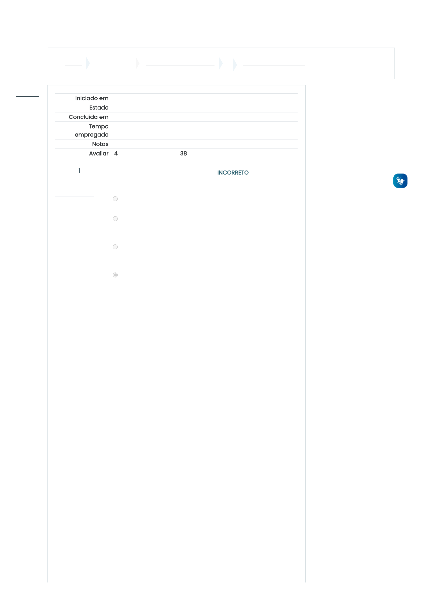 02/11/2021 11:08 Módulo 2 - Atividade 1: Revisão da tentativa https://escolavirtual.educacao.go.gov.br/mod/quiz/review.php?attempt=1494621&cmid=81536 1/7 Painel Meus cursos ensino_hibrido_turma 3 Módulo 2 - Atividade 1 Questão 1 Correto Atingiu 2 de 2 Iniciado em terça, 2 Nov 2021, 11:05 Estado Finalizada Concluída em terça, 2 Nov 2021, 11:07 Tempo empregado 2 minutos 8 segundos Notas 4/10 Avaliar 4 de um máximo de 10(38%) Sobre o professor e o Ensino Híbrido é INCORRETO afirmar que Escolha uma opção: a. O planejamento deve ser flexível, de modo que contemple a realidade dos seus estudantes . b. Cabe ao professor proporcionar situações que favoreçam o protagonismo dos estudantes na aquisição de seus conhecimentos. c. É papel do professor, observar e respeitar as singularidades dos estudantes no tempo e no ritmo de cada um. d. Cabe a escola planejar e escolher as tecnologias para cada momento das aulas híbridas que o professor vai mediar. Sua resposta está correta. A resposta correta é: Cabe a escola planejar e escolher as tecnologias para cada momento das aulas híbridas que o professor vai mediar. https://escolavirtual.educacao.go.gov.br/my/ https://escolavirtual.educacao.go.gov.br/course/view.php?id=1026 https://escolavirtual.educacao.go.gov.br/course/view.php?id=1026#section-0 https://escolavirtual.educacao.go.gov.br/mod/quiz/view.php?id=81536 javascript:void(0); https://escolavirtual.educacao.go.gov.br/user/index.php?id=1026 https://escolavirtual.educacao.go.gov.br/grade/report/index.php?id=1026 https://escolavirtual.educacao.go.gov.br/my/ https://escolavirtual.educacao.go.gov.br/?redirect=0 https://escolavirtual.educacao.go.gov.br/calendar/view.php?view=month&course=1026 javascript:void(0); https://escolavirtual.educacao.go.gov.br/user/files.php 02/11/2021 11:08 Módulo 2 - Atividade 1: Revisão da tentativa https://escolavirtual.educacao.go.gov.br/mod/quiz/review.php?attempt=1494621&cmid=81536 2/7 Questão 2 Incorreto Atingiu 0 de 2 Leia o trecho a seguir: “Incorporar as tecnologias de informação – TI à prática pedagógica é um desafio com que a educação se depara. Houve um momento no qual se considerou que bastaria disponibilizar equipamentos nas instituições educacionais e estaria garantido o seu uso por professores e alunos. Somente quando os computadores começaram a chegar nas instituições é que se evidenciou a importância de investir na preparação dos professores para tal uso” (ALMEIDA,2002). Com base no texto é possível afirmar que: Escolha uma opção: a. o acesso à tecnologia exige uma formação docente continuada para que os professores desenvolvam metodologias e ensino a partir de suas práticas reflexivas. b. a formação docente não é fundamental para resolver problema, haja vista que está relacionada apenas à metodologia de ensino adotada para sala de aula. c. a formação do professor deve ficar restrita ao ambiente computacional e não há necessidade de ser compartilhada com toda a escola. d. o acesso à tecnologia de informação é condição indispensável e suficiente para os processos de ensino e aprendizagem. Sua resposta está incorreta. A resposta correta é: o acesso à tecnologia exige uma formação docente continuada para que os professores desenvolvam metodologias e ensino a partir de suas práticas reflexivas. javascript:void(0); https://escolavirtual.educacao.go.gov.br/user/index.php?id=1026 https://escolavirtual.educacao.go.gov.br/grade/report/index.php?id=1026 https://escolavirtual.educacao.go.gov.br/my/ https://escolavirtual.educacao.go.gov.br/?redirect=0 https://escolavirtual.educacao.go.gov.br/calendar/view.php?view=month&course=1026 javascript:void(0); https://escolavirtual.educacao.go.gov.br/user/files.php 02/11/2021 11:08 Módulo 2 - Atividade 1: Revisão da tentativa https://escolavirtual.educacao.go.gov.br/mod/quiz/review.php?attempt=1494621&cmid=81536 3/7 Questão 3 Correto Atingiu 2 de 2 Leia “Mesmo que os recursos não estejam fisicamente instalados nos espaços escolares, a mídia audiovisual invade a sala de aula. A linguagem produzida pela integração entre imagens, movimentos e sons atrai e toma conta das gerações mais jovens [...]. Criar espaços para a identificação e o diálogo entre essas formas de linguagem e permitir que os alunos se expressem de diferentes maneiras favorecem o desenvolvimento da consciência crítica sobre a influência da mídia [...].” (ALMEIDA, 2007, p.161). A partir do exposto no texto, julgue (V) verdadeiro e (F) falso para as seguintes afirmações. ( ) É fundamental que o professor ofereça ferramentas para que os estudantes estabeleçam relação entre os conceitos a serem estudados com temas propostos para o aprofundamento das informações advindas das tecnologias digitais. ( ) É imprescindível que o professor invista em infraestrutura e insira as tecnologias digitais em suas práticas de sala de aula a fim despertar a percepção crítica nos estudantes. ( ) Ao fazer uso das tecnologias em sala de aula, é necessário levar em consideração todos os envolvidos como sujeitos que participam ativamente da construção do ensino e aprendizagem. ( ) O professor deve compreender as potencialidades e limitações das ferramentas tecnológicas diante da interação com os estudantes promovendo o processo de aprendizagem significativo para os estudantes. De acordo com as afirmações, marque a opção que corresponda a sequência correta. Escolha uma opção: a. F – F – V – V b. F – V – F – F c. V – F – V – V d. V – V – F – F Sua resposta está correta. A resposta correta é: V – F – V – V javascript:void(0); https://escolavirtual.educacao.go.gov.br/user/index.php?id=1026 https://escolavirtual.educacao.go.gov.br/grade/report/index.php?id=1026 https://escolavirtual.educacao.go.gov.br/my/ https://escolavirtual.educacao.go.gov.br/?redirect=0 https://escolavirtual.educacao.go.gov.br/calendar/view.php?view=month&course=1