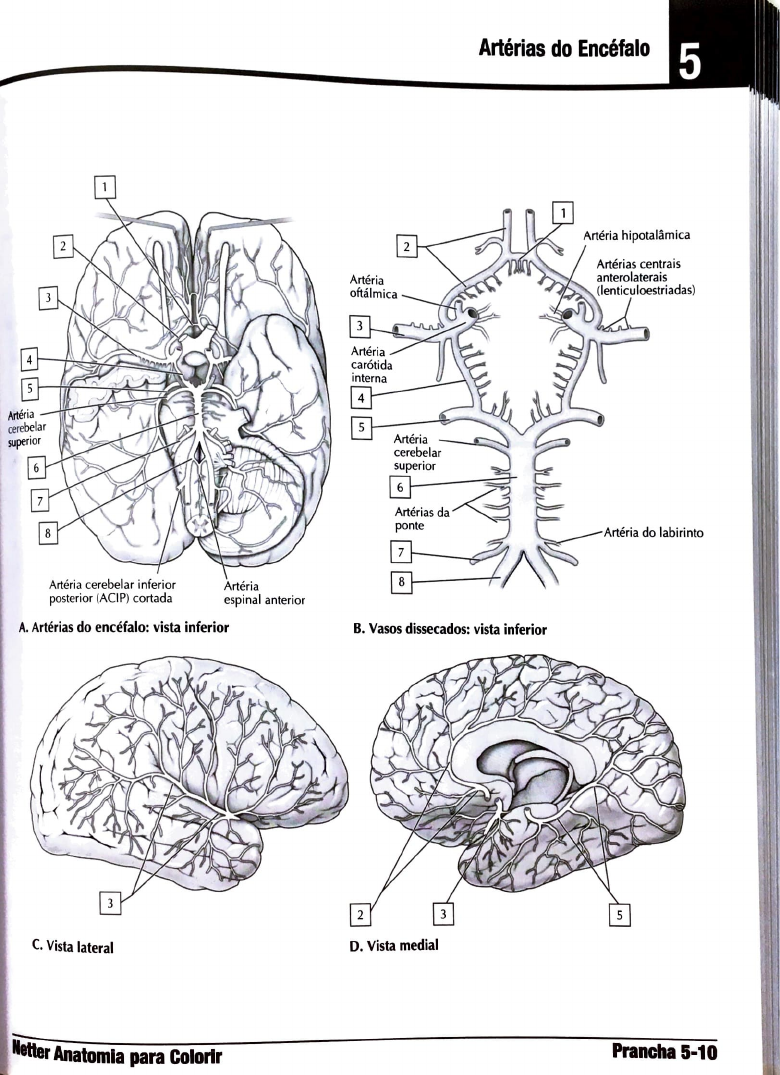 Artéria cerebelar inferior posterior (ACIP) cortada Artéria espinal anterior A. Artérias do encéfalo: vista inferior C. Vista lateral lletter Anatomia para Colorlr Artérias do Encéfalo 6 Artérias da ponte E----. Artéria do labirinto ?//\~ B. Vasos dissecados: vista inferior D. Vista medial Prancha 5-10 Artéria cerebelar inferior posterior (ACIP) cortada Artéria espinal anterior A. Artérias do encéfalo: vista inferior C. Vista lateral lletter Anatomia para Colorir Artérias do Encéfalo Artéria cerebelar superior Artérias da ~ /\ ~ ,~••00'•"'""" 8. Vasos dissecados: vista inferior D. Vista medial Prancha 5-1 o