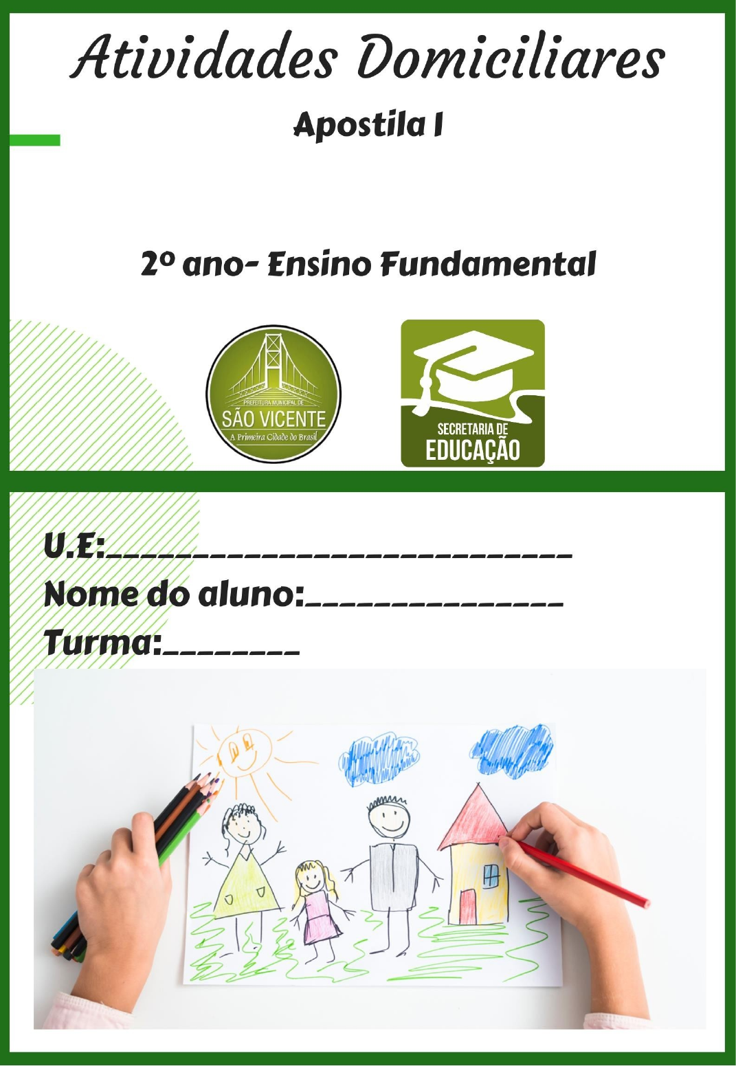 Prezado(a) Responsável e aluno(a), Infelizmente o mundo passa por uma pandemia que compromete nosso bem estar e nossa saúde. Enfrentamos o COVID-19 e medidas de segurança precisaram ser adotadas para a preservação de nossas vidas e daquelas que nos são queridas. Devido a isso, estamos em isolamento social, cujas orientações vêm da Organização Mundial da Saúde e que são seguidas pelo Governo do Estado de São Paulo e pelo nosso município, São Vicente. Estamos longe fisicamente, mas estamos perto, seja por meio de nossas redes sociais ou pelo blog da Secretaria de Educação. E para você que não tem acesso à internet, foi elaborado este material com atividades que também estão disponíveis em nosso blog (educacaobasicasv.blogspot.com). Esperamos que você conclua as atividades em uma quinzena, logo depois disponibilizaremos uma nova apostila. Mantenha sua rotina de estudo, conserve-se seguro, sempre lavando as mãos, fazendo uso do álcool gel e, se possível, ficando em casa. Caso tenha alguma dúvida na realização da atividade, temos dois canais de comunicação com os nossos especialistas: pelo telefone da Educação Básica (13) 35692247 ou pelo e-mail duvidablogsv@gmail.com. Um forte abraço, Professora Eugênia Marcondes Secretária da Educação Pedro Gouvêa Prefeito Municipal de São Vicente LÍNGUA PORTUGUESA – ATIVIDADE 1 1 – ESCREVA AQUI O SEU NOME. 2 – QUANTAS LETRAS ELE TEM? 3 – QUAL PESSOA DA FAMÍLIA TEM O NOME MAIS COMPRIDO?ESCREVA. 4 – QUANTAS LETRAS ESSE NOME TEM? 5 – ESCREVA O NOME DO FAMILIAR QUE TEM O NOME MAIS CURTO. 6 – QUANTAS LETRAS ESSE NOME TEM? LÍNGUA PORTUGUESA – ATIVIDADE 2 LEIA: 1) Quem escreveu o bilhete? 2) Para quem ele mandou o bilhete? 3) Qual o assunto? 4) Como Luan se despediu? LÍNGUA PORTUGUESA – ATIVIDADE 3 1 – ESCREVA DO SEU JEITO O NOME DE CADA FIGURA. 2 – AS PALAVRAS A SEGUIR ESTÃO MISTURADAS. ORGANIZE-AS NAS LISTAS CERTAS: PATO URSA PATA COELHO GATO MACACO GATA URSO MACACA COELHA Palavras terminadas em A Palavras terminadas em O LÍNGUA PORTUGUESA – ATIVIDADE 4 Escreva os nomes das crianças em ordem alfabética. Antônio Luísa Nina Nina LÍNGUA PORTUGUESA – ATIVIDADE 5 O Caracol Viajante Rodolfo é um caracol. Ele adora viajar. Fonte: http://2.bp.blogspot.com/-lvoxAU- lNxI/T9FYJeNZ7mI/AAAAAAA ADds/gnzEVYUpmzg/s1600/ Ele não tem pressa de chegar. Rodolfo leva a casa nas costas. A barriga vai no chão. A cabeça vai no ar. Rodolfo vive sempre satisfeito. Ele não tem aluguel pra pagar. Fonte: texto retirado da apostila 1º Ano – 2º Bimestre – Sistema Interativo de Ensino Responda em seu caderno: 1) Qual é o nome do caracol? 2) Ele adora: 3) O que ele leva nas costas? 4) A barriga vai no? 5) A cabeça vai no? MATEMÁTICA – ATIVIDADE 1 VOCÊ CONHECE ÁLBUM DE FIGURINHA? JÁ COLOU FIGURINHA EM UM DELES? ESTA É UMA PÁGINA DO ÁLBUM DE FIGURINHAS DO ANDRÉ. RESPONDA: 1) ANDRÉ JÁ COLOU A FIGURINHA 37 NO SEU ÁLBUM? 2) QUAIS FIGURINHAS QUE COMEÇAM COM “TRINTA E...” ANDRÉ COLOU EM SEU ÁLBUM? 3) QUAIS OS NÚMEROS QUE ESTÃO FALTANDO NA PÁGINA DO ÁLBUM DE ANDRÉ? MATEMÁTICA – ATIVIDADE 2 PAULINHA TEM AS FIGURINHAS ABAIXO. QUER COLOCÁ - LAS EM ORDEM, DA MENOR PARA A MAIOR. VAMOS AJUDÁ - LA? 1) COPIE OS NÚMEROS DAS FIGURINHAS DO MENOR PARA O MAIOR. 2) PAULINHA FEZ UMA LISTA COM TODAS AS FIGURINHAS REPETIDAS QUE TEM. ELA TAMBÉM TEM REPETIDAS TODAS AS FIGURINHAS DA FAMÍLIA DO 30. AJUDE A PAULINHA E ESCREVA OS NÚMEROS QUE ESTÃO FALTANDO.FIGURINHAS REPETIDAS NÚMEROS: 2 – 7 13 – 16 21 – 22 30 - MATEMÁTICA – ATIVIDADE 3 A PROFESSORA ROSA FEZ UM GRÁFICO PARA MOSTRAR EM UMA REUNIÃO DE PAIS O NÚMERO DE FALTAS NA ESCOLA DURANTE UMA SEMANA. OBSERVE O GRÁFICO E RESPONDA ABAIXO: 1) QUAL O DIA DA SEMANA QUE HOUVE MAIS FALTAS? QUANTAS? 2) QUAL O DIA DA SEMANA QUE HOUVE MENOS FALTAS? QUANTAS? 3) NA SALA DA PROFESSORA ROSA HÁ 20 ALUNOS. QUANTOS ALUNOS FORAM HÁ ESCOLA NA 4ª FEIRA? 4) COLOQUE EM ORDEM CRESCENTE (DO MENOR PARA O MAIOR) OS DIAS DA SEMANA DE ACORDO COM O NÚMERO DE FALTAS. MATEMÁTICA – ATIVIDADE 4 OBSERVE A CENA E RESPONDA: 1) QUANTAS CRIANÇAS APARECEM NA CENA? 2) QUANTOS ANOS A ANIVERSARIANTE ESTÁ FAZENDO? 3) QUANTAS BEXIGAS HÁ NA CENA? 4) QUANTAS BEXIGAS FALTAM PARA QUE CADA CRIANÇA FIQUE COM UMA BEXIGA? 5) QUANTOS DOCINHOS TEM NA MESA: 6) CADA CRIANÇA COMEU 2 DOCINHOS. QUANTOS DOCINHOS SOBRARAM NA MESA? Referência: Coleção Oficina de Reforço – 2º ano MATEMÁTICA – ATIVIDADE 5 RESOLVA OS PROBLEMAS: MAMÃE FEZ 20 BRIGADEIROS DE SABORES VARIADOS. SABORES: · 07 TRADICIONAL; · 05 DE PAÇOCA; · 04 DE DOCE DE LEITE; · 04 DE LEITE NINHO; 1) ANINHA COMEU 7 BRIGADEIROS. QUANTOS SOBRARAM? 2) VITOR COMEU 03 DE PAÇOCA E 02 DE LEITE NINHO. QUANTOS SOBRARAM DE CADA SABOR? 3) UM PACOTE DE FORMINHA PARA BRIGADEIRO TEM 100 UNIDADES. MAMÃE USOU 20. QUANTAS SOBRARAM? 4) DONA MARIA ENCOMENDOU 2 DÚZIAS DE BRIGADEIROS PARA MAMÃE. QUANTOS BRIGADEIROS ELA ENCOMENDOU?LEMBRETE: 1 DÚZIA = 12 5) LUCIANA ENCOMENDOU 5 DEZENAS DE BRIGADEIROS. QUANTOS BRIGADEIROS ELA ENCOMENDOU? LEMBRETE: 1 DEZENA = 10 Prefeitura Municipal de São Vicente Secretaria de Educação Departamento de Educação Básica CIÊNCIAS – ATIVIDADE 1 FAÇA A LEITURA DO PANFLETO ABAIXO: Fonte: http://blog.mundodositio.globo.com/2013/04/24/qual-a-importancia-da-vacinacao/ Acesso em: março 2020 ELABORE UM DESENHO QUE EVIDENCIE A IMPORTÂNCIA DA VACINAÇÃO DAS CRIANÇAS E, NA SEQUÊNCIA, MOSTRE PARA AS PESSOAS QUE ESTÃO EM SUA CASA. BOM TRABALHO! Fonte atividade adaptada site: https://novaescola.org.br/plano-de-aula/2372/vacinas-reforcos-a-imunidade- dos-organismos acesso em: março 2020 CIÊNCIAS – ATIVIDADE 2 COMO VOCÊ JÁ DEVE TER PERCEBIDO, NENHUM DE NÓS É IGUAL AO OUTRO, E ISSO TORNA TUDO MAIS DIVERTIDO!google.com/search NA IMAGEM AO LADO PODEMOS VER QUANTAS DIFERENÇAS ENTRE TANTAS PESSOAS EM NOSSAS VIDAS 1) ESCREVA ALGUMAS DIFERENÇAS QUE VOCÊ PERCEBEU NA IMAGEM. 2) CONVERSE COM OS A