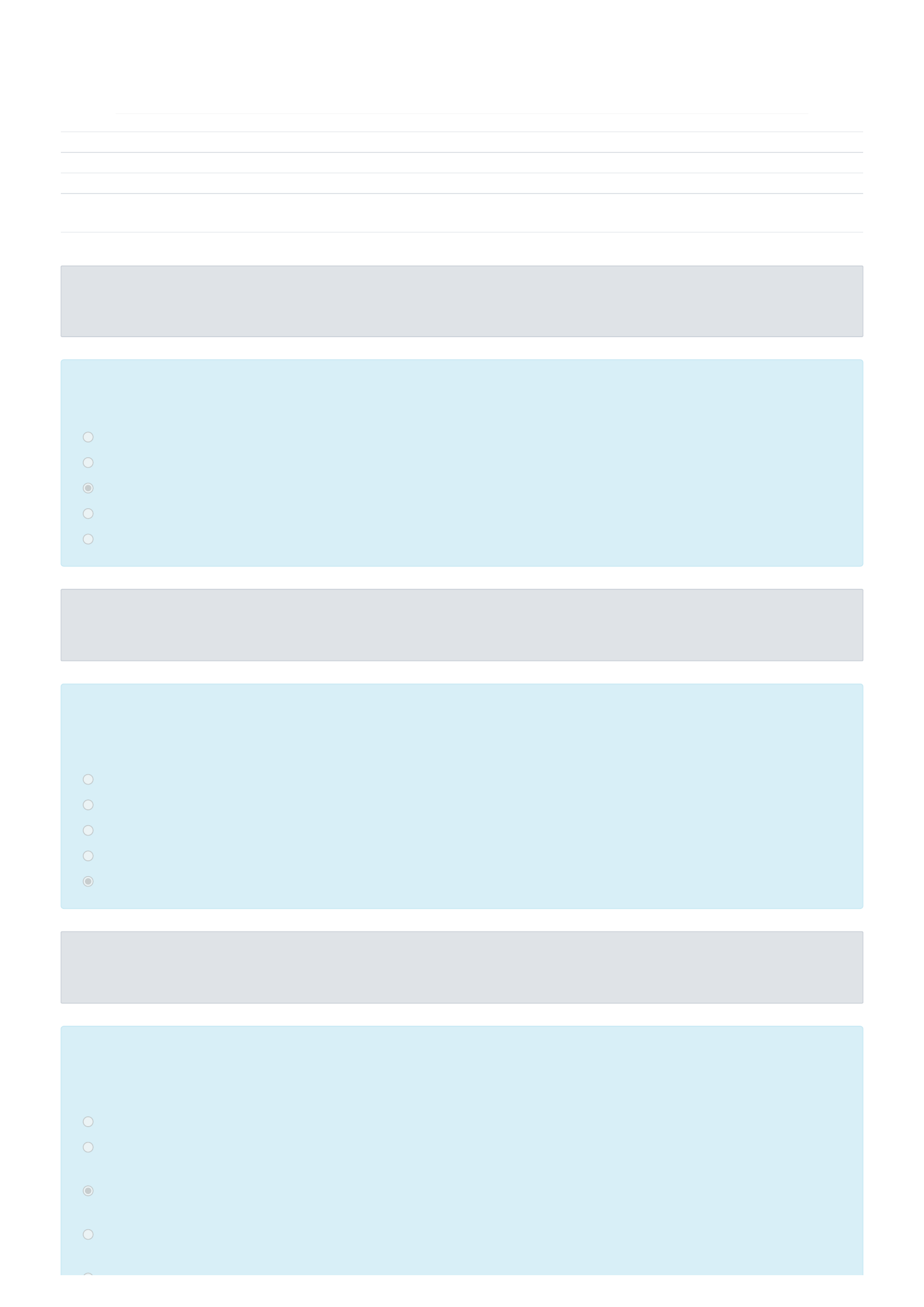 08/10/2021 21:22 Avaliação: Revisão da tentativa https://ecossistema.doctum.edu.br/aluno/financeiro 1/4 Iniciado em sexta, 8 out 2021, 20:44 Estado Finalizada Concluída em sexta, 8 out 2021, 21:22 Tempo empregado 37 minutos 14 segundos Avaliar 20,00 de um máximo de 20,00(100%) Questão 1 Correto Atingiu 2,00 de 2,00 Questão 2 Correto Atingiu 2,00 de 2,00 Questão 3 Correto Atingiu 2,00 de 2,00 Indique a alternativa correta quanto às costelas. Escolha uma opção: a. Existem, ao todo, 22 costelas no tórax. b. Nem todas as costelas possuem cartilagens costais. c. A décima primeira e a décima segunda costelas não se articulam ao osso esterno e possuem cartilagens costais. d. As cartilagens costais não propiciam mobilidade. e. As cartilagens costais desaparecem na vida adulta. A sutura ______________ cria um limite antero-posterior para o corpo humano, dando grande importância para o estudo da anatomia. Assinale a alternativa que completa a lacuna: Escolha uma opção: a. Metópica. b. Sagital. c. Lambdoide. d. Frontonasal. e. Coronal. A hemodiálise é um procedimento utilizado por pacientes com insuficiência renal. Neste contexto, a função desse procedimento é a seguinte: Escolha uma opção: a. Oxigenação, uma vez que os pacientes com insuficiência renal apresentam menores quantidades de oxigênio na corrente sanguínea. b. Nutrição, uma vez que os pacientes com insuficiência renal apresentam uma menor capacidade de absorver os nutrientes dos alimentos. c. Excreção, uma vez que os pacientes com insuficiência renal apresentam uma menor capacidade de eliminar o excesso de íons e de compostos nitrogenados que acumulam no sangue. d. Excreção, uma vez que os pacientes com insuficiência renal apresentam uma menor capacidade de eliminar o excesso de gás carbônico que acumula no sangue. E ã i i fi iê i l id d d li i d li 08/10/2021 21:22 Avaliação: Revisão da tentativa https://ecossistema.doctum.edu.br/aluno/financeiro 2/4 Questão 4 Correto Atingiu 2,00 de 2,00 Questão 5 Correto Atingiu 2,00 de 2,00 Questão 6 Correto Atingiu 2,00 de 2,00 e. Excreção, uma vez que os pacientes com insuficiência renal apresentam uma menor capacidade de eliminar o excesso de glicose e de proteínas que acumulam no sangue. Indique a alternativa correta em relação aos músculos da face e do pescoço: Escolha uma opção: a. A inserção terminal no músculo levantador do ângulo da boca é na fossa incisiva da mandíbula. b. Nervo abducente (VI) inerva o músculo bucinador. c. Os músculos zigomático maior e zigomático menor elevam comprimem as bochechas. d. A inserção terminal do músculo platisma é na fáscia do tórax, região superior, entre a cartilagem da segunda costela e o acrômio da escápula. e. O músculo corrugador do supercílio tem sua origem a margem orbital do osso frontal próximo à sutura fronto nasal. As funções do pericárdio fibroso incluem: Escolha uma opção: a. Retorno do sangue para os átrios. b. Bombeamento de sangue na circulação. c. Ancoramento do coração nas estruturas circundantes. d. Suprimento de fluxo sanguíneo ao miocárdio. e. Estimulação elétrica do miocárdio A musculatura axial subdivide-se em quatro grupos: músculos da cabeça e do pescoço que não estão associados com a coluna vertebral, músculos da coluna vertebral, músculos oblíquos e retos músculos do períneo e do diafragma da pelve. Indique a alternativa correta em relação aos músculos da coluna vertebral: Escolha uma opção: a. Estendem-se entre o sacro e o cíngulo do membro inferior, ocluindo a abertura pélvica b. Fazem parte deste grupo os músculos intrínsecos do dorso, divididos em músculos da camada superficial, média e profunda. c. Fazem parte deste grupo os músculos intercostais externos e internos. d. O músculo quadrado do lombo tem a sua inserção terminal na crista ilíaca e no ligamento iliolombar. e. Os músculos profundos transverso- espinais são inervados por nervos torácicos. 08/10/2021 21:22 Avaliação: Revisão da tentativa https://ecossistema.doctum.edu.br/aluno/financeiro 3/4 Questão 7 Correto Atingiu 2,00 de 2,00 Questão 8 Correto Atingiu 2,00 de 2,00 Questão 9 Correto Atingiu 2,00 de 2,00 As características desta vértebra são seu corpo grande e grosso, e seus processos espinhoso e transverso retangulares e pesados. Assinale a alternativa que corresponde ao tipo de vértebra descrito na frase anterior: Escolha uma opção: a. Sacral b. Lombar c. Cervical d. Torácica e. Coccígena Os músculos da coluna vertebral estão dispostos em três camadas distintas: superficial, média e profunda. Os músculos das camadas superficial e média são chamados de ___________________. Eles são inervados pelos _______________ dos nervos espinais associados e se estendem desde o esqueleto axial até o ____________ ou a caixa torácica. Marque a alternativa que melhor completa as lacunas: Escolha uma opção: a. Músculos intrínsecos do dorso, ramos anteriores, membro superior. b. Músculos extrínsecos do dorso, ramos posteriores, membro superior. c. Músculos intrínsecos do dorso, ramos anteriores, membro inferior. d. Músculos intrínsecos do dorso, ramos mediais, membro superior. e. Músculos extrínsecos do dorso, ramos anteriores, membro superior. Qual é a função da úvula palatina? Escolha uma opção: a. Não apresenta função conhecida. b. Faz parte da faringe. c. Forma uma barreira entre a cavidade oral e a parte nasal da faringe, prevenindo a entrada prematura de materiais na região da faringe. d. Faz parte da laringe. e. Não tem papel na fonação. 08/10/2021 21:22 Avaliação: Revisão da tentativa https://ecossistema.doctum.edu.br/aluno/financeiro 4/4 Questão 10 Correto Atingiu 2,00 de 2,00 A nefropatia diabética é uma doença que acomete os rins e está associada ao diabetes melito. Como principal causa da insuficiência renal crônica, essa patologia causa danos aos glomérulos renais, destruindo os né