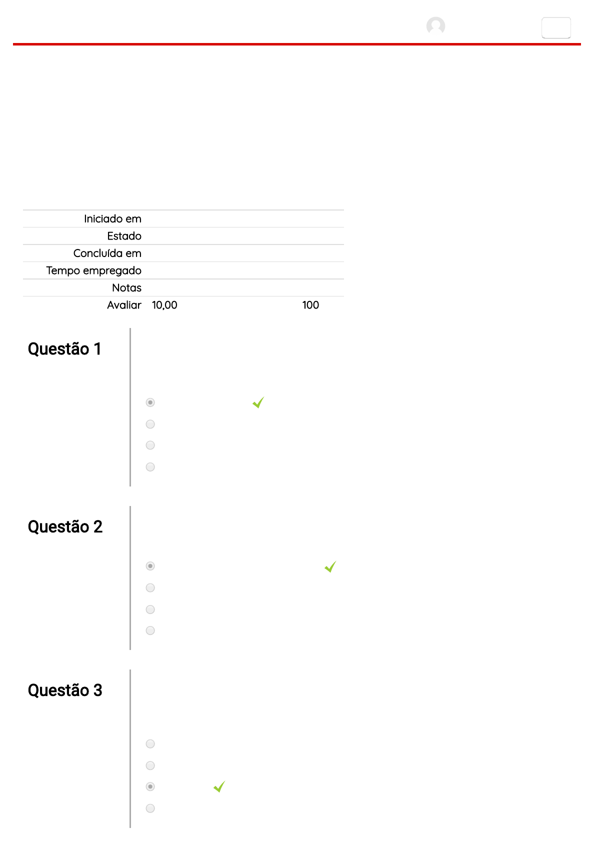 / Questão 1 Correto Atingiu 1,00 de 1,00 Questão 2 Correto Atingiu 1,00 de 1,00 Questão 3 Correto Atingiu 1,00 de 1,00 Minhas Disciplinas PRIMEIROS SOCORROS - 7229 Avaliações AP3.1 Avaliação Formativa Processual Iniciado em domingo, 13 out 2019, 12:25 Estado Finalizada Concluída em domingo, 13 out 2019, 12:57 Tempo empregado 31 minutos 56 segundos Notas 20,00/20,00 Avaliar 10,00 de um máximo de 10,00(100%) Ocorre na incapacidade de o coração bombear um volume de sangue su�ciente para atender às necessidades metabólicas dos tecidos. É o choque: Escolha uma: a. Cardiogênico. b. Ana�lático. c. Hipovolêmico. d. Neurogêncio. Na avaliação geral se a vítima estiver consciente o Socorrista deve perguntar: Escolha uma: a. O que aconteceu e onde dói. b. Qual seu nome e nomes dos seus pais c. Cidade onde mora. d. Qual hospital de sua preferência. Onda gerada pela pressão do sangue sobre uma artéria, regularmente ritmada pelos batimentos cardíacos, sendo de fácil palpação. Estamos nos referindo: Escolha uma: a. Des�brilação. b. Parada cardiorrespiratória. c. Pulso. d. Respiração. MESSIAS DOS SANTOS http://virtual.uninta.edu.br/ http://virtual.uninta.edu.br/course/view.php?id=7229 http://virtual.uninta.edu.br/mod/quiz/view.php?id=16220 / Questão 4 Correto Atingiu 1,00 de 1,00 Questão 5 Correto Atingiu 1,00 de 1,00 Questão 6 Correto Atingiu 1,00 de 1,00 Questão 7 Correto Atingiu 1,00 de 1,00 Das a�rmações abaixo, assinale o que for FALSO sobre os princípios básicos para um bom atendimento em primeiros socorros: Escolha uma: a. Agilidade do socorrista no reconhecimento. b. Ser calmo. c. Reparação das lesões do acidentado. d. Ser ansioso. A variação da frequência cardíaca do pulso pode variar de 60 a 70 bpm ____________ e de 65 a 80 _____________. Marque abaixo a sequência correta: Escolha uma: a. Na puberdade e adolescência. b. No idoso e criança maiores de 7 anos. c. No lactente e criança menores de 7 anos. d. No homem e na mulher. Os extremos de temperatura corpórea, por longo período de tempo, podem causar: Escolha uma: a. Danos reversíveis. b. Hipotermia. c. Danos irreversíveis. d. Hipertermia. O socorrista deve ser ágil e objetivo, observando rapidamente se existem perigos para o acidentado ou para a equipe nas proximidades da ocorrência, primando sempre pela segurança de ambos. Estamos falando de: Escolha uma: a. Primeiros e segundos socorros. b. Avaliação da cena do acidente. c. Avaliação do acidentado. d. Avaliação do socorrista. / Questão 8 Correto Atingiu 1,00 de 1,00 Questão 9 Correto Atingiu 1,00 de 1,00 Questão 10 Correto Atingiu 1,00 de 1,00 Questão 11 Correto Atingiu 1,00 de 1,00 Respiração arquejante, acelerada ou ofegante, face, lábios e extremidades cianóticos, dilatação das pupilas, dé�cit de consciência, agitação psicomotora e até convulsões. São sinais e sintomas de: Escolha uma: a. Asma. b. Anoxia. c. Choque hemorrágico. d. As�xia. É correto a�rmar que: Escolha uma: a. Todo paciente inconsciente está em parada cardiorrespiratória. b. Todo paciente com parada cardiorrespiratória está inconsciente. c. Todo paciente consciente está em parada cardiorrespiratória. d. Todo paciente com parada cardiorrespiratória está consciente. No exame secundário, a uma vítima de acidente deve-se abordar: Escolha uma: a. Histórico e o exame físico céfalo-caudal. b. Vias aéreas. c. A resposta da vítima. d. Sangramentos ou hemorragias. Dilatação da pupila, se completa em torno de 1 min e 45 segundos após a PCR. Estamos falando de: Escolha uma: a. Movimento normal. b. Midríase. c. Miose. d. Miíase. / Questão 12 Correto Atingiu 1,00 de 1,00 Questão 13 Correto Atingiu 1,00 de 1,00 Questão 14 Correto Atingiu 1,00 de 1,00 A conduta básica em primeiros socorros, durante o exame físico do paciente, é averiguar seu padrão respiratório, que pode variar quanto ao tipo e frequência. Uma frequência respiratória normal em torno de 20 a 25 rpm é apresentada por: Escolha uma: a. Criança. b. Lactente. c. Homem. d. Mulher. Qual dos tipos de transporte abaixo necessita de dois socorristas? Escolha uma: a. Colo. b. Apoio. c. Cadeirinha. d. Bombeiro. Quando alguém sofre um traumatismo e desmaia, o que é mais perigoso e comum em causar obstrução das vias aéreas? Escolha uma: a. A própria língua ao relaxar. b. Sangue no nariz que obstrui a garganta. c. A secreção do pulmão que não consegue sair. d. Dentes quebrados que são engolidos. / Questão 15 Correto Atingiu 1,00 de 1,00 Questão 16 Correto Atingiu 1,00 de 1,00 Questão 17 Correto Atingiu 1,00 de 1,00 Questão 18 Correto Atingiu 1,00 de 1,00 Ferimentos geralmente em forma reta e tem como característica as bordas regulares e são causados por objetos cortantes. Estamos falando de ferimentos: Escolha uma: a. Incisos. b. Contusos. c. Trans�xantes. d. Lacerantes. A variação térmica humana ideal oscila entre 35,9 e 37,2ºC, porém em algumas situações de emergências a temperatura pode se alterar subitamente. Marque abaixo a a�rmativa incorreta: Escolha uma: a. Temperatura axilar oscila entre 36 a 36,8°C. b. Temperatura retal oscila entre 36,4 a 37,2°C. c. Temperatura inguinal oscila entre 36 a 37,5°C. d. Temperatura bucal oscila entre 36,2 a 37°C. Ferimentos provocados por objetos pontiagudos e sua gravidade depende da profundidade da lesão. Muitas vezes ferimentos pequenos podem estender-se a grandes profundidades, lesionando órgãos internos. Estamos falando de ferimentos: Escolha uma: a. Trans�xantes. b. Contusos. c. Incisos. d. Perfurantes. É uma reação de hipersensibilidade sistêmica, que ocorre quando um indivíduo é exposto a uma substância à qual é extremamente alérgico: É o choque: Escolha uma: a. Cardiogênico. b. Hipovolêmico. c. Ana�lático. d. Neurogênico. / Questão 19 Correto Atingiu 1,00 de 1,00 Questão 20 Correto Atingiu 1,00 de 1,00 A fratura _________ ou _________ se caracteriza pe