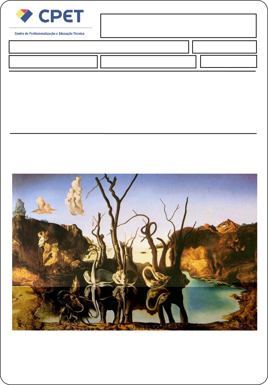 Leitura e Interpretação de Textos Aluno (a): Géssica Mota de Lima Data: 06/11/2021 Avaliação Pesquisa/Prática NOTA: INSTRUÇÕES: · Esta Avaliação contém questões, totalizando 10 (dez) pontos. · Você deve preencher dos dados no Cabeçalho para sua identificação · Nome / Data de entrega · As respostas devem ser digitadas abaixo de cada pergunta. · Ao terminar, grave o arquivo com o nome Atividade Prática. · Envio o arquivo pelo sistema. Pensando na necessidade de desenvolvermos a habilidade da descrição, vamos fazer um exercício de descrição por perspectivas diferentes. Observe, então, a imagem de Salvador Dali e descreva o que consegue ver. Dependendo do foco, posso ver, em um primeiro plano, um conjunto de cisnes nadando no lago, sob alguns galhos secos de árvores. Apurando um pouco mais o olhar, podemos ver que, refletidos na água, os cisnes se transformam em elefantes. Esta obra do pintor espanhol Salvador Dali, o mestre do Surrealismo, e se chama "Cisnes refletindo elefantes". Se a nossa perspectiva for mais panorâmica, ainda é possível verificar um homem em pé do lado esquerdo da tela, o qual, segundo os analistas, é um autorretrato do pintor. E se ainda nos autorizarmos brincar com nossa criatividade, poderemos identificar, em cada sombra ou risco, uma imagem diferente. É perceptível que um mesmo objeto, uma mesma pessoa, um mesmo lugar podem ser vistos de maneiras diferentes por diferentes pessoas, o sentido não está no texto lido ou no objeto da descrição, mas na interação entre este e o leitor, pois aí está envolvida, também, a bagagem de cada leitor. Avaliação Prática