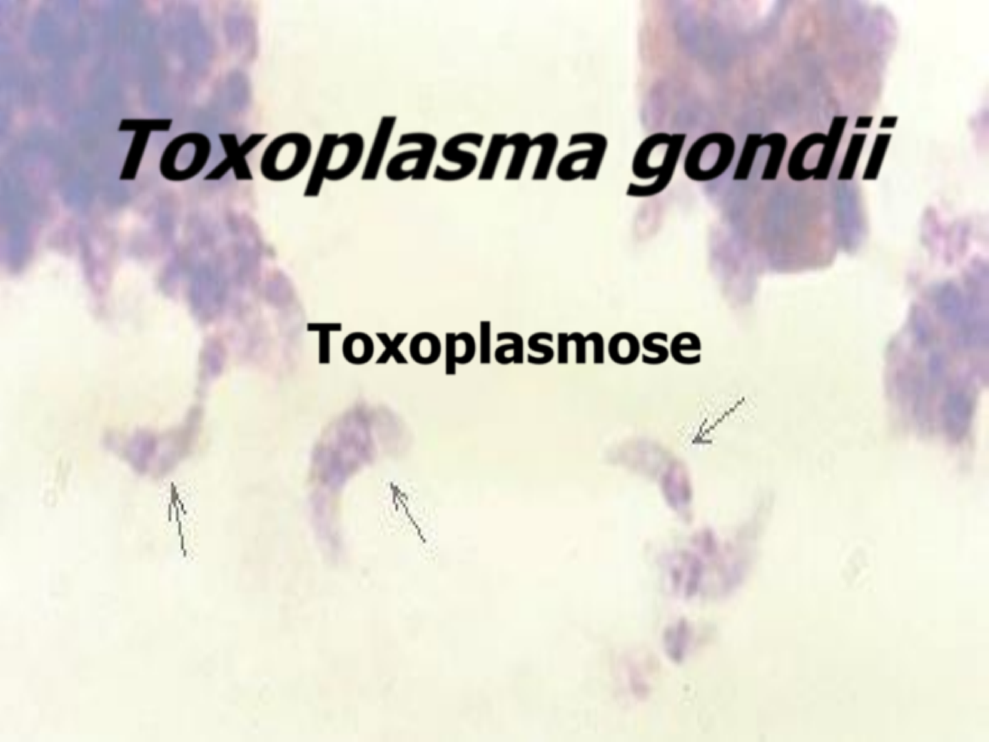 Toxoplasma gondii Toxoplasmose HISTÓRICO 1909: descrição do parasita e criação do gênero Toxoplasma (Nicole e Manceaux) • A partir da década de 1960: – Desenvolvimento e aplicação de testes sorológicos revelaram a ubiqüidade do parasita – ampla distribuição geográfica e de hospedeiros. - Descrição do ciclo e identificação dos felinos como hospedeiros definitivos Toxoplasma gondii • É o único agente etiológico da Toxoplasmose IMPORTÂNCIA • Altamente prevalente no mundo (37-58%:Europa Central; 51-72% na América Latina) • Pode provocar doença congênita grave • Importante causa de doença oportunista em pacientes infectados pelo HIV • Causa comum de uveíte podendo levar à perda da visão Íris = anel colorido que circunda a pupila Membrana coróide = revestimento interno do olho Processos ciliares = conjunto de músculos (cristalino espesso) Toxoplasma gondii : características • Parasita intracelular obrigatório, eurixeno • Classificação: Filo Apicomplexa (complexo apical: fixação e penetração). • Zoonose de felinos, porém infecta inúmeros vertebrados, inclusive o Homem Todos os mamíferos e aves são suscetíveis • Morfologia múltipla (habitat e estágio evolutivo): formas infectantes: taquizoítos, bradizoítos e esporozoítos forma de resistência: oocisto formas do ciclo sexuado – gametócitos , zigoto (no felino) Morfologia- forma infectante Organelas citoplasmáticas características do filo apicomplexa 1- Anéis polares – são dois, permitem a passagem do conteúdo parasitário 2- Conóides – concavidade revestida por proteínas: adesão 3- Micronemas – organelas secretoras, auxiliam na adesão e invasão celular 4- Roptrias – organelas secretoras, auxiliam na invasão 5- Grânulos densos – organelas secretoras, necessárias para multiplicação 1 2 3 45 COMPLEXO APICAL MORFOLOGIA DAS FORMAS INFECTANTES Taquizoítos - Fase aguda da infecção - Pouco resistente ao suco gástrico Localizações: vacúolo parasitóforo, excreções, células SMF, células hepáticas, pulmonares, nervosas, submucosas e musculares. - Forma proliferativa, livre ou trofozoíto - Forma grosseira de “banana” - Extremidade afilada, outra arredondada Taquizoítos MORFOLOGIA DAS FORMAS INFECTANTES Bradizoítos - Fase crônica da infecção - Podem ser encontrados na fase aguda - Multiplicam-se dentro de cistos Localizações: vários tecidos (musculares esqueléticos e cardíacos, nervoso, retina), vacúolo parasitóforo de uma célula. Isolamento imunológico - Semelhante aos taquizoítos - Maior acúmulo de glicogênio - Síntese de proteínas distintas Bradizoítos MORFOLOGIA DA FORMA DE RESISTÊNCIA Oocistos Forma de resistência: parede dupla Esféricos (12,5 x 11,0µm) Produzidos nas células intestinais Meio ambiente: esporulação 2 esporocistos: 4 esporozoítos cada Imaturo Maduro Oocistos Transmissão Vias de infecção para o homem Ingestão de oocistos: alimentos, água contaminada, jardins, lata de lixo, disseminação mecânica por moscas, baratas, minhocas, etc - Viáveis no solo úmido sombreado: 12 a 18 meses 54 meses à 4°C, 106 dias à -10°C, 55-60°C (1min): morte! Ingestão de cistos: carne crua/mal cozida (boi, porco e carneiro) Viáveis por mais de três meses quando a 4°C Mais de uma semana no congelador de -1 a -8°C Aquecimento acima de 67°C – MORTE! Transplacentária: risco de transmissão por taquizoítos Sorologia positiva antes da gravidez – menos chance de infecção do feto Outros: ingestão de taquizoítos em leite contaminado ou saliva, acidente de laboratório, transplante de órgãos infectados etc. Ciclo vital do Toxoplasma gondii Desenvolve-se em duas fases: Assexuada – nos linfonodos e tecidos de todos os hospedeiros Sexuada – no epitélio intestinal dos felídeos não-imunes CICLO HETEROXENO Gatos (Hospedeiros definitivos) Fase sexuada Fase assexuada Homem e outros mamíferos (Hospedeiros intermediários) Fase assexuada: outros tecidos Ciclo Biológico HOSPEDEIROS INTERMEDIÁRIOS Ingestão pelo hospedeiro (homem) Água/alimentos (oocisto: esporozoítos) Carne crua (cistos: bradizoítos) Leite, líquidos somáticos (taquizoítos) – Raro! esporozoítas taquizoítas bradizoítas Taquizoítos no estômago: destruídos Penetração pela mucosa oral ou inaladas: evolução do ciclo Ciclo Biológico HOSPEDEIROS INTERMEDIÁRIOS esporozoítas taquizoítas bradizoítas FASE ASSEXUADA: linfonodos e tecidos de vários hospedeiros FASE SEXUADA ou Coccidiana: epitélio intestinal de gatos jovens não-imunes. INGESTÃO EPITÉLIO INTESTINAL Penetração em diversos tipos de células Formação de vacúolos parasitóforos Multiplicação sucessiva intravacuolar – PSEUDOCISTO Rompimento da célula com liberação de TAQUIZOÍTOS esporozoítas taquizoítas bradizoítas Disseminação linfática e hematogênica FASE AGUDA DA DOENÇA Desenvolvimento de imunidade Morte do hospedeiro Desaparecimento dos parasitas circulantes Formação de CISTOS teciduais compostos de BRADIZOÍTAS HOMEM FELINO FASE CRÔNICA DA DOENÇA Taquizoítos invadem novas células Quadro polissintomático Quantidade das formas infectantes adquiridas Cepas virulentas ou avirulentas Suscetibilidade do hospedeiro Evolução até morte do hospedeiro FASE AGUDA DA DOENÇA (Fase proliferativa) IMUNIDADE: redução do parasitismo Humoral: IgM (inicial), IgG (após 8-12 dias), IgA Celular: T CD8+, TCD4+, NK Podem evoluir para formação de cistos teciduais (BRADIZOÍTOS) Fase crônica Longos períodos de fase crônica: assintomático Pode haver reagudização PatogeniaFATORES RELACIONADOS 1. Tipo de cepa Cepa do tipo I – associada com infecção congênita Cepa do tipo II – isolada em 65% dos pacientes com AIDS e reativação de infecção crônica Cepa do tipo III – infectam muito mais animais e pouco o HOMEM 2. Susceptibilidade do hospedeiro Idade – a infecção é mais comum em crianças e jovens Imunidade – a doença é mais