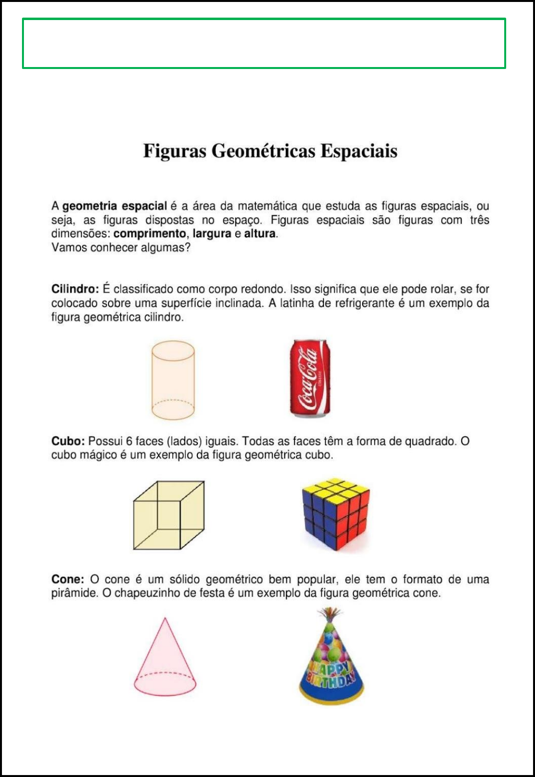 Componente Curricular: Matemática – II UNIDADE Unidade temática: Geometria NOME COMPLETO______________________________________________________________________ HOJE É DIA _______ DE _____________________________________DE 2021. Continuação Componente Curricular: Matemática – II UNIDADE Unidade temática: Geometria. NOME COMPLETO______________________________________________________________________ HOJE É DIA _______ DE _____________________________________DE 2021. Componente Curricular: Matemática – II UNIDADE Unidade temática: Geometria. Atividades: 2. Essa é muito fácil! Escreva o nome da figura geométrica que se parece com as imagens abaixo: NOME COMPLETO______________________________________________________________________ HOJE É DIA _______ DE _____________________________________DE 2021. Componente Curricular: Matemática – II UNIDADE NOME COMPLETO______________________________________________________________________ HOJE É DIA _______ DE _____________________________________DE 2021. Componente Curricular: Matemática – II UNIDADE Unidade temática: Geometria NOME COMPLETO______________________________________________________________________ HOJE É DIA _______ DE _____________________________________DE 2021. Componente Curricular: Matemática – II UNIDADE Unidade temática: Geometria Atividade: NOME COMPLETO______________________________________________________________________ HOJE É DIA _______ DE _____________________________________DE 2021. Componente Curricular: Matemática – II UNIDADE Unidade temática: Grandezas e Medidas MEDIDAS DE CAPACIDADE NOME COMPLETO______________________________________________________________________ HOJE É DIA _______ DE _____________________________________DE 2021. Componente Curricular: Matemática – II UNIDADE Unidade temática: Grandezas e Medidas MEDIDAS DE CAPACIDADE Atividades: Complete a atividade ao lado, com: L ( litros) ou ML ( mililitros) NOME COMPLETO______________________________________________________________________ HOJE É DIA _______ DE _____________________________________DE 2021. Componente Curricular: Matemática – II UNIDADE Unidade temática: Grandezas e Medidas MEDIDAS DE CAPACIDADE Atividades Matemáticas: 1. Resolva a questão abaixo: a) É possível comprar 3 caixas de sucos de sabores diferentes? Completa 1 litro? __________________________________________________________ __________________________________________________________ b) Se ela quiser levar apenas suco de maçã, quantas caixas ela deve comprar? __________________________________________________________ __________________________________________________________ c) Como você resolveria essa questão? Que sucos você compraria? __________________________________________________________ __________________________________________________________ NOME COMPLETO______________________________________________________________________ HOJE É DIA _______ DE _____________________________________DE 2021. Componente Curricular: Matemática – II UNIDADE Unidade temática: Grandezas e Medidas Medidas de Capacidade 1. Resolva o desafio: 2. Pesquise e cole figuras de recipientes que contenham medidas menores que o litro: NOME COMPLETO______________________________________________________________________ HOJE É DIA _______ DE _____________________________________DE 2021. Componente Curricular: Matemática – II UNIDADE Unidade temática: Grandezas e Medidas Medidas de Capacidade 1. Resolva o desafio do Aquário: a) Qual é a quantidade de água que a mãe colocou no aquário?______________ b) Como podemos encontrar a metade de alguma coisa? ______________________________________________________________ c) É possível encher o aquário usando apenas uma das jarras? ______________________________________________________________ d) Caso Rafael dispusesse de um balde com capacidade para 5 litros, como ele poderia encher o aquário? _______________________________________________________________ NOME COMPLETO______________________________________________________________________ HOJE É DIA _______ DE _____________________________________DE 2021. Componente Curricular: Matemática – II UNIDADE Unidade temática: Grandezas e Medidas Atividade com Medidas de Capacidade: Litro (L) e Mililitro (ml) 1. Complete as frases com a capacidade adequada L ou mL. a) Para encher uma piscina são necessários 1.000 _____. b) Em uma lanchonete são servidas vitaminas de frutas em copos de 300 _______. c) Em determinada receita são utilizados 100_____ de leite de coco. d) É comum encontrar sucos de caixinha de 200 ______. e) As caixas de leite geralmente vêm com 1 _______. f) Meio litro de suco corresponde a 500 ________. 2. Qual é a Unidade fundamental da medida de capacidade? ( ) Metro ( ) Grama ( ) Litro 1. Observe as imagens e ligue cada uma a sua capacidade: NOME COMPLETO______________________________________________________________________ HOJE É DIA _______ DE _____________________________________DE 2021. Medidas de capacidade: litro, mililitro A principal unidade usada para medir a quantidade de líquido que cabe em um recipiente é o litro (L). Para quantidades menores que 1 litro usamos o mililitro (ml). Um litro é composto por 1.000 ml, ou seja, mil mililitros foram 1 litro. 1 L = 1.000 ml Componente Curricular: Matemática – II UNIDADE Unidade temática: Grandezas e Medidas – Medidas de Capacidade ATIVIDADE: 1. Pedro é o pai do bebê Gabriel e foi encher a piscina. 2. Recorte e cole embalagens de produtos que usamos por LITRO e MILILITRO. A piscina do Gabriel tem: ( ) 4 litros ( ) 6 litros ( ) 10 litros NOME COMPLETO______________________________________________________________________ HOJE É DIA _______ DE _____________________________________DE 2021. Componente Curricular: Matemática – II UNIDADE Unidade temática: Grandezas e Medidas – Medidas de Capacidade ATIVIDADES: 1. Afonso e Melissa foram ao parque. Como estavam com sede