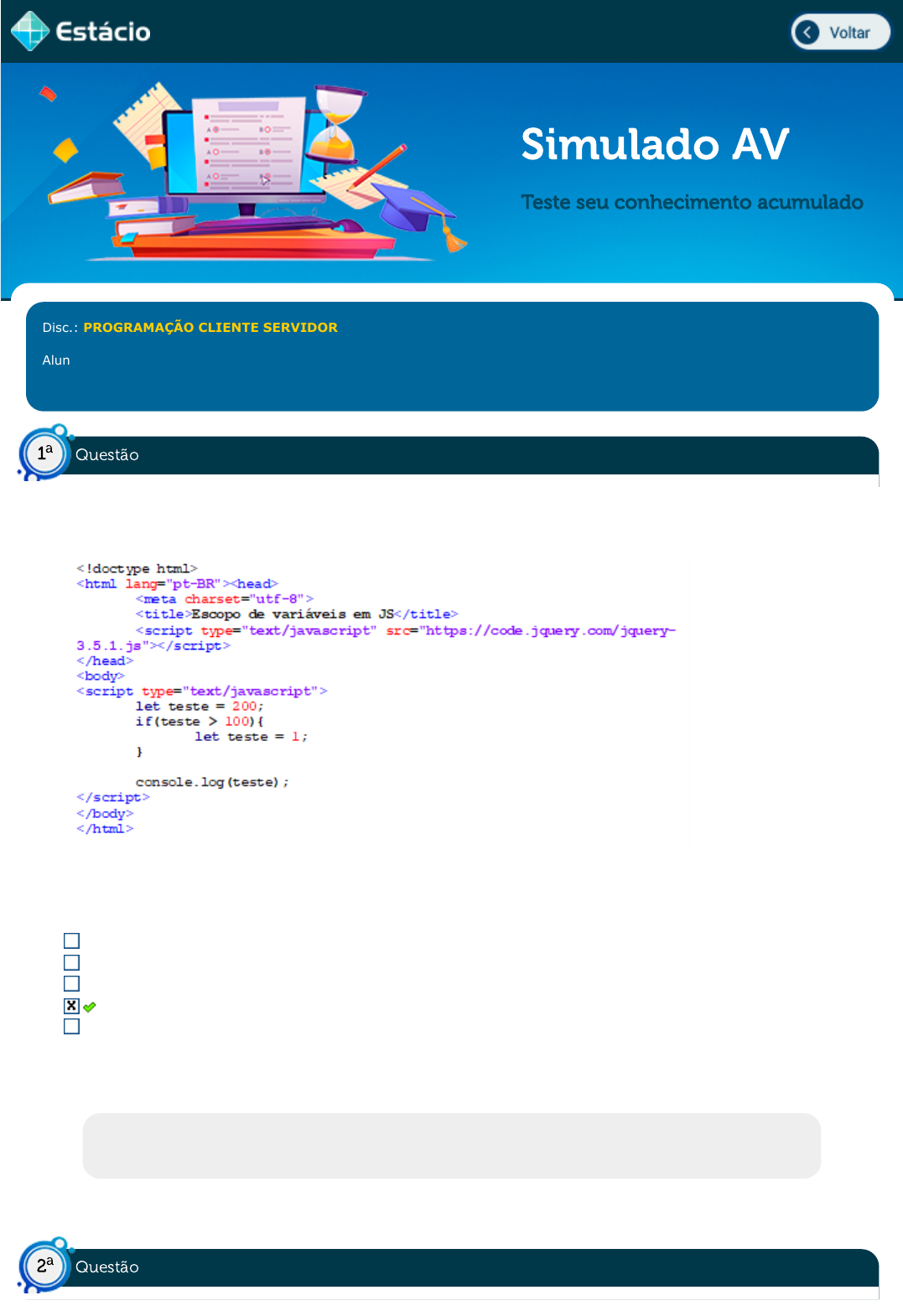 dentro de um bloco. Neste sentido, o que acontece quando executamos o código abaixo em um navegador