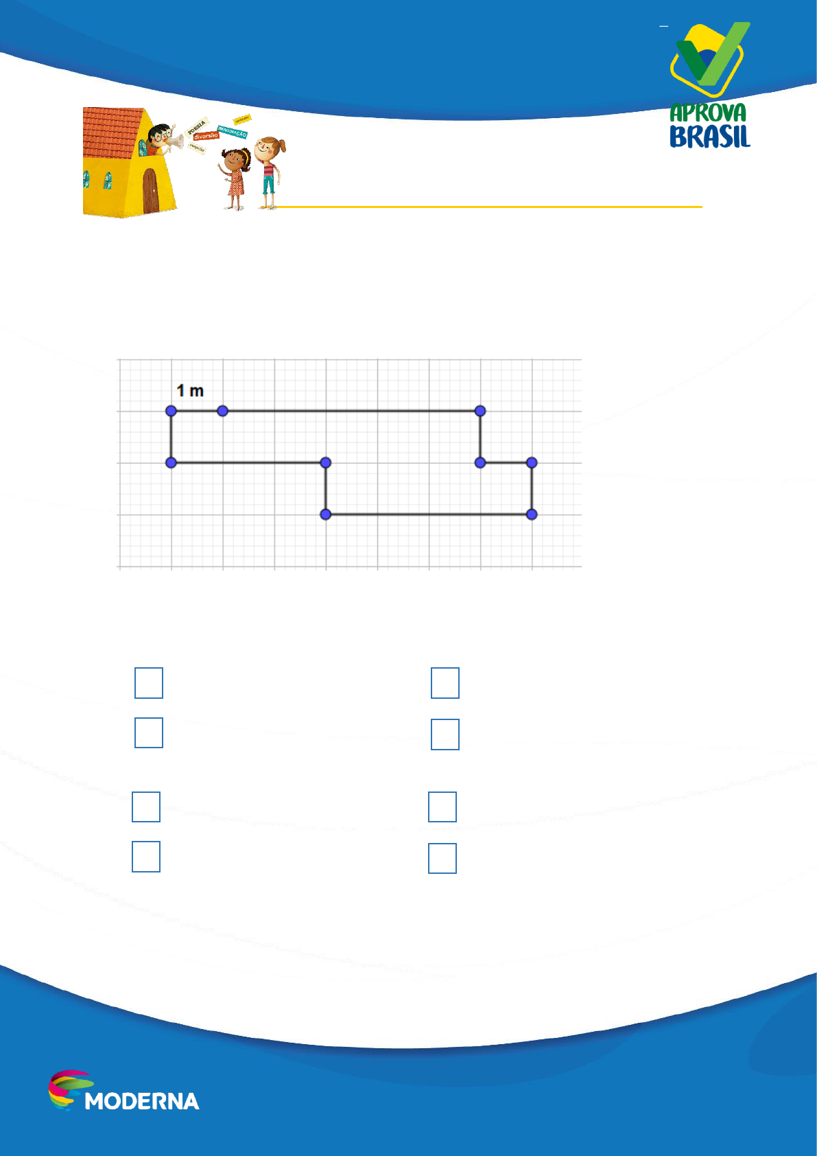 ESCOLA_________________________________________________________ DATA: ______________________________________TURMA:_____________ NOME: _________________________________________________________ ATIVIDADES COMPLEMENTARES 1) Um dos fatores que influenciam na qualidade de vida de uma pessoa é a prática de atividade física. Mariana, sabendo disso, resolveu caminhar todas as manhãs em uma pequena pista próxima a sua casa. A imagem abaixo representa a pista que ela utiliza para caminhar. Note que o lado de cada quadrado da malha tem medida 1 metro. a) De acordo com a figura acima, se Mariana der uma volta completa na pista, ela terá andado quantos metros? 17 16 18 19 b) Se Mariana andar 72 metros na pista, quantas voltas completas ela terá dado? 3 5 4 6 ESCOLA_________________________________________________________ DATA: ______________________________________TURMA:_____________ NOME: _________________________________________________________ DESAFIO 2) Na imagem abaixo são exibidos três polígonos, identificados pelos números romanos I, II e III. Eles estão inseridos em uma malha quadriculada cujo lado do quadrado mede 5 cm. Denomina-se perímetro de um polígono a soma das medidas de todos os seus lados, ou seja, é o comprimento da linha que forma o polígono. a) Dos três polígonos acima, qual deles tem o maior perímetro? a) I b) II c) III d) Os três polígonos possuem o mesmo perímetro. b) Em relação ao polígono I, quanto mede o seu perímetro? a) 10 cm b) 11 cm c) Mais que 10 cm. d) Menos que 10 cm.