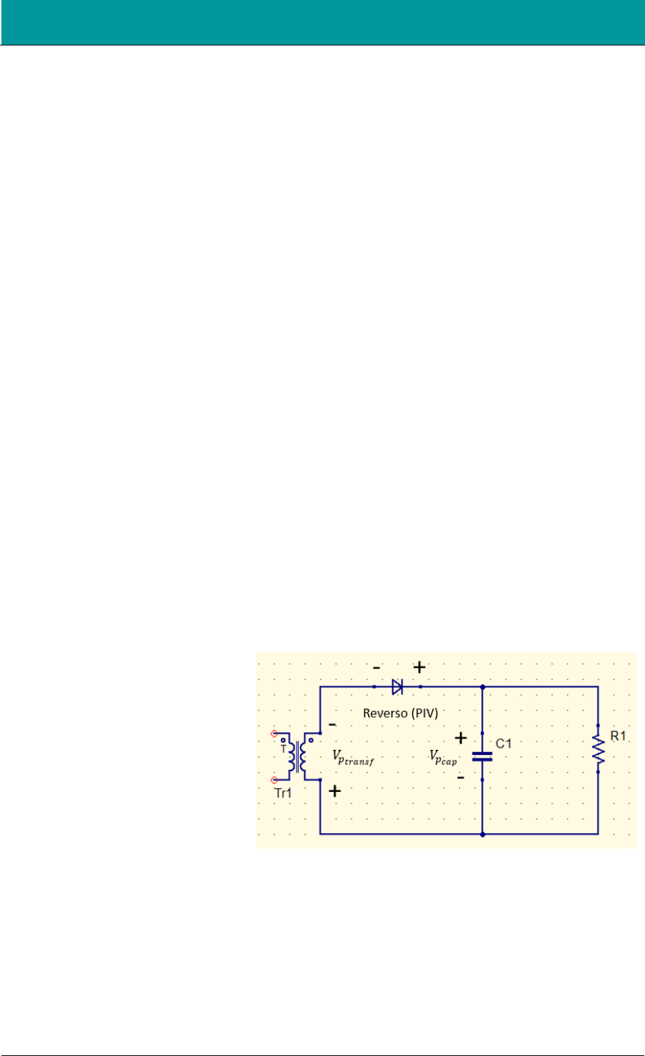 Eletrônica Analógica Tensão de Pico Inversa e Corrente de Surto (Teoria) – Rev0 www.portaleletronica.com.br 1 1. Tensão de pico inversa e corrente de surto A tensão de pico inversa (PIV) é a tensão máxima no diodo quando não está conduzindo no retificador. Está tensão deve ser menor do que a tensão de ruptura do diodo; caso contrário, o diodo será danificado. O pior caso ocorre com o filtro de entrada com capacitor. As folhas de dados dos fabricantes adotam vários símbolos diferentes para indicar a tensão reversa nominal de um diodo. Algumas vezes esses símbolos indicam condições de medição diferentes. Alguns dos símbolos na folha de dados para a tensão nominal reversa máxima são PIV, PRV, VB, VBR, VR, VRRM, VRWM e VR(max). 1.1. Retificador de meia onda com filtro de entrada com capacitor A Figura 4-18a mostra a parte crítica de um retificador de meia onda. Está e a parte do circuito que determina o valor da tensão reversa no diodo. O restánte do circuito não tem efeito e está omitido por questão de clareza. No pior caso, a tensão de pico do secundário e a tensão de pico negativa e o capacitor está totalmente carregado com a tensão de VP. Aplique a lei das tensões de Kirchhoff, e poderá ver imédiatamente que a tensão de pico inverso no diodo em corte e: +𝑉𝑝𝑡𝑟𝑎𝑛𝑠 − 𝑉𝐷𝑃𝐼𝑉 + 𝑉𝑝𝑐𝑎𝑝 = 0 𝑆𝑒𝑛𝑑𝑜: 𝑉𝑝𝑡𝑟𝑎𝑛𝑠 = 𝑉𝑝𝑐𝑎𝑝 = 𝑉𝑝 𝑉𝑝 − 𝑉𝐷𝑃𝐼𝑉 + 𝑉𝑝 = 0 𝑉𝐷𝑃𝐼𝑉 = 2 𝑉𝑝 Por exemplo, se a tensão de pico do secundário for de 15 V, a tensão de pico inversa será de 30 V. Enquanto a tensão de ruptura do diodo for maior que este valor, o diodo não queimara. http://www.portaleletronica.com.br/ Eletrônica Analógica Tensão de Pico Inversa e Corrente de Surto (Teoria) – Rev0 www.portaleletronica.com.br 2 1.2. Retificador de onda completa com tomada central e filtro de entrada com capacitor. A Figura mostra a parte essencial de um retificador de onda completa necessária para calcular a tensão de pico inversa. Novamente, a tensão no secundário e a tensão de pico negativo. Neste caso, o diodo debaixo funciona como um curto (chave fechada) e o diodo de cima está aberto. A lei de Kirchhoff informa que: +𝑉𝑝𝑡𝑟𝑎𝑛𝑠 − 𝑉𝐷𝑃𝐼𝑉 + 𝑉𝐷𝑐𝑢𝑟𝑡𝑜 = 0 𝑉𝑝𝑡𝑟𝑎𝑛𝑠 − 𝑉𝐷𝑃𝐼𝑉 + 0 = 0 𝑉𝑃𝐼𝑉 = 𝑉𝑝𝑡𝑟𝑎𝑛𝑠 1.3. Retificador em ponte com filtro de entrada capacitivo A Figura mostra uma parte do circuito retificador em ponte. Isso é tudo o que você precisa para calcular a tensão de pico inversa. Visto que o diodo superior está conduzindo e o diodo inferior está em corte, a tensão de pico inversa no diodo inferior e: −𝑉𝑝𝑡𝑟𝑎𝑛𝑠 + 𝑉𝐷𝑐𝑢𝑟𝑡𝑜 + 𝑉𝑃𝐼𝑉 = 0 −𝑉𝑝𝑡𝑟𝑎𝑛𝑠 + 0 + 𝑉𝐷𝑃𝐼𝑉 = 0 𝑉𝐷𝑃𝐼𝑉 = 𝑉𝑝 Outra vantagem do retificador em ponte e que ele tem a menor tensão de pico inversa para uma dada tensão na carga. Para produzir a mesma tensão na carga, o http://www.portaleletronica.com.br/ Eletrônica Analógica Tensão de Pico Inversa e Corrente de Surto (Teoria) – Rev0 www.portaleletronica.com.br 3 retificador de onda completa com tomada central necessitaria de uma tensão do secundário com o dobro de valor. 2. Resistor de surto Antes de ligar um circuito retificador com filtro de entrada com capacitor em uma rede de alimentação, o capacitor pode estár descarregado. No primeiro instante que for aplicada a energia elétrica da rede, o capacitor funciona como um curto--circuito. Portanto, a corrente inicial de carga do capacitor terá um valor alto. Tudo o que existe no caminho de carga do capacitor é a resistência do secundário do transformador e a resistência de corpo dos diodos. O primeiro fluxo intenso de corrente quando a energia e ligada e chamado de corrente de surto. Em geral os projetistas de fontes de alimentação escolhem um diodo com um valor de corrente nominal que suporta está corrente de surto. Uma solução para a corrente de surto e o valor do capacitor de filtro. Ocasionalmente, um projetista pode optar por usar um resistor de surto, em vez de escolher outro diodo. A Figura ilustra essa ideia. Um resistor de baixo valor ôhmico é inserido entre a ponte retificadora e o capacitor de filtro. Sem o resistor, a corrente de surto pode queimar os diodos. Incluindo um resistor de surto, o projetista reduz a corrente de surto a um nível seguro. Os resistores de surto não são muito utilizados e são mencionados apenas nos casos em que você encontra uma fonte de alimentação já projetada com eles. http://www.portaleletronica.com.br/ Eletrônica Analógica Tensão de Pico Inversa e Corrente de Surto (Teoria) – Rev0 www.portaleletronica.com.br 4 Exercício 2.1: Qual é o valor da tensão inversa de pico se a relação de espiras for de 8:1? Um diodo 1N4001 tem uma tensão de ruptura de 50 V. E seguro usá-lo neste circuito? Solução: A tensão 𝑉𝑝1 no primário é: 𝑉𝑝1 = 𝑉𝑟𝑚𝑠 0,707 ⇒ 𝑉𝑝1 = 120 0,707 ⇒ 𝑉𝑝1 = 169,7 𝑉 A tensão de pico no secundário e: 𝑉𝑝1 𝑉𝑝2 = 𝑁1 𝑁2 ⇒ 169,73 𝑉𝑝2 = 8 1 ⇒ 𝑉𝑝2 = 21,21 𝑉 A tensão de pico inversa e: 𝑉𝐷𝑃𝐼𝑉 = 𝑉𝑝2 ⇒ 𝑉𝐷𝑃𝐼𝑉 = 21,21 𝑉 O diodo 1N4001 é mais do que adequado, visto que a tensão inversa de pico é muito menor que a tensão de ruptura de 50 V. http://www.portaleletronica.com.br/ Eletrônica Analógica Tensão de Pico Inversa e Corrente de Surto (Teoria) – Rev0 www.portaleletronica.com.br 5 Exercício 2.2: Usando a Figura do exercício 2.1, mude a relação de espiras para 2:1. Que diodo da série 1N4000 você usaria? Solução: ??? 3. Cálculo do valor do fusível Quando estiver verificando defeitos, pode ser preciso calcular a corrente n