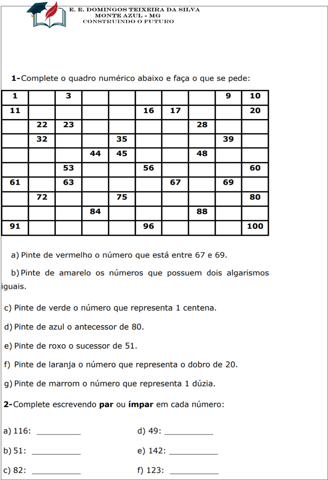 ALUNO (A): _______________________________________________________________________________________________ PROFESSORA:_______________________________ DATA:_____________/_____________/__________________________ DATA DE NASCIMENTO:_______/________/_________________ ESCOLARIDADE:____________________________________ ALUNO (A): _______________________________________________________________________________________________ PROFESSORA:_______________________________ DATA:_____________/_____________/__________________________ DATA DE NASCIMENTO:_______/________/_________________ ESCOLARIDADE:____________________________________ 1-Escreva em forma de algarismos. ______________________________________________________________________________________________________________ 2-Observe os números abaixo e faça o que se pede: ALUNO (A): _______________________________________________________________________________________________ PROFESSORA:_______________________________ DATA:_____________/_____________/__________________________ DATA DE NASCIMENTO:_______/________/_________________ ESCOLARIDADE:____________________________________ 1-Observe abaixo as despesas do mês de agosto da família de Amanda e responda.
