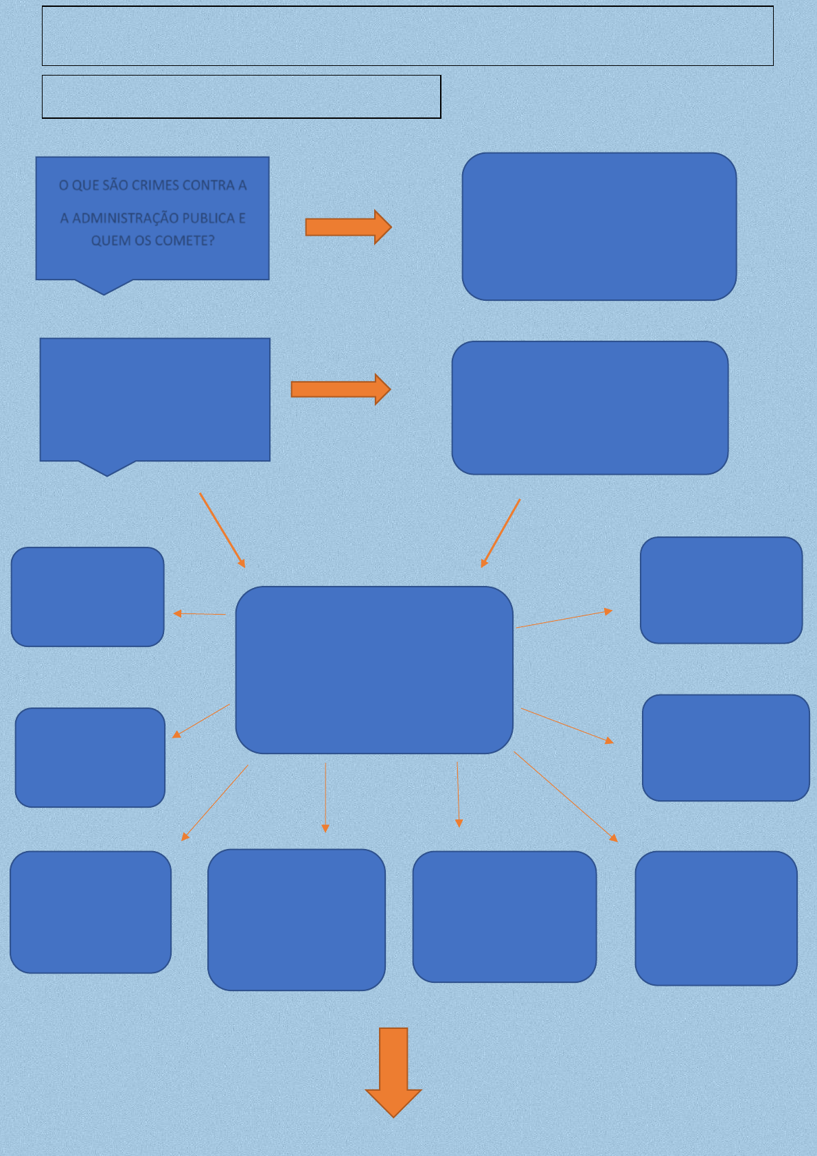 LUCAS MARTINS MARQUES RA-201951583329 MAPA MENTAL- CRIMES CONTRA A ADMINISTRAÇÃO PUBLICA PRATICADOS POR FUNCIONARIOS PUBLICOS O QUE SÃO CRIMES CONTRA A A ADMINISTRAÇÃO PUBLICA E QUEM OS COMETE? Crimes contra a administração pública, É o grupo de penal que corresponde os arts. 312 a 359 do CP. Neste caso, cometidos por funcionários públicos. QUEM SÃO OS FUNCIONARIOS PUBLICOS ? “Considera-se funcionário publico, para os efeitos penais, quem, embora transitoriamente ou sem remuneração, exerce cargo, emprego ou função publica. (art. 327 CP) CRIMES COMETIDOS CONTRA A ADMINISTRAÇÃO PUBLICA POR FUNCIONARIO PUBLICO INSERÇÃO DE DADOS FALSOS EM SISTEMA DE INFORMAÇÃO: ART 313-A CP MODIFICAÇÃO OU ALTERAÇÃO NÃO AUTORIZADA DE SISTEMA DE INFORMAÇÕES: ART 313-B CP EXTRAVIO, SONEGAÇÃO OU INUTILIZAÇÃ DE DOCUMENTO ART 314 CP EMPREGO IRREGULAR DE VERBAS ART 315 CP CORRUPÇÃO PASSIVA ART 317 CONCUSSÃO ART 316 PECULATO: ART 312 CP PECULATO MEDIANTE ERRO DE OUTREM: ART 313 CP MAPA MENTAL- CRIMES CONTRA A ADMINISTRAÇÃO PUBLICA PRATICADOS POR FUNCIONARIOS PUBLICOS PROCEDIMENTO GERAL Oferecimento da denúncia ou queixa. De acordo com os ritos do art. 41 CPP. Art. 513 caso seja não seja possível. Notificação da Denuncia (15 dias) art. 514 Apreciação em relação ao recebimento ou rejeição da inicial (art. 516 e 396 CPP) Prosseguimento Da causa de acordo com o procedimento ordinário (art. 518 CPP) PROCEDIMENTO ESPECIAL EM CASO DE FORO PRIVILEGIADO AS HIPOTESES DO ART.514 NESTES CASOS SERÁ APLICADO AS HIPOTESES DO ART. 1 a 12 da Lei 8038 de 1990 https://www.jusbrasil.com.br/topicos/11267452/artigo-1-da-lei-n-8038-de-28-de-maio-de-1990 https://www.jusbrasil.com.br/topicos/11266464/artigo-12-da-lei-n-8038-de-28-de-maio-de-1990 https://www.jusbrasil.com.br/legislacao/103460/lei-dos-recursos-extraordinario-e-especial-lei-8038-90 ~ MAPA MENTAL- CRIMES CONTRA A HONRA O QUE SÃO CRIMES CONTRA HONRA E QUAIS SÃO ELES? SÃO CRIMES QUE OFENDEM A HONRA SUBJETIVA OU OBJETIVA, AFETANDO A DIGNIDADE PESSOAL OU PROFISSIONAL, DESRESPEITANDO ASSIM O DIRETO DE RESPEITO PESSOAL. OS TIPOS SÃO TRES: CALUNIA, DIFAMAÇÃO E INJURIA INJURIA, DIFAMAÇÃO E CALUNIA CALUNIA Caluniar alguém, imputando-lhe falsamente fato definido como crime ART 138 CP DIFAMAÇÃO Difamar alguém, imputando- lhe fato ofensivo à sua reputação ART.139 CP INJURIA Injuriar alguém, ofendendo lhe a dignidade ou o decoro ART.140 CP LUCAS MARTINS MARQUES RA-201951583329. MAPA MENTAL- CRIMES CONTRA A HONRA MAPA MENTAL- CRIMES CONTRA A HONRA PROCEDIMENTO COMUM SUMARÍSSIMO PENA NÃO SUPERIOR A 2 ANOS CITAÇÃO DO RÉU FEITA PELO JUIZ, CASO NÃO LOCALIZADO DEVER-SE-Á ENCAMINHAR AS PEÇAS DO PROCESSO A JUNTA COMPETENTE CASO DE CONCILIAÇÃO BEM SUCEDIDA AS PEÇAS DA QUEIXA-CRIME SERAM ARQUIVADAS CASO NÃO OCORRA CONCILIAÇÃO, O CASO SERÁ LEVADO AO JUIZO OBSERVADOS OS PRESSUPOSTOS DE ADMISSIBILIDADE DENUNCIA RECEBIDA SERÁ ABERTA A FASE DE OUVIR AS PARTES DO PROCESSO POSSIBILIDADE DE SURSI, ONDE O PROCESSO PODE SER SUSPENSO COMUM SUMÁRIO PENA QUE NÃO ULTRAPASSE 4 ANOS DENUNCIA OFERECIMENTO DA DENUNCIA QUE PODE SER ACEITA OU REJEITADA (ART.395 CPP) HIPOTESE DE Absolvição sumária (ART 397 CPP) CITAÇÃO OCORRERÁ A CITAÇÃO DA PARTE DE ACORDO COM OS DISPOSITIVOS DA LEI Audiência de Instrução e Julgamento HAVERÁ PRODUÇÃO DE PROVAS E DEBATES E APÓS ISSO O JUIZ TERÁ 30 DIAS PARA CONCLUIR O PROCESSO RELATORIO TODA AUDIENCIA SERÁ RELATADA EM UM TERMO QUE SERÁ ASSINADO PELO JUIZ, PARTES E REPRESENTANTE DO MP COMUM ORDINARIO PENA SUPERIOR A 4 ANOS DENUNCIA RECEBIMENTO DA DENUNCIA OBSERVADOS OS PRESSUPOSTOS DE ADMISSIBILIDADE CITAÇÃO CITAÇÃO REAL OU FICTA DE ACORDO COM OS ART´S. 227 A 229 CPP DEFESA DO RÉU TRATA-SE DA FASE ONDE O RÉU FARÁ USO DO SEU DIREITO DE DEFESA E AO CONTRADITORIO Audiência de Instrução e Julgamento SERAM OUVIDAS POR VINTE MIN TANTO A ACUSAÇÃO COMO A DEFESA SENTENÇA SERÁ A FASE ONDE O JUIZ IRÁ DECIDIR SOBRE A CONDENAÇÃO OU ABSOLVIÇÃO