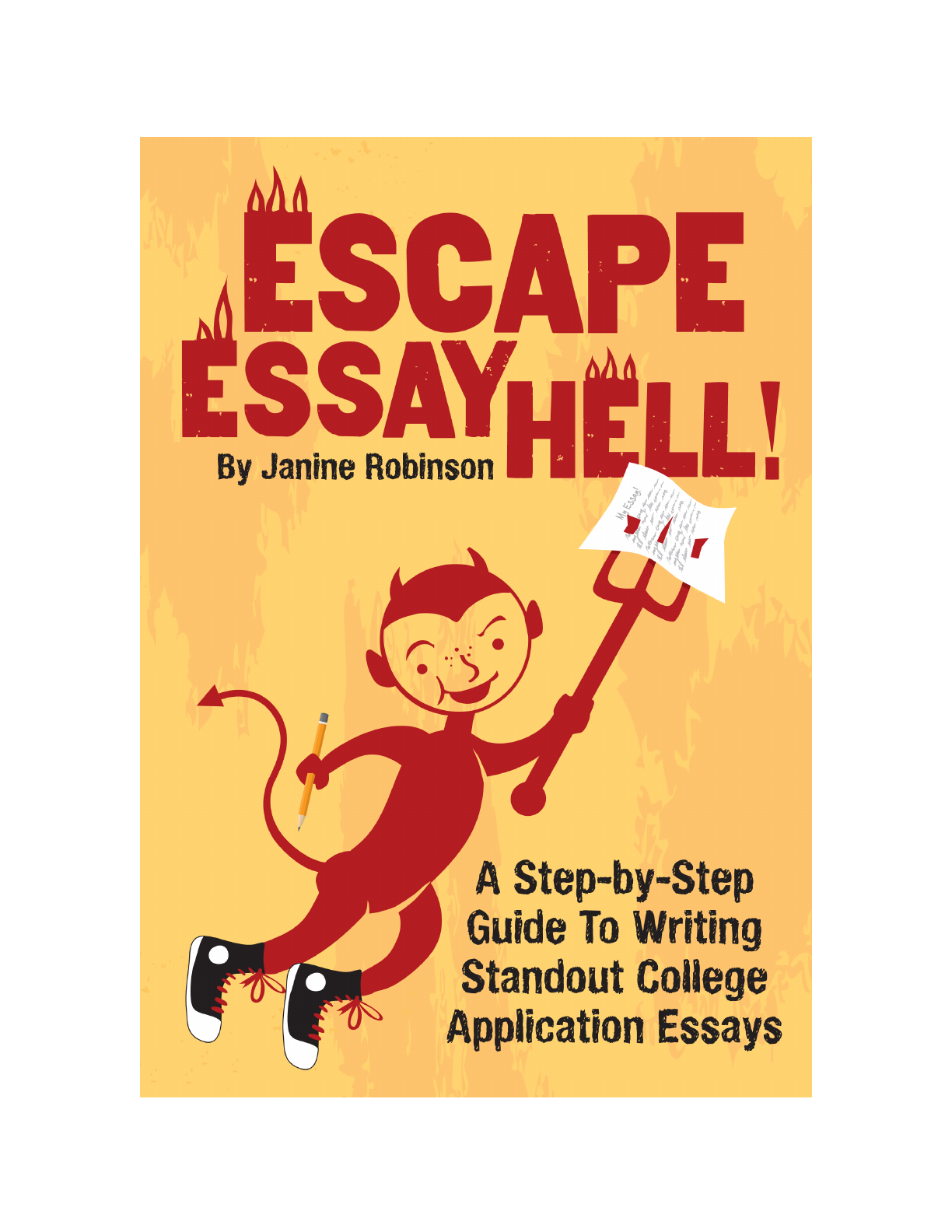 Escape Essay Hell! A Step-by-Step Guide To Writing Standout College Application Essays By Janine Robinson Copyright @ 2013 Janine Robinson www.EssayHell.com All rights reserved. Cover and Graphics by Russell Pierce TABLE OF CONTENTS Introduction Step One: Find Your Defining Qualities Step Two: Search for “A Time” Step Three: Choose the Right Story Step Four: Fire It Up Step Five: Tell Your Story Step Six: Add Structure Step Seven: Explain What You Learned Step Eight: Focus Your Point Step Nine: Wrap It Up Step Ten: Make It Perfect Bonus Chapter: Add a Title About the Author Introduction (Return to Top) It sounds like an impossible task: Write an essay that reveals exactly who you are, makes you sound brilliant and humble at the same time, and stands out from the other gazillion applicants. Also, you must tell your unique, compelling story using masterful writing skills no one ever taught you. And don’t forget to fit it all in under the word count. Welcome to Essay Hell. Don’t worry. Everyone is in the same boat. Most students dread them. Some stall as long as possible. Others start early. A few freak out. The trick is to stay calm, and make a plan. Essays that are supposed to be about you—called “personal statements”--have been around forever. Most are written in a first-person, storytelling style that’s called narrative writing. Many books on the market can teach you all about the art of narrative writing and college application essays. But who has the time? The good news is there is a simple formula you can follow to write a standout, slice-of-life narrative essay. And it doesn’t have to take weeks and months. I call it the Show and Tell approach. It’s simple to learn and follow, and even easy to expand, change and take in many different directions, if you want. Escape Essay Hell! will help you find a terrific topic—which is half the battle--and then step you through the process of finding a memorable story that you can use to Show and Tell about yourself. By following my 10 easy steps, you will be out of Essay Hell in no time! This Guide Works for Most Application Essays The 10 steps in Escape Essay Hell! are designed to help you write narrative essays for almost any prompt or question on a college, post-college or scholarship application that requires you to write about yourself. The wording of the prompts (or essay questions) can vary, but you can use this Show and Tell approach if they want you to: tell about yourself, an experience, accomplishment, incident, talent, story, a “time,” event, life experience, obstacle, contribution, failure, achievement, family circumstance, etc. Look for key phrases, such as, “We want to learn about you” or “Write an essay that conveys who you are.” What exactly is a narrative essay? It’s when you tell a true, real-life story that happened to you, but reads like fiction. This storytelling style is similar to something you would read in a novel, memoir or short story. Unlike formal, academic essays, these can be engaging and fun to read—which is exactly what you want in a college application essay. Here are common prompts that this guide can help you respond to or answer: 1. The Common Application prompts. Five new prompts were introduced for 2013-14. This guide works best for answering the first two questions, although it could be tweaked for any of them. 2. The University of California Application: This guide is perfect to help you answer Prompt #2: "Tell us about a personal quality, talent, accomplishment, contribution or experience that is important to you.” 3. Many Other State Universities: Although the prompts can change from year to year, many public universities that do not use The Common App ask for essays where you write about yourself. 4. Supplemental Essays (“Supps”): Since The Common App dropped its only supplemental essay requirement in 2013, many of its member schools have added their own additional prompts, or supplemental essay requirements. Many are looking for personal statement type of essays to learn more about you. 5. Other Types of Application Essays: This guide is perfect if you need to write a personal statement (or about yourself) to apply for a scholarship, a special program (like a film, art, cooking or music school) or graduate school (law, medical, business, etc.). 6. Applications Where It’s Not Helpful: This guide is not as useful if you are answering a prompt or question on a college application that has a specific question it wants you to answer. For example, if it gives you a famous quote to respond to, or asks why you want to attend a certain college, or why you have chosen a certain major or field of study. Although the general Show and Tell approach can be applied to many questions, you would need to shape your essay to make sure it addressed the details of the prompts. Why Trust Me? For the last six years, I have tutored college-bound students and other clients on how to write their application essays. Most of my students have been bright, high achievers, and yet many struggled to understand how to write their college essays. The main reason is that English classes rarely teach how to write in a narrative style. As a former journalist, professional writer and English teacher, I help students brainstorm strong topic ideas, and then counsel them on how to write personal, slice-of-life narratives that reveal their personalities and character. Although I cannot take credit for their success, most of my students have been accepted to their top choice colleges. Most college admissions “experts” will give you lots of advice on how to write a great essay. They say things like, “Tell a story,” or “Make sure your essay is about YOU,” or “Be an individual.” And they are correct. But no one ever explains exactly how to do that. Until now! This guide is written as though I’m sitting next to you as your personal writing coach, directing and cheering you through th