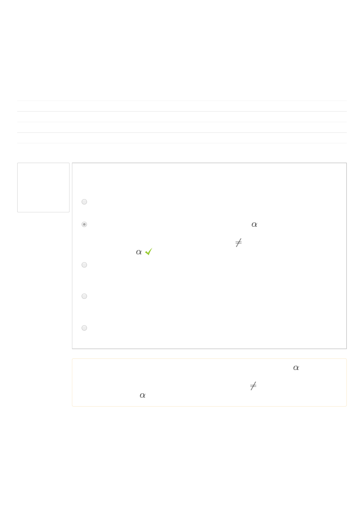 Questão 1 Correto Atingiu 1,00 de 1,00 Iniciado em sexta, 21 Jul 2017, 23:34 Estado Finalizada Concluída em sábado, 22 Jul 2017, 00:14 Tempo empregado 40 minutos 2 segundos Avaliar 6,00 de um máximo de 10,00(60%) Baseado na teoria de teste de hipóteses, pode-se dizer que Escolha uma: a. o teste t, utilizado na comparação de duas médias, é sempre um teste bilateral, pois o objetivo é avaliar se a diferença entre as duas médias é significativa. b. basta calcular o intervalo de confiança para μ com (1- )% de confiança e verificar se este intervalo contém ou não o valor zero para verificar se a hipótese nula do teste para uma média (H0:μ=0 contra H1:μ 0) deve ser rejeitada ao nível de significância . c. a estatística t de student com n-2 graus de liberdade (em que n é o tamanho da amostra) é a indicada para o teste de hipóteses para proporções no caso da variância da proporção populacional ser desconhecida. d. a probabilidade do erro to tipo II é calculada pela probabilidade de não se rejeitar a hipótese nula, quando esta for verdadeira, e a probabilidade do erro do tipo I é calculada pela probabilidade de rejeitar a hipótese nula quando esta for falsa. e. o valor-P de um testes de hipóteses bilateral ou bicaudal é igual a duas vezes a probabilidade da região interna delimitada pelo valor crítico do teste. A resposta correta é: basta calcular o intervalo de confiança para μ com (1- )% de confiança e verificar se este intervalo contém ou não o valor zero para verificar se a hipótese nula do teste para uma média (H0:μ=0 contra H1:μ 0) deve ser rejeitada ao nível de significância .. Página inicial ► Graduação ► AGL02612 - U (17/1) ► 15/07 ► SIMULADO - PROVA 3 https://moodle.ufrgs.br/filter/tex/displaytex.php?texexp=%5Calpha https://moodle.ufrgs.br/filter/tex/displaytex.php?texexp=%5Cneq https://moodle.ufrgs.br/filter/tex/displaytex.php?texexp=%5Calpha https://moodle.ufrgs.br/filter/tex/displaytex.php?texexp=%5Calpha https://moodle.ufrgs.br/filter/tex/displaytex.php?texexp=%5Cneq https://moodle.ufrgs.br/filter/tex/displaytex.php?texexp=%5Calpha https://moodle.ufrgs.br/ https://moodle.ufrgs.br/course/index.php?categoryid=2 https://moodle.ufrgs.br/course/view.php?id=43420 https://moodle.ufrgs.br/mod/quiz/view.php?id=1133185 Questão 2 Correto Atingiu 1,00 de 1,00 Uma variável aleatória X tem distribuição normal com média µ e desvio padrão σ desconhecido. Desejando-se testar H : µ = 2 contra H : µ > 2 tomou-se uma amostra aleatória de 4 observações que forneceu os valores: 4, 2, 2 e 2. A um nível de significância de 10%, no teste mais poderoso, a hipótese H será rejeitada se a estatística média amostral , apropriada ao teste, for maior ou igual a Se Z tem distribuição normal padrão, então: P(Z > 1,64) = 0,05; P(Z > 2) = 0,02; P(0 < Z < 2,4) = 0,49; P(0 < Z < 0,68) = 0,25. Se t tem distribuição de Student com 3 graus de liberdade P(t > 1,638) = 0,10 Se t tem distribuição de Student com 4 graus de liberdade P(t > 1,533) = 0,10 Escolha uma: a. 2,819 b. 2,819 c. 2,520 d. 2,673 e. 2,541 Sua resposta está correta. A resposta correta é: 2,819. 0 1 0 Questão 3 Incorreto Atingiu 0,00 de 1,00 Questão 4 Correto Atingiu 1,00 de 1,00 Uma instituição afirma que o custo médio para a realização de certa obra é igual ou inferior a R$ 850,00/m . Para avaliar essa afirmação, foi realizado um teste estatístico cujas hipótese nula e hipótese alternativa são, respectivamente, H : µ ≤ R$ 850,00/m e H : µ > R$ 850,00/m . Considere que a distribuição dos custos por metro quadrado possa ser considerada como normal com média mi e desvio-padrão de R$ 300,00/m . A partir de uma amostra aleatória de tamanho 25, a estatística do teste para a média foi igual a 2,1. O valor p do teste foi igual a 0,018. Com base nessas informações, julgue os itens subsequentes. O valor p do teste é inferior a 0,02 e, portanto, a hipótese nula é rejeitada caso seja fixado um nível de significância superior a 2%. Escolha uma opção: Verdadeiro Falso A resposta correta é 'Verdadeiro'. Um fabricante faz dois tipos de lâmpadas. Seja X a variável aleatória que representa o tempo de vida do primeiro tipo e Y a variável aleatória que representa o tempo de vida do segundo tipo. Sabe-se que X e Y são independentes e que os respectivos desvios padrões populacionais dos dois tipos são iguais a 250 horas, cada um. Um comprador testou 36 lâmpadas do tipo X e 64 lâmpadas do tipo Y, obtendo 1.200 horas e 1.208 horas de duração média para o tipo X e o tipo Y, respectivamente. Foram formuladas as seguintes hipóteses: H : µ = µ (hipóteses nula, isto é, a vida média dos tipos X e Y é a mesma) e H : µ ≠ µ (hipótese alternativa). Considerou-se para o teste que o tamanho das populações é infinito, além de serem normalmente distribuídas e que na distribuição normal padrão (Z) a probabilidade P( Z ≥ z ) = α( 0 < α < 0,5 ). Então, pode-se afirmar que a um nível de significância de 2α Escolha uma: a. H não será rejeitada para -4 < z < 4. b. H será rejeitada para z > 4. c. H será rejeitada para qualquer valor de µ, devido aos valores obtidos pelas amostras. d. H não será rejeitada para z > 3. e. H será rejeitada para z = 4. Sua resposta está correta. A resposta correta é: H não será rejeitada para -4 < z < 4.. 2 0 2 1 2 2 0 X Y 1 X Y α 0 α 0 α 0 0 α 0 α 0 α Questão 5 Correto Atingiu 1,00 de 1,00 Deseja-se testar a hipótese µ se a altura média dos trabalhadores de um determinado ramo de atividade X é igual à altura média µ dos trabalhadores de outro ramo de atividade Y, aos níveis de 1% e 5%. Para isto, considerou-se que as alturas dos trabalhadores de X e Y são normalmente distribuídas com as populações de tamanho infinito. O desvio padrão da população X é igual a 3 cm e o desvio padrão de Y igual a 4 cm. Uma amostra aleatória de 2.500 trabalhadores de X e uma amostra alea
