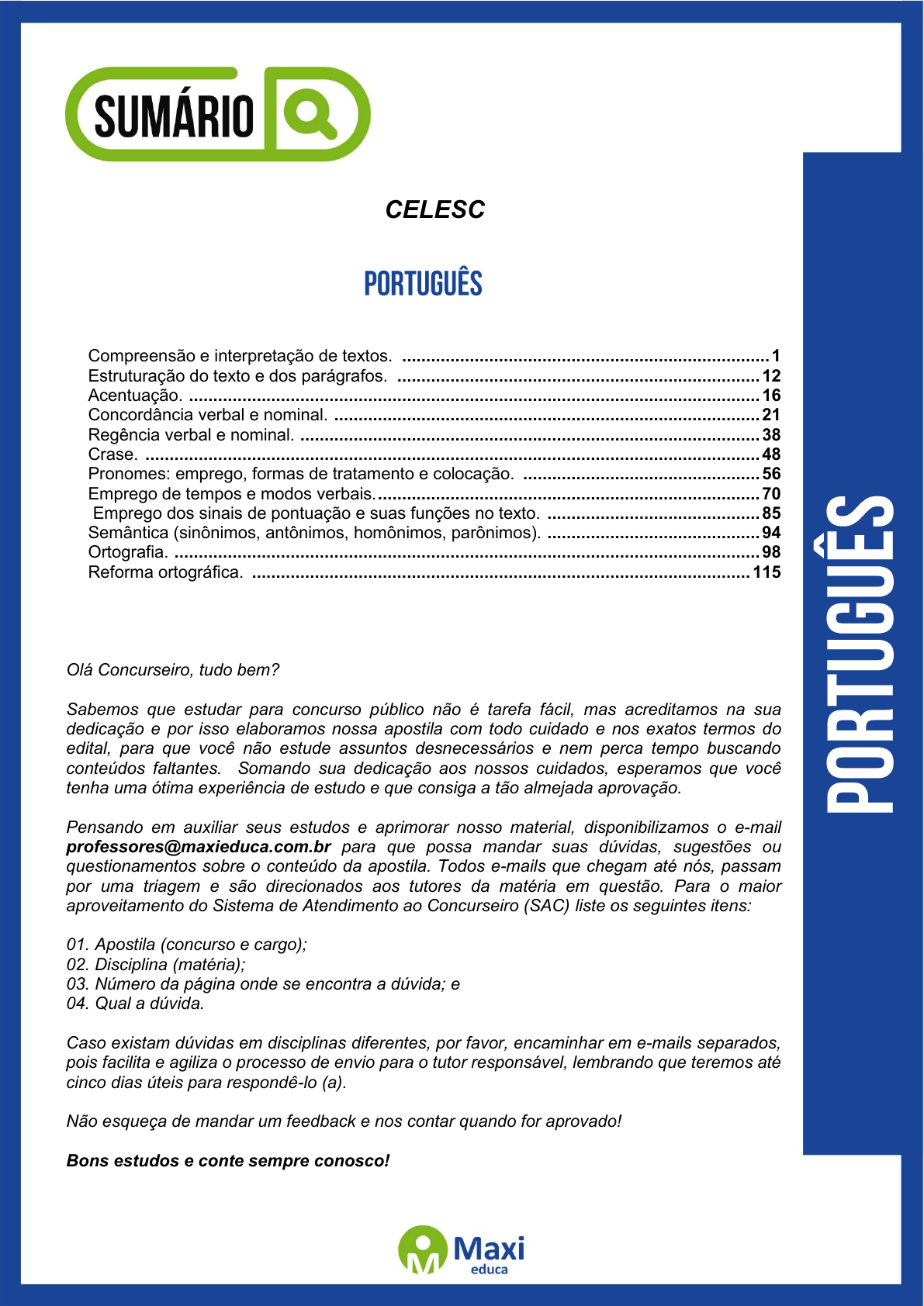 Pensando em auxiliar seus estudos e aprimorar nosso material, disponibilizamos o e-mail