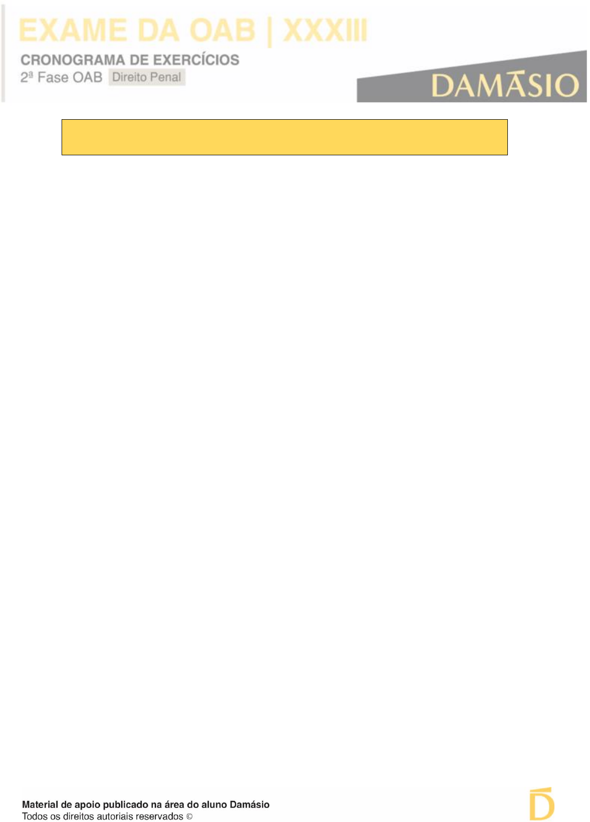 1) Qual o rito para processo e julgamento do crime de porte de drogas para consumo pessoal? Rito da Lei 9.099/95, conforme previsão do art. 48, §1º, da Lei 11.343/06. 2) A conduta de fornecer droga, eventualmente, a pessoa de suas relações para consumo compartilhado se enquadra em que tipo penal? Tal conduta se enquadra no tipo previsto no art. 33, §3º, da Lei 11.343/06, denominado como uso conjunto ou compartilhado. 3) Em que consiste o crime de associação para o tráfico? Previsto no art. 35 da Lei 11.343/06, o crime de associação para o tráfico consiste em uma associação de duas ou mais pessoas para a prática dos crimes de tráfico de drogas (art. 33, caput e §1º) e posse de instrumentos utilizados para o preparo de drogas. 4) Quais são os requisitos para aplicação da causa de diminuição prevista no artigo 33, §4º, da Lei 11.343/06? Basta o preenchimento de um deles para que a minorante seja aplicada? Os requisitos para aplicação da referida causa de diminuição são: primariedade e bons antecedentes, não se dedicar a atividades criminosas e nem integrar organização criminosa. Devem ser preenchidos cumulativamente. 5) Pode o juiz, ao condenar o réu pela prática do delito tipificado no artigo 33 da Lei 11.343/06, efetuar a dosimetria da pena tanto com base nessa Lei, como na Lei 6.368/76 (anterior Lei de Drogas), por ser a combinação mais benéfica ao condenado? Não, a combinação de leis é vedada pela Súmula 501 do STJ. 6) É possível a imposição de regime inicial diverso do fechado na condenação pelo crime de tráfico? Sim, hoje o entendimento que prevalece no âmbito do Supremo Tribunal Federal é no sentido de que é possível a aplicação de regime inicial de cumprimento de pena diverso do fechado, inclusive para crimes equiparados a hediondos, como é o caso do tráfico, pois a previsão do Art. 2º, §1º, da Lei nº 8.072/90 é inconstitucional, por violar o princípio da individualização da pena. 7) Quanto tempo pode durar o inquérito policial no rito especial da Lei de Drogas? 30 dias no caso de réu preso e 90 no caso de réu solto (art. 51, caput da Lei 11.343/06). Os referidos prazos podem ser duplicados pelo magistrado, a pedido do delegado (art. 51, parágrafo único, da Lei 11.343/06). 8) Descreva as fases do rito previsto na lei de drogas. Oferecida a denúncia, a defesa será notificada para apresentar defesa preliminar em 10 dias (art. 55, caput da Lei 11.343/06). A defesa preliminar tem dois objetivos: alegar toda matéria de defesa, buscando o não recebimento da denúncia, inclusive com a juntada de documentos; requerer produção de provas, no caso de recebida a denúncia (art. 55, §1º, da Lei 11.343/06). Estudo Dirigido 03_Gabarito Poderão ser arroladas até 5 testemunhas (art. 54, III, e 55, §4º, da Lei 11.343/06). Se entender necessário, pode determinar a apresentação do preso ou outras diligências, no prazo de 10 dias (art. 55, §5º, da Lei 11.343/06). Apresentada a defesa preliminar, o juiz decide em 5 dias (art. 55, §4º, da Lei 11. 343/06). Se entender necessário, pode determinar a apresentação do preso ou outras diligências, no prazo de 10 dias (art. 55, §5º, da Lei 11.343/06). Recebida a denúncia, será citado o réu e designada audiência e instrução e julgamento (arts. 56 e 57). Se o juiz entender necessário, ante a complexidade da causa, poderá ordenar que os autos lhe sejam conclusos, devendo proferir sentença em 10 dias (art. 58, caput da Lei 11.343/06). OBS1: de acordo com o artigo 57 da Lei, o interrogatório seria o primeiro ato da instrução. Todavia, o STF entendeu que o interrogatório deve ser o último ato da instrução em todos os procedimentos, em respeito à ampla defesa. OBS2: os debates orais podem ser convertidos em memoriais escritos, por aplicação subsidiária do rito ordinário, nos termos do artigo 394, §5º, do CPP. 9) É possível o oferecimento da denúncia sem o laudo de constatação no caso de crime de tráfico de drogas? Não, o laudo de constatação da natureza e quantidade da droga é requisito indispensável conforme disposição do art. 50, §1º, da Lei 11.343/06. 10) Qual a consequência da falta de concessão de prazo para a defesa preliminar no rito especial da Lei de Drogas? Nulidade por cerceamento de defesa, com fundamento no artigo 564, inciso IV, do Código de Processo Penal, já que tal peça tem previsão no artigo 55 da Lei de Drogas. 11) A conduta de cultivar em pequena quantidade planta destinada à preparação de droga para consumo pessoal se enquadra em que tipo penal? Tal conduta se enquadra no tipo de porte de drogas para uso pessoal, previsto no art. 28, conforme prevê o parágrafo primeiro desse mesmo artigo. 12) Quais as penas aplicáveis ao delito de porte de drogas para uso pessoal? As penas aplicáveis ao delito de porte de drogas para uso pessoal estão previstas no art. 28 da Lei 11.343/06 e consistem em: advertência sobre os efeitos das drogas; prestação de serviços à comunidade; medida educativa de comparecimento a programa ou curso educativo. De acordo com o art. 27 da já referida lei, podem ser aplicadas isolada ou cumulativamente.