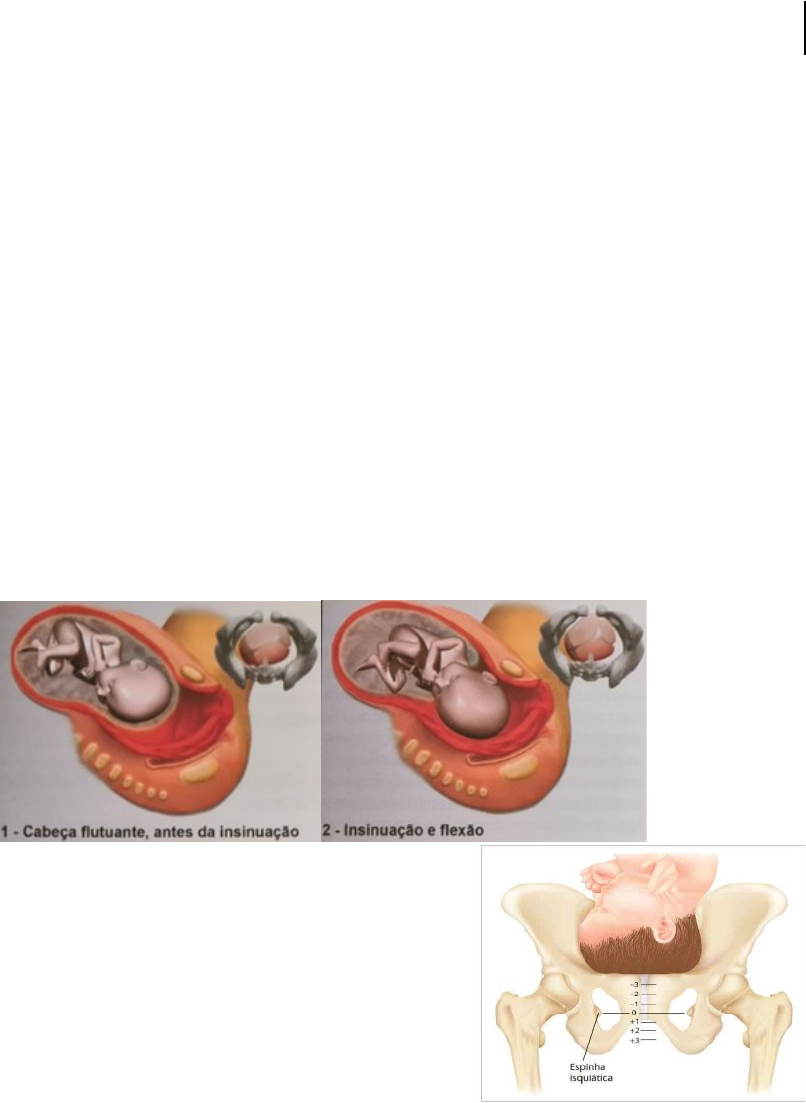 SMI II – OBSTETRÍCIA MECANISMO DE PARTO 1 Mecanismo de parto – apresentação cefálica fletida · Insinuação · Descida · Rotação interna da cabeça · Desprendimento da cabeça · Rotação externa da cabeça · Desprendimento das espáduas 1. INSINUAÇÃO · Quando o maior diâmetro perpendicular à linha de orientação passa pelo estreito superior da bacia passagem do diâmetro biparietal pelo plano do estreito superior; · Como avaliar na prática? Quando o occipício atinge o plano das espinhas isquiáticas, ou seja, o plano zero de DeLee. · A insinuação da cabeça possui dois movimentos: orientação e flexão. Orientação acomoda o diâmetro OF ao diâmetro mais favorável do estreito superior da pelve materna. A flexão se dá pela contração do útero pressionando o fundo uterino sobre a nádega e a coluna vertebral do feto. O movimento complementar que possibilita a diminuição dos diâmetros da apresentação para insinuação é a FLEXÃO. · A avaliação da altura da apresentação também é feita pelo método de DeLee; · Considera-se plano zero quando o ponto mais baixo da apresentação está no plano das espinhas isquiáticas e, em centímetros, -1, -2, -3, quando acima, e +1, +2 e +3, se estiver abaixo desse plano. 2. DESCIDA · Passagem do polo cefálico do estreito superior para o estreito inferior da pelve materna; · Pode ser de duas formas: · Sinclítica: quando os dois parietais descem de forma simultânea; · Assinclítica: quando acontecem movimentos de inclinação lateral (movimentos em “badalo de sino”) de forma que um dos parietais desce antes que o outro ASSINCLITISMO. 2.1 Assinclitismo · Pode ser anterior ou posterior; · Assinclitismo anterior: desce primeiro o parietal anterior, logo, a sutura sagital fica mais próxima do sacro chamado de “obliquidade de Nägele”; · Assinclitismo posterior: desce primeiro o parietal posterior, logo, a sutura sagital fica mais próxima do pube chamado de “obliquidade de Litzman”; · Normalmente, o assinclitismo é transitório e considerado acomodação da apresentação; · O assinclitismo permanente configura distócia. A – Assinclitismo posterior – quando o parietal posterior desce primeiro; B – Sinclitismo – quando os dois lados descem juntos, simultâneos; C – Assinclitismo anterior – quando o parietal anterior desce primeiro. 3. ROTAÇÃO INTERNA DA CABEÇA · A cabeça roda procurando adaptar seu maior diâmetro ao maior diâmetro da bacia, que, no estreito inferior, é o anteroposterior. · As variedades anteriores rodam 45° e as posteriores, a 135°. · O occipital se move gradativamente de sua posição oblíqua ou transversa para a sínfise púbica; · É pouco frequente a rotação para o promontório do sacro (rotação posterior ou sacra); · Rotação interna da cabeça é simultânea à descida. 4. DESPRENDIMENTO DA CABEÇA (POLO CEFÁLICO) · O occipício está abaixo do pube quando se inicia o desprendimento; · Occipício fixa um ponto de alavanca no subpube e, por movimento de deflexão, libera a fronte e a face; · O desprendimento se realiza por deflexão; · Aparecem os parietais e a grande fontanela; · A base do nariz se encontra em contato com o cóccix; · Sai o resto da cabeça com a face voltada para o chão. 5. ROTAÇÃO EXTERNA · Também denominado movimento de restituição leva o occipício a voltar-se para o lado materno que ocupava no interior do canal de parto. · A sutura sagital apresenta-se em sentido transversal ao da fenda vulvar ao fim desse tempo. Nessa ocasião, as espáduas, que se insinuaram no diâmetro oblíquo oposto ao da cabeça fetal, rodam, trazendo o diâmetro biacromial para o diâmetro anteroposterior do estreito inferior. Esse movimento que ocorre com os ombros se deve, aparentemente, aos mesmos fatores que determinam a rotação interna da cabeça. 6. DESPRENDIMENTO DAS ESPÁDUAS · Após a rotação das espáduas, o ombro anterior fixa-se no subpúbis e se desprende por movimento de abaixamento; · Desprende-se então o ombro posterior por movimento de elevação e, em seguida, completa-se a expulsão da cintura escapular. QUESTÕES 1- O mecanismo do parto constitui os movimentos passivos executados pelo feto através do canal parturitivo, impulsionado pela contratilidade uterina e pelos músculos da parede abdominal. Sobre esses movimentos, é correto afirmar que: a) a rotação interna da cabeça fetal ocorre quando o polo cefálico sofre movimento de rotação levando à sutura sagital a se orientar no sentido anteroposterior da saída do canal. b) a insinuação é a passagem da maior circunferência da apresentação fetal através do anel do estreito inferior. c) o desprendimento do polo cefálico processa-se por movimento de flexão, estando o suboccipital colocado sobre a arcada púbica. d) a rotação externa da cabeça fetal sofre novo e ligeiro movimento de deflexão, pelo seu próprio peso, voltando o occipital para o lado contrário em que se encontrava na bacia. 2- Gestante de 29 anos, secundigesta, parto cesárea anterior. Encontra-se em trabalho de parto, com dilatação total, no plano +2 de De Lee, com sutura sagital mais próxima ao promontório que do pube. Qual o diagnóstico e a respectiva conduta para esse caso? a) Assinclitismo posterior e cesariana. b) Assinclitismo posterior e fórceps de Kielland. c) Assinclitismo anterior e fórceps de Kielland. d) Assinclitismo anterior e fórceps de Piper. Comentários: · O assinclitismo consiste no encaixamento da cabeça fetal com a sutura fetal desnivelada em relação ao plano do estreito superior. Em outras palavras, é observada uma inclinação lateral da apresentação fetal; · Uma das maneiras de corrigirmos o assinclitismo é através do fórcipe de Kielland. Este é o fórcipe indicado nas variedades transversas e na correção de assinclitismos, pela sua articulação móvel. PÂMELA MARTINS BUENO