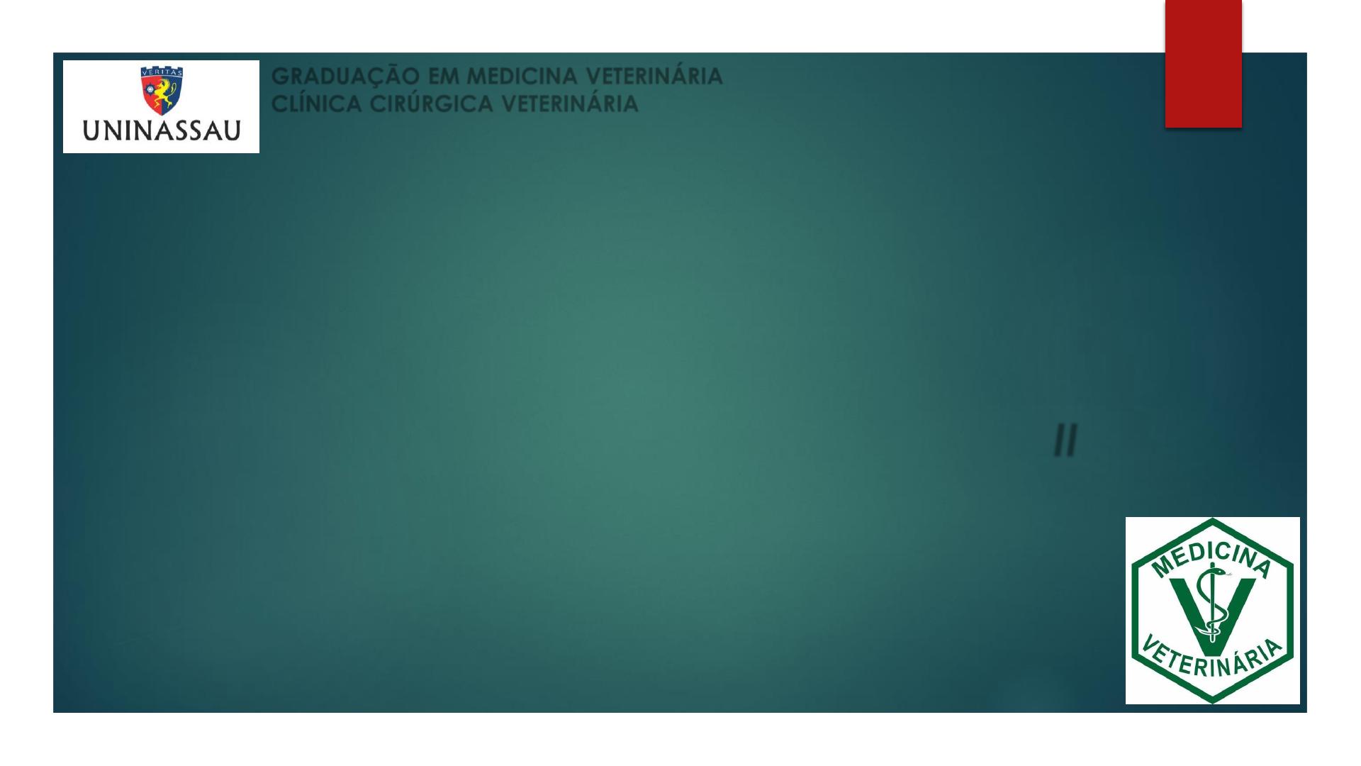 AFECÇÕES CIRÚRGICAS II Diversas PROF.: FELIPE SOBRAL GRADUAÇÃO EM MEDICINA VETERINÁRIA CLÍNICA CIRÚRGICA VETERINÁRIA SACULECTOMIA ANAL SACULECTOMIA ANAL Pequenas glândulas localizadas em cada lado do ânus por debaixo da pele; Cada saco anal tem uma abertura para a pele lateralmente ao orifício anal; O tecido glandular dos sacos anais produz um fluído acastanhado, de consistência entre a água e o óleo, com odor extremamente desagradável; Durante defecação o esfíncter anal faz compressão sobre os sacos anais, gerando a descarga para a massa fecal; Secreção utilizada para marcação territorial e defesa contra outros animais. SACULECTOMIA ANAL Acúmulo de fluido com posterior solidificação gerando irritação e coceiras regulares na região perineal; Afecções mais frequentes em cães de raças pequenas; • Poodle miniatura/toy; • Chihuahuas; Animais obesos (drenagem dificultada); Felinos raramente acometidos; Sem predisposição sexual e etária; SACULECTOMIA ANAL Indicações cirúrgicas Impactação crônica; Saculite anal recorrente; Fístulas perianais; Adenocarcinomas do saco anal. SACULECTOMIA ANAL Cuidados pré-operatórios Efetuar tratamento medicamentoso da infecção/inflamação associadas com os sacos anais; Espremer manualmente todo conteúdo do saco anal; Instilação de preparações antibacterianas através do ducto do saco anal; Aplicação de compressas mornas na região perianal; Antibiótico terapia sistêmica; Quando com abcesso lavar 3 vezes ao dia solução antisséptica diluída até que a resposta inflamatória aguda tenha sido resolvido. SACULECTOMIA ANAL Técnica cirúrgica Saculectomia anal fechada ou aberta; Quando empregada a técnica fechada o cirurgião pode escolher o preenchimento dos sacos anais com um material para permitir maior definição dos sacos anais antes da sua remoção (barbante, parafina derretida, acrílico dentário, látex dentário); Saculectomia anal aberta MAIS UTILIZADA em virtude de facilidade e velocidade para realização; Alto risco de infecção pós-operatória; Lavar os sacos anais com desinfetante (clorexidine) de forma abundante antes da intervenção cirúrgica. SACULECTOMIA ANAL Técnica cirúrgica - aberta Animal em decúbito ventral, com ligeira inclinação para frente; Empregar acolchoamento por baixo do abdome e na superfície caudal da mesa de cirurgia com posterior amarração das pernas e cauda na mesa de cirurgia; Obstrução do reto com tampões de gazes e lavagem do sítio cirúrgico; Alto risco de infecção pós-operatória; Coloca-se um anteparo sulcado através do orifício para preencher a profundidade do saco anal; SACULECTOMIA ANAL Técnica cirúrgica - aberta SACULECTOMIA ANAL Técnica cirúrgica - aberta SACULECTOMIA ANAL Técnica cirúrgica - aberta Incisão na pele até o saco anal (em cima do anteparo sulcado); Expondo a extensão da glândula; Tração no saco com pinças Allis; Dissecação do saco anal por divulsão com tesoura Metzenbaum separando o esfíncter anal externo do saco anal; Uma vez dissecado todo saco anal a partir dos tecidos circundantes, realiza-se ligadura e remoção da estrutura; SACULECTOMIA ANAL Técnica cirúrgica - aberta Lava-se o sítio cirúrgico com solução salina estéril morna; Aproximação da musculatura com sutura simples interrompidas (vicryl 3.0); Fechamento de pele com sutura macia, caso opte por sutura rígida (nylon) as extremidades das suturas podem causar desconforto desnecessário antes de sua remoção. SACULECTOMIA ANAL Cuidados pós-operatórios Envio de tecidos para histopatologia; Antibiótico terapia sistêmica (amplo espectro); Uso de colar elisabetano; Compressas mornas no local da incisão, 02x dia (mantem a linha de incisão limpa e “força” o proprietário a ver a cirurgia regularmente possibilitando a constatação de alguma complicação pós-operatória; Remoção de sutura cutânea com 10 dias. SACULECTOMIA ANAL Complicações Incontinência fecal resultado de traumatismo cirúrgico excessivo ou lesão nervosa – n. pudendo (controle pode ser realizado com manejo dietético em lesões brandas); Formação de fístulas crônicas remoção incompleta dos sacos; Estenose anal traumatismo cirúrgico excessivo ocorrendo secundariamente a formação de cicatriz. PILORECTOMIA COM GASTRODUODENOSTOMIA Técnica que realiza ligação entre estômago e intestino delgado: Neoplasias; Perturbações do fluxo dos alimentos devido a hipertrofia muscular do piloro; Ulcerações da parede gástrica junto ao piloro (com retirada da porção do estômago desejada e sutura de duodeno). PILORECTOMIA COM GASTRODUODENOSTOMIA Hipertofia e neoplasia antrais são as duas das causas mais comuns de disfunção pilórica crônica; A hipertrofia pilórica antral é a obstrução do canal pilórico causada pela hipertrofia da musculatura lisa circular pilórica, hiperplasia da mucosa pilórica, ou ambas; Hipertrofia muscular pilórica congênita (estenose pilórica congênita) mais comum em cães braquicefálicos jovens (Boston terrier, Boxer, Buldogue) e gatos Siameses; Hipertrofia pilórica antral adquirida é comumente detectada em cães pequenos (<10 kg) e de meia-idade ou idosos, cães das raças Lhasa Apsos, Shitzus, Pequinês e Poodles são os mais afetados; PILORECTOMIA COM GASTRODUODENOSTOMIA Etiopatogenia Causas e patogêneses das formas congênitas e adquiridas desconhecidas; Podem favorecer no desenvolvimento da afecção: • Predisposição genética; • Fatores ambientais; • Fatores hormonais; • Inflamação crônicas. PILORECTOMIA COM GASTRODUODENOSTOMIA Etiopatogenia Vômitos intermitentes (obstrução parcial) horas após a refeição; Vômitos NÃO ocorrem em projéteis/jatos, exceto a obstrução seja completa; Quando na presença de ulceração da mucosa, vômito com sangue; Perda de peso; Depressão/letargia; PILORECTOMIA COM GASTRODUODENOSTOMIA Sinais clínicos Anorexia; Distensão abdominal; Animais com neoplasi