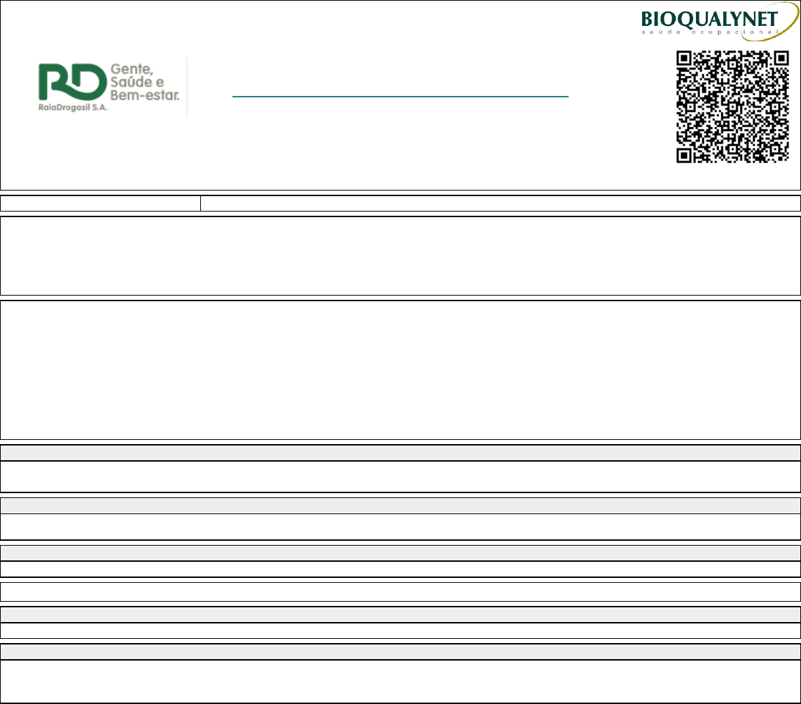 Guia de Encaminhamento de Exames RAIA DROGASIL S.A. 17/09/2018 Número da Guia 959790 Empresa RAIA DROGASIL S.A. Unidade DRN - NATAL SHOPPING CNPJ 61.585.865/0001-51 Funcionario HELLEN LIMA MORAIS RG 4042706 CPF 124.628.304-21 Cargo ATENDENTE I Setor DRN - NATAL SHOPPING Prestador GLOBALMED MEDICINA E SEGURANCA DO TRABALHO Tipo de Atendimento Hora Marcada Telefone (84) 3025-8100 Fax Endereço RUA JAGUARARI Número 2077 Complemento Bairro LAGOA NOVA Cidade/UF NATAL/RN Atendente Naiane Tipo de Atendimento Hora Marcada Faixa de Horário de Atendimento 08:00 até 17:00 Comentários Dados do Exame Tipo de Exame Admissional Médico Coordenador Tiago Meneses da Silveira CRM 129441/SP Riscos Ausência de Riscos Ocupacionais Específicos Exames TUSS Nome do Exame Data Hora Recomendação 10101012 Exame Clínico. 00:00 às 00:00 Recomendações Comparecer no local de atendimento (Prestador/Clinica) portando documento com foto. Responsável pela emissão da guia 17/09/2018 Nome Jacqueline Aguilar (Núcleo de Atendimento) Telefone E-mail jacqueline.aguilar@portoseguro.com.br Tel. Comercial