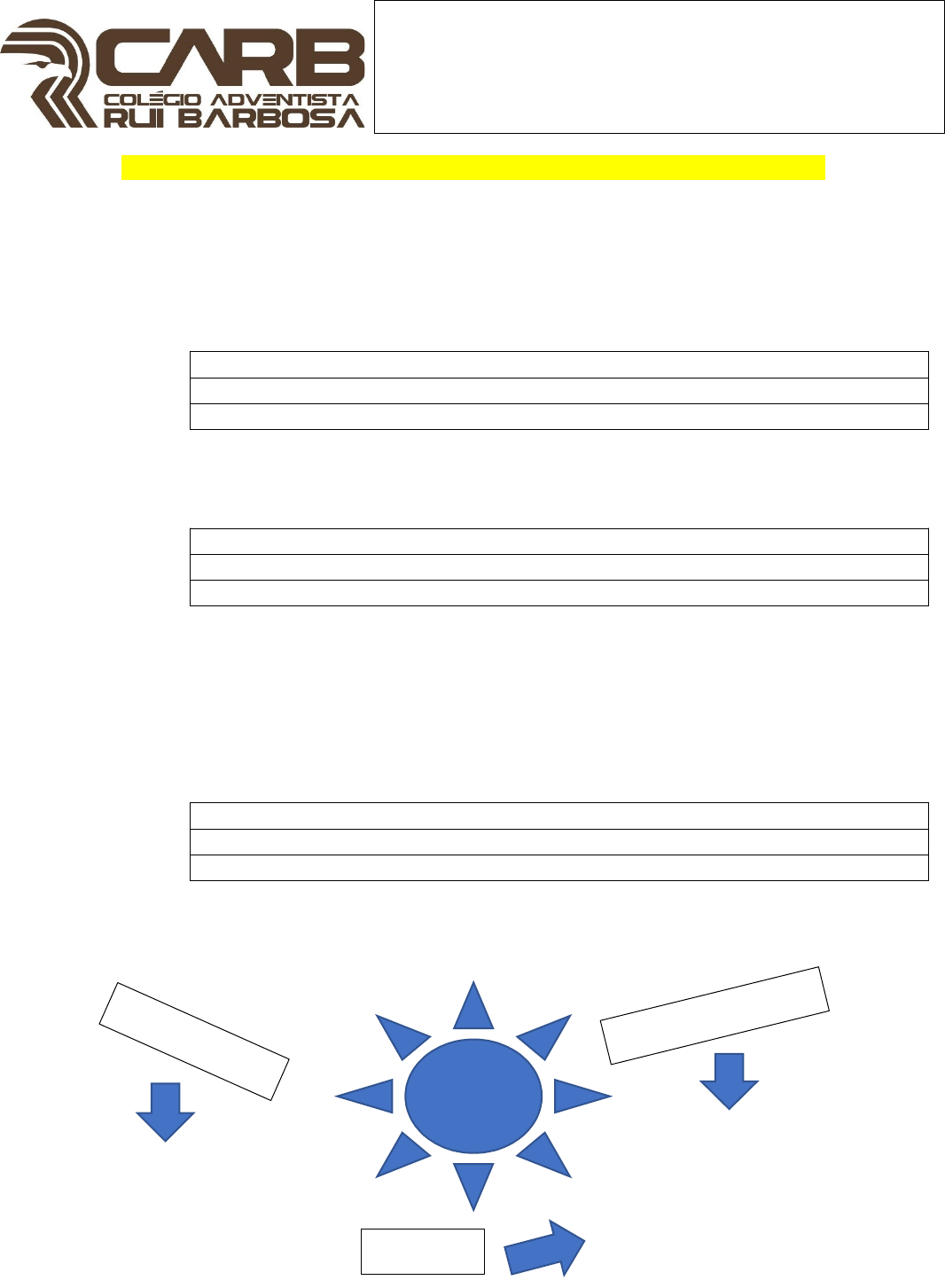 NOME DO ALUNO: _______________________________________ DATA: 27/09/21 DISCIPLINA DE ÉTICA E RELIGIÃO PROFESSORA ADRIANA 5º ANO NOTA: ____ / 10 ATIVIDADE SOBRE O DOCUMENTÁRIO “A CHAMADA DO COSMOS” Que tal uma história diferente hoje? Vamos ver e aprender através de um documentário que desvenda o que o universo revela sobre Deus. 1. Relacione a viagem da Apollo 8 com o motivo de sua citação no documentário: 2. Explique a seguinte frase “A ciência é o processo de pensar os pensamentos de DEUS após Ele.” 3. É difícil entender a magnitude de Deus, sua imensidade e tamanho, pois Ele é ____________________________ (JOÃO 4: 24). Ele não pode ser medido por metros ou níveis, tempo ou espaço. 4. O universo possui aproximadamente 2 trilhões de galáxias cheias de estrelas. Então, como explicar o tamanho de Deus? (ISAÍAS 40:12) 5. Cita-se três características de Deus, desvende-as: N O I P T N O E T E F T I N I O I N _______________________ ________________________O T N E R E ________________________ 6. O que diz em ROMANOS 1: 20, conforme é citado no documentário? 7. Em 1920, EDWIN HUBBLE fez uma descoberta em relação à criação das galáxias: que elas se expandiam e cresciam. Como esse fato se relaciona ao que está escrito em GÊNESIS 1: 1? 8. Como o documentário desassocia o materialismo científico das provas de que o universo teve um começo? 9. O documentário cita duas visões diferentes sobre a grandeza da Criação de Deus. A visão de Carl Sagan sobre o “Ponto Azul” e a visão de Davi, no Salmo 108: 3-5. Desenhe a primeira e escreva a 2ª: SALMO 108: 3-5 O PONTO AZUL