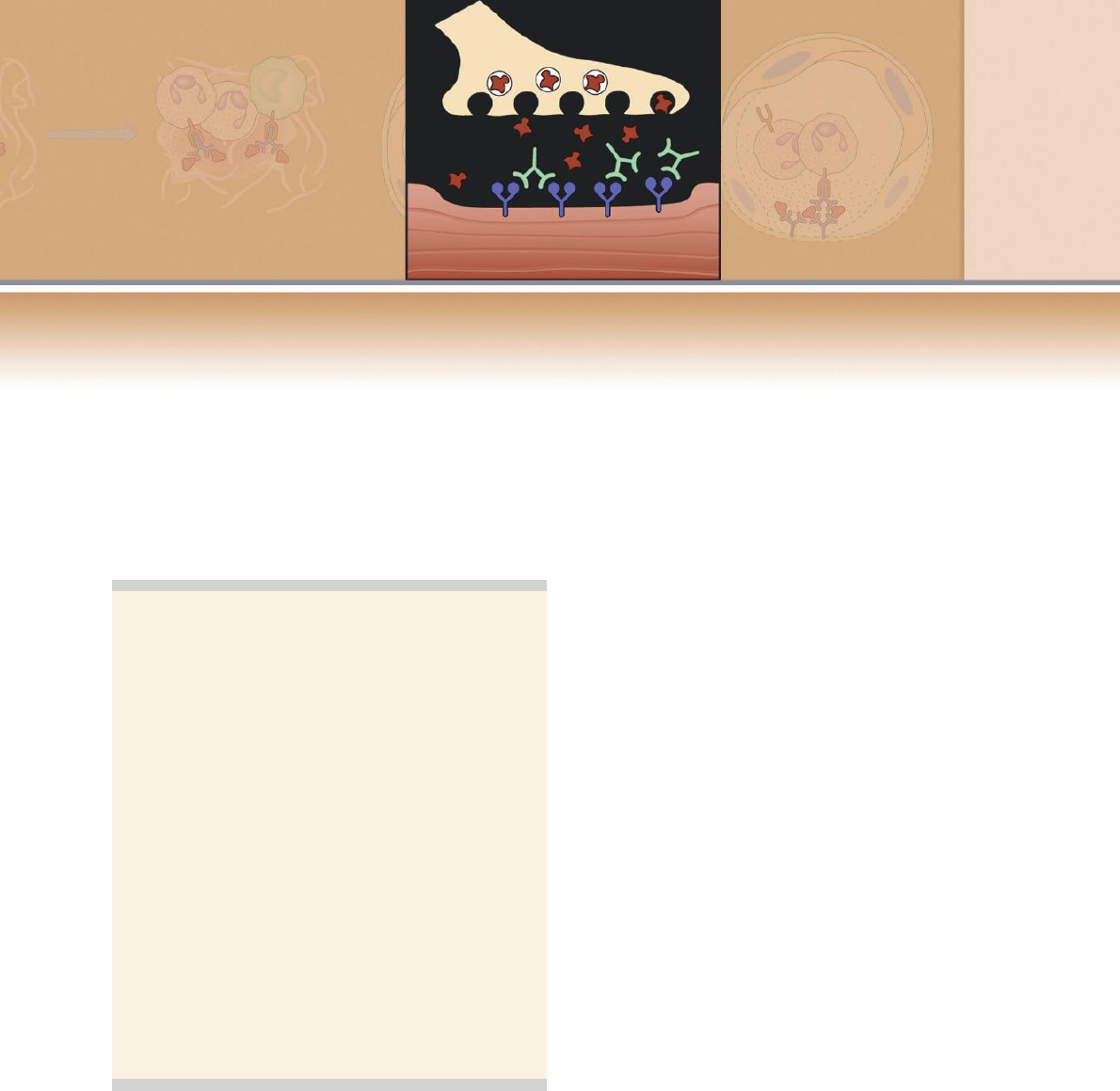 C A P Í T U L O 207 11 Hipersensibilidade Distúrbios Causados por Respostas Imunes O conceito de que o sistema imune é ne- cessário para defender o hospedeiro con- tra infecções foi enfatizado neste livro. No entanto, as próprias respostas imunes são capazes de causar lesão tecidual e doença. As reações imunes prejudiciais ou patoló- gicas são chamadas de reações de hiper- sensibilidade. Uma resposta imune a um antígeno pode resultar em sensibilidade à provocação com aquele antígeno e, portanto, a hipersensibilidade é um reflexo de respos- tas imunes excessivas ou aberrantes. As rea- ções de hipersensibilidade podem ocorrer em duas situações. Primeiramente, as respostas a antígenos estranhos (microrganismos e antí- genos ambientais não infecciosos) podem ser desreguladas ou descontroladas, resultando em lesão tecidual. Em segundo lugar, as res- postas imunes podem ser direcionadas con- tra os antígenos próprios (autólogos), como resultado da falha de autotolerância (Cap. 9). Respostas contra os antígenos próprios são denominadas autoimunidade, e os distúr- bios de hipersensibilidade causados por elas são denominados doenças autoimunes. Este capítulo descreve os aspectos im- portantes das reações de hipersensibilidade e das doenças resultantes, enfatizando sua patogênese. Suas características clinicopa- tológicas são descritas brevemente e podem ser encontradas em outros livros didáticos de medicina. As seguintes questões são tratadas: ● Quais são os mecanismos dos diferentes tipos de reações de hipersensibilidade? ● Quais são as principais características clí- nicas e patológicas das doenças causadas por essas reações, e quais são os princípios básicos do tratamento das doenças de hi- persensibilidade? TIPOS DE REAÇÕES DE HIPERSENSIBILIDADE As reações de hipersensibilidade são classificadas com base no principal me- canismo imunológico responsável pela lesão tecidual e pela doença (Fig. 11-1). Preferimos as atribuições descritivas mais informativas aos termos numéricos; assim, TIPOS DE REAÇÕES DE HIPERSENSIBILIDADE 207 HIPERSENSIBILIDADE IMEDIATA 209 Ativação de Células TH2 e Produção de Anticorpos IgE 209 Ativação de Mastócitos e Secreção de Mediadores 211 Síndromes Clínicas e Tratamento 213 DOENÇAS CAUSADAS POR ANTICORPOS E COMPLEXOS ANTÍGENO-ANTICORPO 215 Etiologia das Doenças Mediadas por Anticorpos 215 Mecanismos de Lesão Tecidual e Doença 216 Síndromes Clínicas e Tratamento 216 DOENÇAS CAUSADAS POR LINFÓCITOS T 218 Etiologia das Doenças Mediadas por Células T 218 Mecanismos de Lesão Tecidual 219 Síndromes Clínicas e Tratamento 221 RESUMO 221 208 Capítulo 11 – Hipersensibilidade esses descritores serão usados neste capítulo. A hipersensibilidade imediata, ou hipersen- sibilidade tipo I, é um tipo de reação pato- lógica causada pela liberação de mediadores de mastócitos. Essa reação é muitas vezes desencadeada pela produção de anticorpo imunoglobulina E (IgE) contra antígenos ambientais e ligação da IgE aos mastócitos em diversos tecidos. Anticorpos que não a IgE podem causar doenças de duas maneiras. FIGURA 11-1 Tipos de reações de hipersensibilidade. Nos quatro principais tipos de reações de hipersensibilidade, diferentes mecanismos efetores imunes causam lesão tecidual e doença. CTL, linfócitos T citotóxicos; Ig, imunoglobulina. Capítulo 11 – Hipersensibilidade 209 Anticorpos direcionados contra antígenos celulares ou teciduais podem danificar es- sas células ou tecidos ou podem prejudicar sua função. Diz-se que essas doenças são mediadas por anticorpos e representam a hipersensibilidade tipo II. Às vezes, an- ticorpos contra antígenos solúveis podem formar complexos com os antígenos, e os complexos imunes podem-se depositar nos vasos sanguíneos em vários tecidos e causar inflamação e lesão tecidual. Tais doenças são denominadas doenças de complexo imune e representam a hipersensibilidade tipo III. Finalmente, algumas doenças resultam das reações dos linfócitos T, geralmente contra antígenos próprios nos tecidos. Essas doen- ças mediadas pelas células T são denomina- das hipersensibilidade tipo IV. Esse esquema de classificação é útil por distinguir os mecanismos da lesão tecidual imune. Em muitas doenças imunológicas humanas, porém, o dano pode resultar de uma combinação de reações mediadas por anticorpos e de reações mediadas por células T; portanto, muitas vezes é difícil classificar essas doenças perfeitamente em um tipo de hipersensibilidade. HIPERSENSIBILIDADE IMEDIATA A hipersensibilidade imediata trata-se de uma reação mediada pelo anticorpo IgE e por mastócitos a determinados antígenos, que causa um rápido vaza- mento vascular e secreções mucosas, geralmente acompanhados por in- flamação. As reações hipersensibilidade imediata mediada pela IgE também são denominadas alergia, ou atopia, e diz-se que os indivíduos com uma forte propensão a desenvolver essas reações são atópicos. Tais reações podem afetar diversos tecidos, e apresentam uma gravidade variável em indivíduos diferentes. Os tipos comuns des- sas reações incluem a febre do feno, alergias alimentares, asma brônquica e anafilaxia. As alergias são os distúrbios mais frequentes do sistema imunológico e estima-se que afete cerca de 20% da população; além disso, a incidência de doenças alérgicas tem aumen- tado em sociedades industrializadas. A sequência de eventos no desenvol- vimento das reações de hipersensibili- dade imediata começa com a ativação de células TH2 e produção de anticorpos IgE em resposta a um antígeno, com a ligação da IgE a receptores de Fc dos mastócitos e, então, com a subsequente exposição ao antígeno, ligação cruzada da IgE ligada pelo antígeno reintro- duzido e liberação de mediadores dos mastócitos (Fig. 11-2). Alguns mediadores de mastócitos causam u