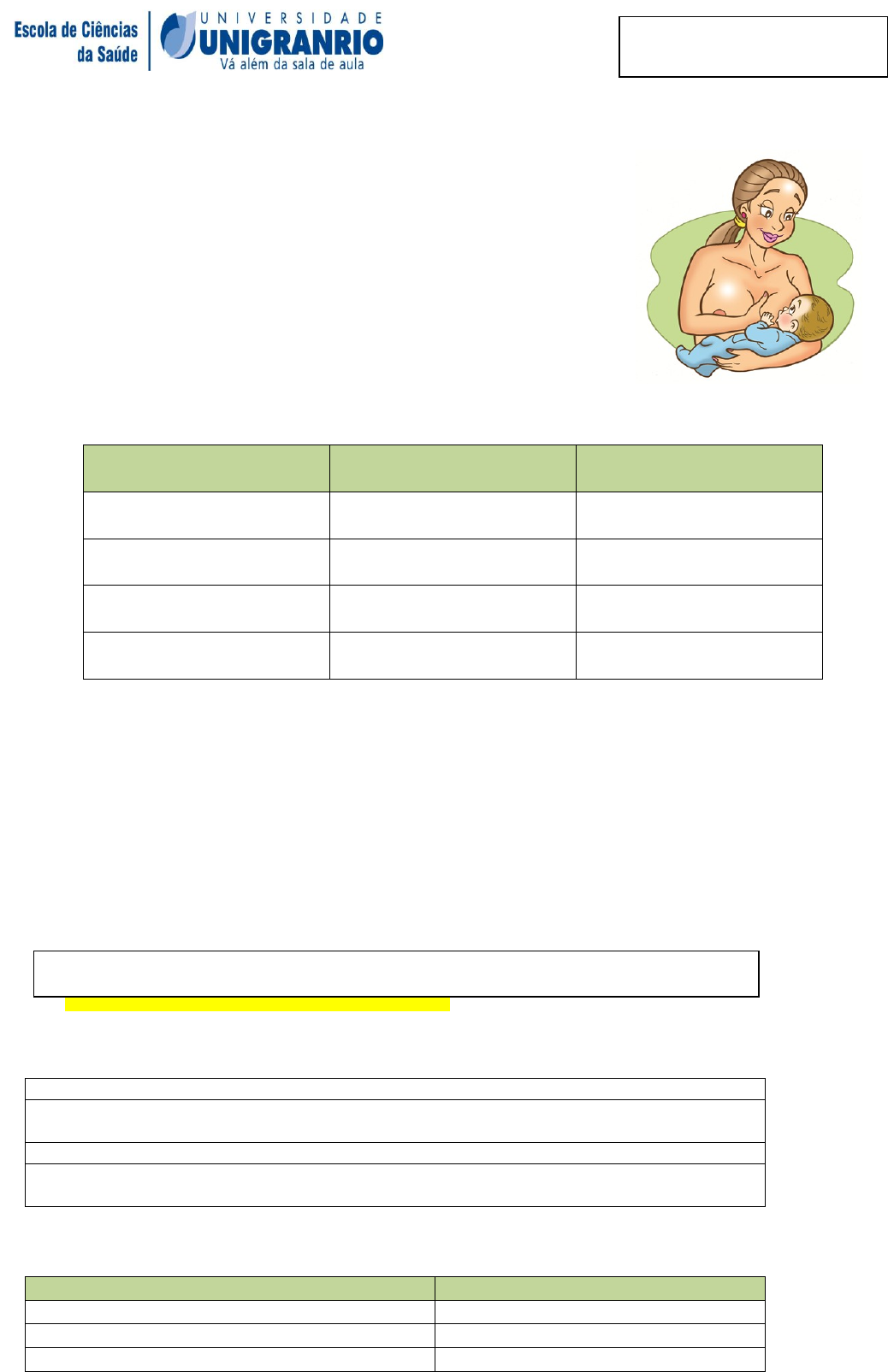 NUTRIÇÃO DA NUTRIZ Gestação = > retenção de peso pós-parto => ↑ risco de obesidade A retenção está em torno de 3kg ↑ ganho de peso durante a gestação x ↑ retenção A amamentação favorece a perda de peso no pós-parto Recomendação de acordo com o estado nutricional da nutriz Índice de Massa Corporal (IMC) Meta Perda de peso recomendada <18,5 (baixo peso) Alcance de um IMC saudável (eutrofia) - ≥18,5 e < 25 (eutrofia) Manutenção do peso dentro da faixa de eutrofia - ≥25 e < 30 (sobrepeso) Perda de peso até atingir IMC dentro da faixa de eutrofia 0,5 a 1kg/mês ≥30 (obesidade) Perda de peso até atingir IMC dentro da faixa de eutrofia 0,5 a 2kg/mês Recomendações nutricionais durante a lactação: Produção no 1ª semestre: 807 ml/dia => 675 kcal/dia Produção no 2ª semestre: 550 ml/dia => 460 kcal/dia Programação para perda ponderal Fator de energia acumulada da lactação/por kg a perder (6.500kcal/kg): a ser reduzida das 675 kcal/dia Energia para perda de peso (Mulheres bem nutridas) 0,8Kg/mês = 170 kcal/dia Para mulheres de baixo a redução não é necessária TMB: Taxa metabólica basal de adultos do sexo feminino 18 a 30 anos: TMB (kcal/dia) = 14,818 x P (kg) + 486,6 30 a 60 anos: TMB (kcal/dia) = 8,126 x P (kg) + 845,6 Taxa metabólica basal de adolescentes do sexo feminino 10 a 18 anos: TMB (kcal/dia) = 13,384 x P(kg) + 692,6 Por conta da energia para o crescimento, multiplicar o GE por 1,01 NAF – Adultos Categoria NAF (média) Estilo de vida sedentário ou leve 1,40 - 1,69 (1,53) Ativo ou moderadamente ativo 1,70 - 1,99 (1,76) Vigoroso ou moderadamente vigoroso 2,00 - 2,40 (2,25) VET: GE (TMB X NAF) + adicional energético para a lactação – energia para perda de peso Estágio Supervisionado em Nutrição Materno-Infantil NAF – Adolescentes Idade (anos) NAF Atividade leve Atividade moderada Atividade Intensa 10-11 1,45 1,70 1,95 11-12 1,50 1,75 2,00 12-13 1,50 1,75 2,00 13-14 1,50 1,75 2,00 14-15 1,50 1,75 2,00 15-16 1,50 1,75 2,00 16-17 1,50 1,75 2,00 17-18 1,45 1,70 1,95 PROTEÍNA: Período da lactação Adicional protéico 1º semestre 19,0g/dia 2º semestre 12,5g/dia Multiplicar antes o peso por 1,1gptn/kg de peso desejável/dia + adicional Demais macronutrientes: LIP: 20-30% (rico em ômega 3) CHO: 160 a 210g / dia RECOMENDAÇÃO PARA PUÉRPERAS GEMELARES: Nutrientes Recomendação Acréscimo calórico 36 kcal/kg + 500/600/bebê PTN 20%: 1g/kg + 16g (1ºsemestre) e 1g/kg + 12g ( 2ºsemestre) CHO 40% LIP 40% Exemplo de cálculo de recomendação de energia Mulher de 27 anos, 1 mês pós-parto, altura 1,70m, peso atual de 78kg, em aleitamento exclusivo. 1º passo - Cálculo do IMC atual: 78kg ÷ 1,70 m ÷ 1,70m = 27 Kg/m² - Sobrepeso 2º passo - Necessidade de energia para a produção láctea (807mL/dia) = 675 kcal 3º passo – Perda de peso recomendada – 1kg / mês 4º passo – Energia correspondente à perda de peso desejada: 6.500 kcal/kg – Para perda de 1kg/ mês, será necessário reduzir 6.500 kcal / mês = 217 kcal/dia 5º passo – Cálculo das necessidades energéticas para a mulher 14,818 x 78 (kg) + 486,6 = 1642,4 X 1,53 (NAF) = 2.512,9 Kcal/dia 6º passo – Cálculo para as necessidades energéticas para a nutriz 2.512,9 + 675 – 217 = 2.971kcal/dia 7º passo – Recomendação do consumo de proteína 78kg x 1,1 g/kg/dia = 85,8g/dia + 19 (adicional de PTN) = 104,8 g/dia OBS: A opção apresenta 15% do VET Fonte: Accioly E. Nutrição em Obstetrícia e Pediatria. 2ª Ed, 2009. Waitzberg D,L. Nutrição Oral, Enteral e Parenteral, 4ª Ed, 2009.