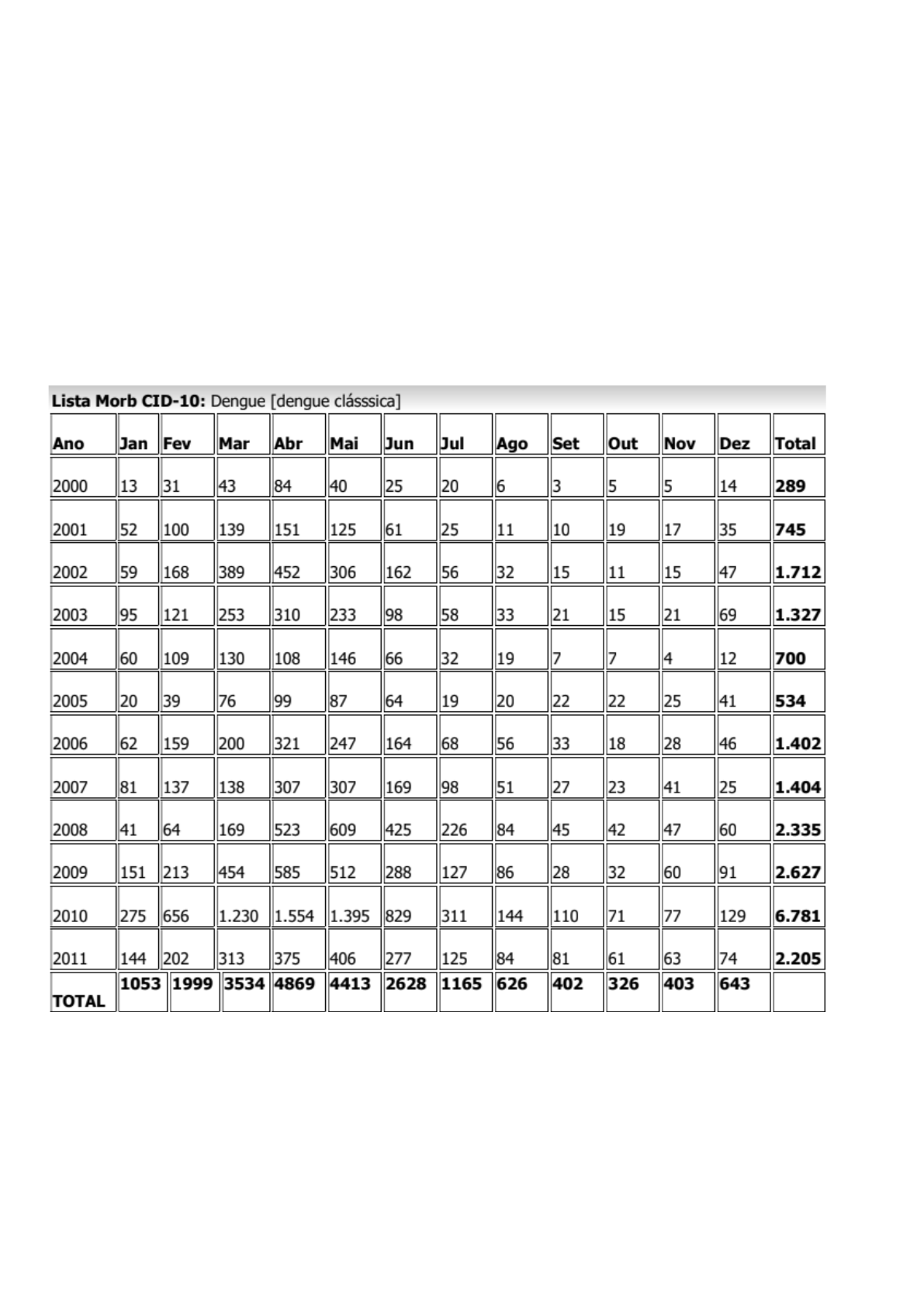 Epidemiologia e Saúde Pública Estudo Dirigido 2 – Curva Endêmica QUESTÕES 1. Utilizando a tabela 1: A-) Construa um gráfico com a ocorrência e a tendência das internações por Dengue Clássica em Lavras. B-) Construa uma curva endêmica para as internações por Dengue Clássica em Lavras. C-)Defina se ocorreu e quando ocorreu uma epidemia de internações por Dengue Clássica em 2012, se nesse ano foram assinalados 640 casos em março, 580 em maio e 70 em outubro. D-) Defina as zonas que compõe a curva endêmica. Tabela 1 – Internações por Dengue Clássica em Lavras, MG, 2000 a 2011. Morbidade Hospitalar do SUS - por local de residência - Minas Gerais RESPOSTAS: LETRA A: OCORRÊNCIA E TENDÊNCIA RESPOSTA LETRA B RESPOSTA LETRA C E D: