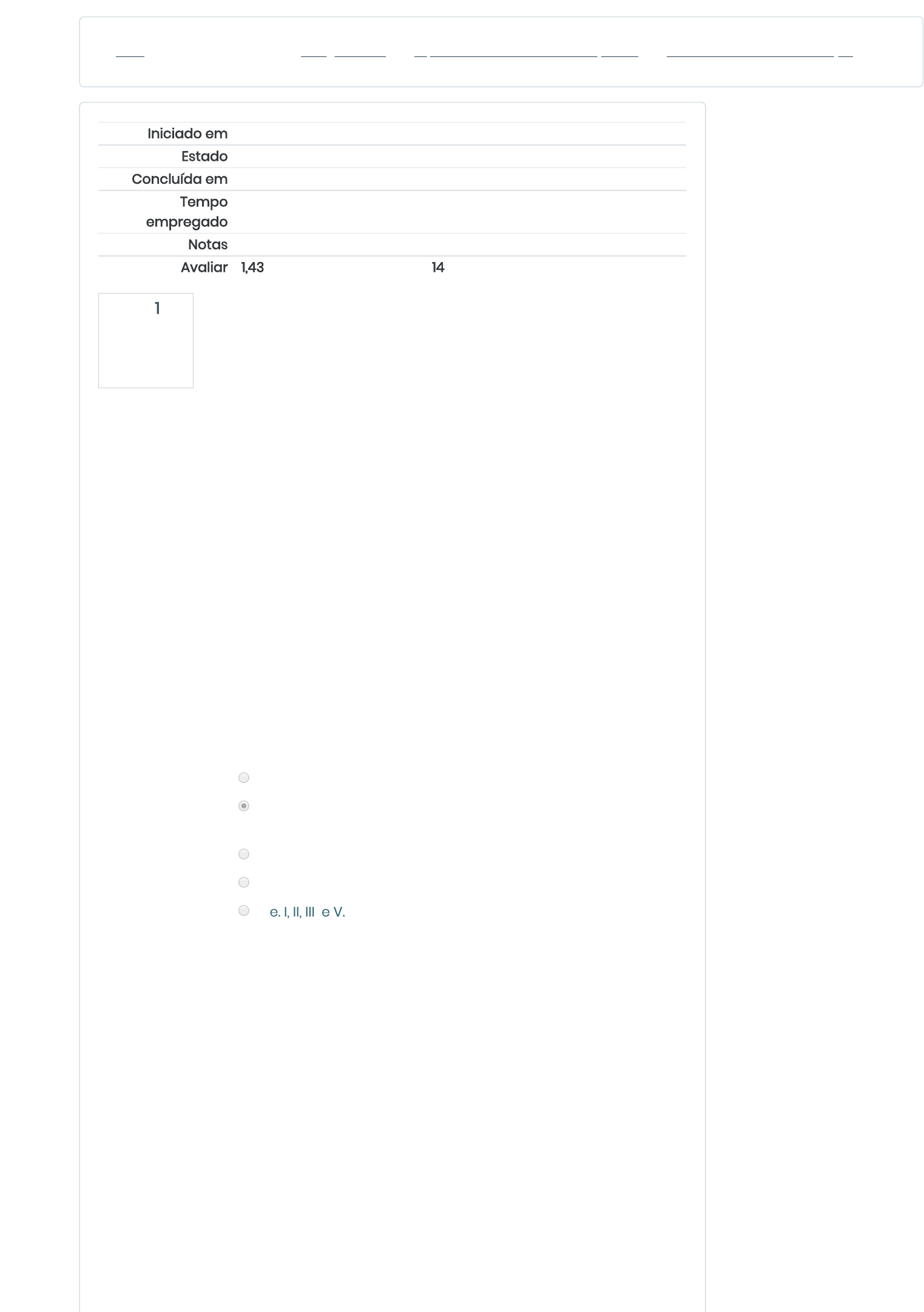 Início Minhas disciplinas Biologia Celular Tópico 08 - CITOPLASMA E CITOESQUELETO Atividade 8.1 - Exercício de Fixação Questão 1 Incorreto Atingiu 0,00 de 1,00 Iniciado em quarta-feira, 22 abr 2020, 19:19 Estado Finalizada Concluída em quarta-feira, 22 abr 2020, 19:20 Tempo empregado 53 segundos Notas 1,00/7,00 Avaliar 1,43 de um máximo de 10,00(14%) O citoesqueleto em células eucariontes é amplamente estudado. São três os citoesqueletos: os filamentos intermediários, microtúbulos e filamentos de actina. Cada elemento é formado por um tipo de proteína ou famílias de proteínas que conferem propriedades distintas a cada um deles. Sobre as proteínas que participam na formação do citoesqueleto, analise as frases abaixo: I. O microfilamento é formado por actina e miosina. II. Filamentos intermediários são formados por queratina. III. Queratinas e desminas fazem parte dos filamentos intermediários. IV. Internexina encontra-se no neurônio, e faz parte do microfilamento V. Os microtúbulos são formados por um único tipo de proteína globular que é a tubulina É correto apenas o que se afirma em Escolha uma: a. I e II. b. II, III e V. II, III e V estão corretas, mas falta a I para questão estar completamente correta. c. I, III e IV. d. II, III e IV. e. I, II, III e V. Sua resposta está incorreta. A resposta correta é: I, II, III e V.. https://cead.uvv.br/graduacao/my/ https://cead.uvv.br/graduacao/course/view.php?id=334 https://cead.uvv.br/graduacao/course/view.php?id=334§ion=12 https://cead.uvv.br/graduacao/mod/quiz/view.php?id=53856 https://cead.uvv.br/graduacao/blocks/mchat/view.php?id=334 https://cead.uvv.br/graduacao/my/ https://cead.uvv.br/graduacao/calendar/view.php?view=month&course=334 javascript:void(0); https://cead.uvv.br/graduacao//course/view.php?id=182&sesskey=Rv9ijCd5E1&edit https://aluno.uvv.br/Aluno/Dashboard https://cead.uvv.br/graduacao/my Daiane Realce Questão 2 Correto Atingiu 1,00 de 1,00 Questão 3 Incorreto Atingiu 0,00 de 1,00 A proliferação celular exagerada está diretamente relacionada ao desenvolvimento de câncer. Tem-se como exemplo de bloqueio desse processo o uso de drogas antimitóticas (colchicina e a colcemida), que desorganizam o fuso mitótico, bloqueando a divisão celular. Qual citoesqueleto deixa de se formar, quando na quimioterapia são utilizadas as drogas vincristina e vimblastina que desorganizam o fuso mitótico, bloqueando a divisão celular? Escolha uma: a. Actina e miosina. b. Microtúbulo. Correta. c. Queratina e vimentina. d. Microfilamento. e. Filamento intermediário. Sua resposta está correta. A resposta correta é: Microtúbulo.. Os microtúbulos são polímeros proteicos em forma de tubos que participam de diversas funções celulares. Assinale quais são as funções exercidas por eles. Escolha uma: a. Posicionamento de transporte de vesículas e organelas membranosas, formação de cílios e flagelos e formação dos fusos mitóticos durante a mitose. b. Nas células epiteliais para fornecer resistências as células e tecidos. c. Contração muscular. Quem tem função de Contração muscular é o Microfilamento. d. Formação de um anel contráctil processo celular importante que ocorre no final da divisão celular chamado citocinese. e. Movimentação da célula para frente, formando pseudópodes que permitem a locomoção da célula e sua nutrição pelo processo da fagocitose. Sua resposta está incorreta. A resposta correta é: Posicionamento de transporte de vesículas e organelas membranosas, formação de cílios e flagelos e formação dos fusos mitóticos durante a mitose.. https://cead.uvv.br/graduacao/blocks/mchat/view.php?id=334 https://cead.uvv.br/graduacao/my/ https://cead.uvv.br/graduacao/calendar/view.php?view=month&course=334 javascript:void(0); https://cead.uvv.br/graduacao//course/view.php?id=182&sesskey=Rv9ijCd5E1&edit https://aluno.uvv.br/Aluno/Dashboard https://cead.uvv.br/graduacao/my Daiane Realce Daiane Realce Questão 4 Incorreto Atingiu 0,00 de 1,00 Questão 5 Incorreto Atingiu 0,00 de 1,00 Na Terra, os primeiros organismos vivos surgiram há aproximadamente 3,5 bilhões de anos em ambiente aquático, ou seja, na dependência de água. Os cientistas acreditam que sem água não existe vida, pois ela é o principal componente das células animais, sendo responsável por grande parte de seu volume. Sendo assim, podemos afirmar que na célula, Escolha uma: a. o retículo endoplasmático retém a maior parte da água da célula, formando o hialoplasma. b. o citosol é constituído de água e moléculas orgânicas, formando uma solução chamada de colóide. c. a mitocôndria retém a maior parte da água da célula, formando o citosol. Errada. A mitocôndria é uma organela encontrada no citoplasma responsável pela produção de energia. d. o ribossomo retém a maior parte da água, formando o citoesqueleto. e. o lisossomo é constituído exclusivamente de água. Sua resposta está incorreta. A resposta correta é: o citosol é constituído de água e moléculas orgânicas, formando uma solução chamada de colóide.. O citoesqueleto é uma estrutura celular presente no citoplasma. Ele é uma espécie de rede, composta por um conjunto de três tipos diferentes de filamentos proteicos. Suas funções e formações são diferentes. Sobre eles, analise as frases abaixo: I. Os microtúbulos são os citoesqueletos responsáveis tanto pela forma celular quanto pela movimentação que ocorre em algumas nas células. II. Os filamentos intermediários, em relação a sua forma, se comparados com os microtúbulos e microfilamentos, possuem um tamanho intermediário, sendo mais grosso do que os microfilamentos e mais fino do que os microtúbulos. III. Os microfilamentos têm a função de manter as organelas celulares em seus lugares. IV. Os microfilamentos ajudam na contração muscular. É correto apenas o que se afirma em: Escolha uma: a. I e II. b. II e III. c. II e IV. II e IV est