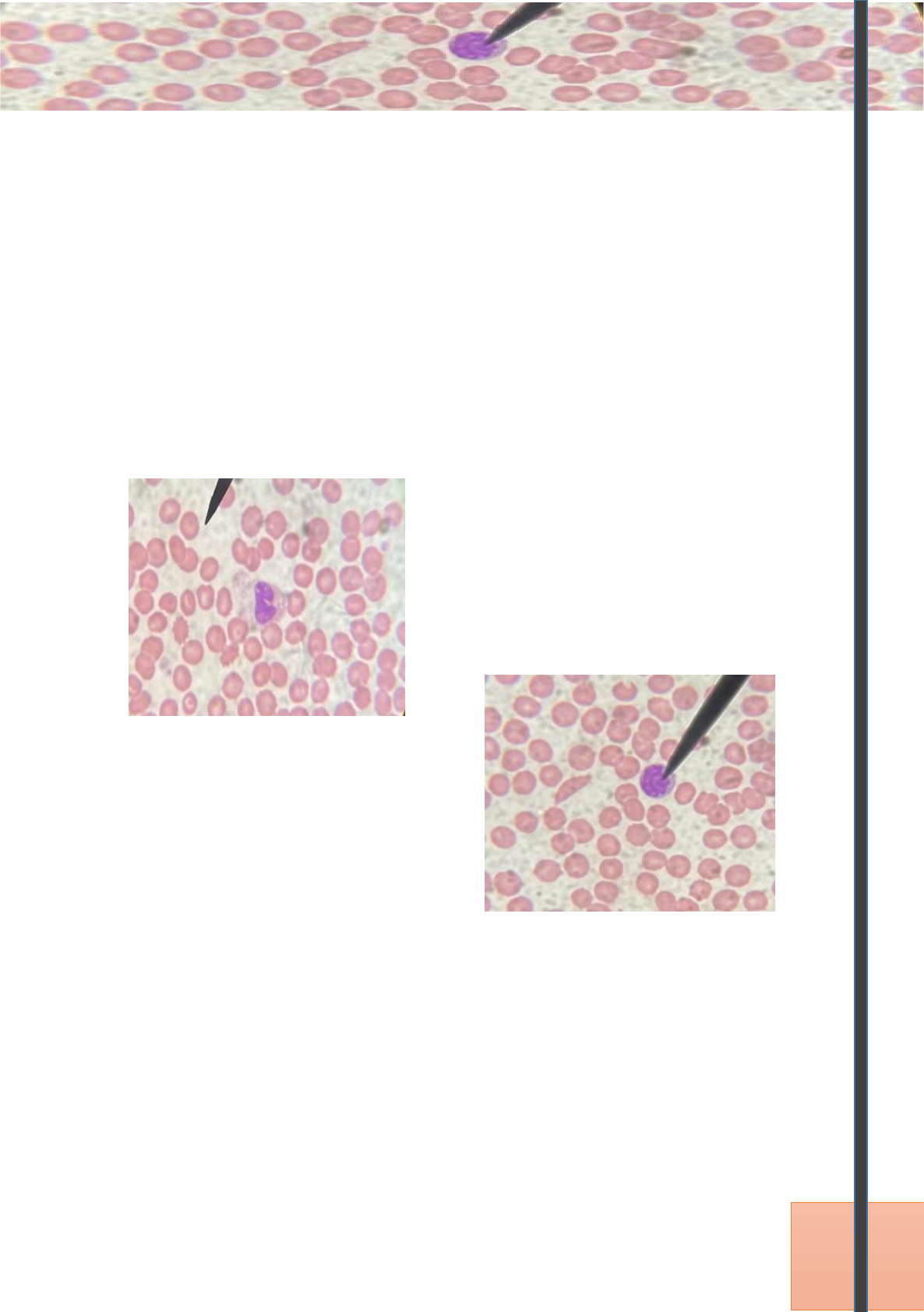 À descoberta das nossas defesas OBSERVAÇÃO AO MICROSCÓPIO ÓTICO COMPOSTO DE LEUCÓCITOS Trabalho realizado por: André Fernandes- Nº. 01 Nádia Vilão- Nº. 17 Biologia 12º ano Professora: Bertilde Correia Agrupamento de Escolas D. Dinis Índice 1-Introdução……………………………………………………………………… 3 2- Fundamentação teórica……………………………………………………3 3- Objetivos……………………………………………………………………………6 4-Protocolo experimental…………………………………………………………7 4.1- Material ………………………………………………………………………7 4.2 Procedimento…………………………………………………………………7 5-Registo de resultados………………………………………………………………………8 6-Discussão de resultados………………………………………………………………………9 7-Conclusão…………………………………………………………………………….…………………9 8-Fontes consultadas……………………………………………………………….……………………10 1- IntroduçãoPágina 2/10 Página 2/… Este trabalho foi realizado no âmbito da disciplina de biologia com o objetivo de observar as preparações definitivas de sangue humano e conhecer a sua constituição. Para a realização desta atividade laboratorial foram necessários conhecimentos sobre o sistema imunitário bem como dos diferentes tipos de leucócitos. 2- Fundamentação teórica Os seres vivos possuem mecanismos internos de defesa, que constituem o sistema imunitário, protegendo-os de doenças causadas por agentes patogénicos, conferindo imunidade. O sistema imunitário é um conjunto de órgãos, tecidos e células que são capazes de reconhecer os elementos próprios (toxinas por ele produzidas) e os estranhos ao organismo (agentes patogénicos), são capazes também de desenvolver mecanismos que o protegem permitindo assim o seu bom funcionamento. Podem considerar-se dois grupos de órgãos linfoides: os órgãos envolvidos na captura e destruição de agentes agressores externos (adenoides, amígdalas, gânglios linfáticos, baço, apêndice e tecido linfático associado a mucosas) e os órgãos ou estruturas onde são produzidos e maturados os leucócitos (timo e medula óssea). As respostas imunitárias podem constituir uma defesa não específica, uma vez que promovem uma proteção geral contra os agentes patogénicos destruindo a maioria deles, ou uma defesa específica, que combate especificamente cada agente patogénico, é direcionada para um tipo particular de substância ou agente patogénico que tenha conseguido entrar no organismo. A fagocitose é usada quando os agentes patogénicos conseguem ultrapassar as barreiras superficiais, químicas e celulares, que consiste na ingestão e digestão dos agentes patogénicos. As células promotoras deste mecanismo são os fagócitos, que correspondem a leucócitos com capacidade de realizar a fagocitose. Quando a integridade dos tecidos é afetada e os agentes patogénicos entram no organismo, este desenvolve uma reação inflamatória os vasos sanguíneos dilatam aumentando o fluxo sanguíneo o que proporciona um aumento da quantidade de leucócitos na região afetada, para que estes atravessem os capilares por diapedese e ajudem no combate aos agentes patogénicos.Página 3/10 Página 3/9 O sangue é um fluido que permite a movimentação dos leucócitos, que circula pelo sistema vascular em animais com sistemas circulatórios fechados, e que é composto também pelo plasma, pelas hemácias e pelas plaquetas. Em animais vertebrados o sangue, tipicamente vermelho, é geralmente produzido na medula óssea. As Hemácias são células redondas, bicôncavas e anucleadas, que possuem um pigmento chamado hemoglobina, responsável pelo transporte do dióxido de carbono e do oxigénio. Os Leucócitos são maiores que as hemácias, mas que se encontram em menor número e que desempenham a função de defender o organismo contra os agentes patogénicos, conferindo a imunidade ao sistema. Há vários tipos de leucócitos que se dividem em duas partes os granulócitos (no qual estão inseridos os neutrófilos, os eosinófilos e os basófilos) e os agranulócitos (onde se encontram os linfócitos e os monócitos). Os Linfócitos são células com diâmetro compreendido entre 6 micrómetros e 8 micrómetros, que podem ser divididos em Linfócitos T ou Linfócitos B, possuem um núcleo esférico e resultam da diferenciação de células da medula óssea chamadas linfoblastos, estes são responsáveis pela defesa e inativação dos agentes patogénicos. Os linfócitos B podem diferenciar-se em plasmócitos que produzem anticorpos, enquanto que os linfócitos T não libertam anticorpos, mas reconhecem e ajudam a destruir agentes patogénicos. Considera-se ainda a existência de um terceiro grupo de linfócitos - as células NK ou células assassinas naturais – que têm funções particulares, nomeadamente, a atividade contra células tumorais e células infetadas por certos tipos vírus. As células NK representam cerca de 10% dos linfócitos. Página 4/10 Os Monócitos são leucócitos sem a presença de granulações que têm um diâmetro compreendido entre 9 micrómetros e 12 micrómetros, apresentam um núcleo com forma de ‘rim’, e são produzidas na medula óssea. Circulam no sangue durante poucas horas e são capazes de abandonar os vasos, migrando para os tecidos, onde se diferenciam em células fagocitárias de grandes dimensões designadas macrófagos. Algumas propriedades dos leucócitos são, a diapedese que consiste na passagem através dos poros dos vasos sanguíneos para os tecidos envolventes. A fagocitose por si consiste na captura, por endocitose, de 