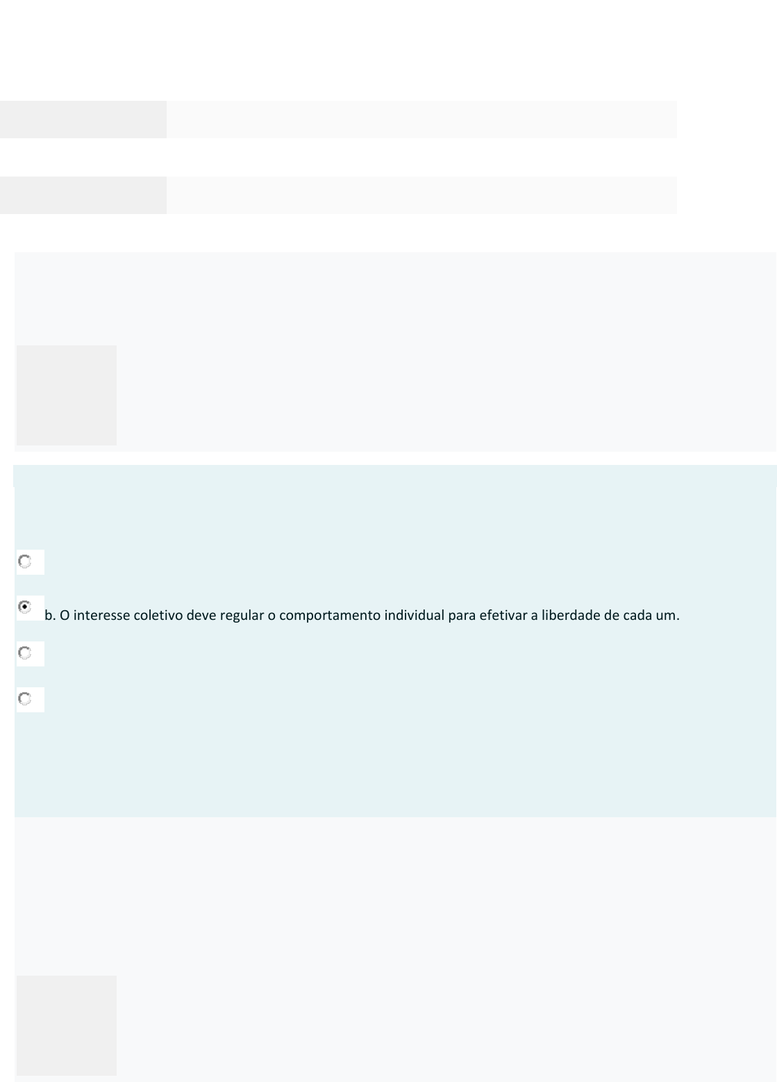 Filosofia I Iniciado em quinta, 16 dez 2021, 14:17 Estado Finalizada Concluída em quinta, 16 dez 2021, 14:33 Tempo empregado 15 minutos 49 segundos Avaliar 9,00 de um máximo de 10,00(90%) Questão 1 Correto Atingiu 1,00 de 1,00 Marcar questão Texto da questão Assinale a alternativa correta: Escolha uma opção: a. A liberdade humana é a liberdade do indivíduo como ser individual. b. O interesse coletivo deve regular o comportamento individual para efetivar a liberdade de cada um. c. Cada escolha individual nos afasta da vida social e nos aproxima da razão filosófica. d. A liberdade se fundamenta em fazer o que o ser humano deseja. Questão 2 Correto Atingiu 1,00 de 1,00 Marcar questão ediea Realce Texto da questão Qual alternativa está errada sobre o Capitalismo? Escolha uma opção: a. a sociedade capitalista, tem sua base na compra-e-venda de força de trabalho e sua essência na redução do ser humano a mercadoria b. no Capitalismo, o trabalho torna-se um instrumento de dominação, fonte de lucro e exploração c. a sociedade capitalista constrói possibilidades do livre e pleno desenvolvimento humano d. a forma em que o trabalho é desenvolvido, não permite que o trabalhador se reconheça como produtor da riqueza e das coisas Questão 3 Correto Atingiu 1,00 de 1,00 Marcar questão Texto da questão A moral possui uma conotação diferenciada segundo as características culturais, geográfica, de grupo e de classe social, entre outros fatores. Escolha uma opção: Verdadeiro Falso Questão 4 Correto Atingiu 1,00 de 1,00 Marcar questão Texto da questão Qual dessas alternativas não representa o conceito de ideologia? Escolha uma opção: a. é o conjunto de ideias, concepções ou opiniões sobre algum ponto sujeito a discussão ediea Realce ediea Realce b. é a opinião de grupos políticos considerados de esquerda ou de direita c. tende a ocultar os distintos interesses existentes na sociedade d. substitui o papel que antes tinham alguns mitos e teologias Questão 5 Correto Atingiu 1,00 de 1,00 Marcar questão Texto da questão Os proprietários dos meios de produção são os burgueses , também chamados de capitalistas, que possuem os meios de produção necessários para a produção, assim como o capital (dinheiro investido na produção, objetivando a obtenção de lucro, de mais-valia). Questão 6 Correto Atingiu 1,00 de 1,00 Marcar questão Texto da questão A ideologia é apresentada com base nas seguintes características: Escolha uma ou mais: a. as diferenças de classe e os conflitos sociais são camuflados b. constitui um corpo sistemático de representações que nos "ensinam" a pensar e de normas que nos "ensinam" a agir c. adapta os indivíduos às tarefas prefixadas pela sociedade d. Assegura a aceitação sem críticas das tarefas mais penosas e pouco recompensadoras, em nome da "vontade de Deus", do "dever moral" ou da "ordem natural das coisas" ediea Realce ediea Realce ediea Realce ediea Realce ediea Realce Questão 7 Correto Atingiu 1,00 de 1,00 Marcar questão Texto da questão Comumente a ética é definida como parte da filosofia que analisa os fundamentos da ação humana , o seu significado, a sua validade, assim como o fundamento dos padrões dos limites, normas e orientações para a conduta humana. Questão 8 Incorreto Atingiu 0,00 de 1,00 Marcar questão Texto da questão Resposta O salario é a quantidade de dinheiro que o trabalhador recebe para reproduzir sua força de trabalho. Questão 9 Correto Atingiu 1,00 de 1,00 Marcar questão Texto da questão Sobre ética e moral: Escolha uma opção: a. A moral é uma construção social e histórica, na qual as ações humanas baseiam-se em referências de valor distintas. b. A moral analisa os fundamentos da ação humana ediea Realce ediea Realce ediea Realce ediea Realce ediea Realce c. Ética e moras são sinônimos d. A ética é um conjunto de regras e padrões de conduta que determinam o comportamento dos indivíduos na sociedade Questão 10 Correto Atingiu 1,00 de 1,00 Marcar questão Texto da questão Na sociedade como a nossa - divididas em classes sociais - a ideologia é um instrumento de dominação, que é mantido por um conjunto de procedimentos institucionais, jurídicos, políticos, policiais, pedagógicos, morais, psicológicos, culturais, religiosos, artísticos, usados para manter a dominação. Escolha uma opção: Verdadeiro Falso ediea Realce