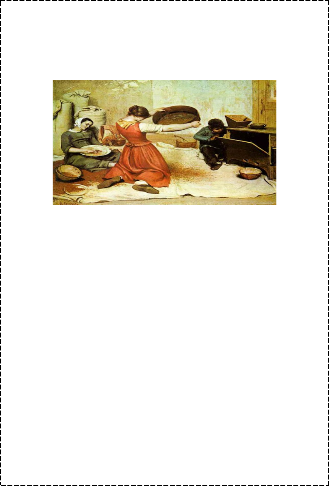 Escola E.E.M.BENEDITO CORREA DE SOUZA. DIRETORA: FÁTIMA FARIAS VICEDIRETORA: PATRÍCIA PROFº ESP. SILAS RODRIGUES REIS ESTUDANTE________________________________________________________ SÉRIE____________ TURMA____________ DATA 20/10/2021 EXERCÍCIO INTRODUÇÃO AO REALISMO Observe atentamente o quadro seguinte, de Gustave Courbet, pintor francês que introduziu o Realismo na pintura. As peneiradoras de trigo (1854), de Gustave Courbet. Entendendo o texto 1. A propósito do ambiente retratado no quadro, responda: a) Como ele se caracteriza? _____________________________________________________________________________________________________________________________________________________________________________________________________________________________________________ b) Trata-se de um ambiente próprio da zona rural ou da zona urbana? Justifique sua resposta com elementos do quadro. ______________________________________________________________________________________________________________________________________________________________2. Observe as personagens que compõem a cena. a) O que elas estão fazendo? ______________________________________________________________________________________________________________________________________________________________b) Levante hipóteses: Que vínculos pode haver entre elas? ______________________________________________________________________________________________________________________________________________________________c) Para elas, o que representa o trigo? _____________________________________________________________________________________________________________________________________________________________________________________________________________________________________________3. As primeiras telas de Courbet escandalizaram os salões de arte parisienses, por causa dos temas que abordavam, até então inéditos. a) Na hierarquia social, que posição ocupavam as personagens retratadas no quadro? _____________________________________________________________________________________________________________________________________________________________________________________________________________________________________________b) Apesar da condição social das personagens, o quadro desperta algum sentimento de piedade ou compaixão nos espectadores? ______________________________________________________________________________________________________________________________________________________________4. Certa vez perguntaram a Courbet se ele era capaz de pintar um anjo. E ele respondeu: “Jamais poderei pintar um anjo, porque nunca vi nenhum”. a) Qual é o princípio realista presente nessa resposta do pintor? ______________________________________________________________________________________________________________________________________________________________b) Na sua opinião, o quadro põe em prática esse princípio realista? Justifique sua resposta. ____________________________________________________________________________________________________________________________________________________________________________________________________________________________________________________________________________________________________________________________5. Observe as cores em destaque no quadro. Que relação elas têm com o tema abordado pelo pintor? _______________________________________________________________________________ ______________________________________________________________________________________________________________________________________________________________6. Em primeiro plano, destaca-se uma moça. a) O que sugerem os movimentos dela? _____________________________________________________________________________________________________________________________________________________________________________________________________________________________________________b) Interprete: O que a moça representa nesse quadro? _____________________________________________________________________________________________________________________________________________________________________________________________________________________________________________7. Um dos traços do Realismo é a crítica social. Considerando-se o contexto da época, o quadro faz uma crítica à sociedade de então? Justifique sua resposta. ____________________________________________________________________________________________________________________________________________________________________________________________________________________________________________________________________________________________________________________________