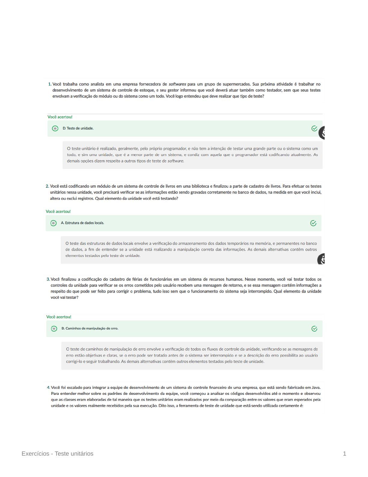 Exercícios - Teste unitários 1 Exercícios - Teste unitários Exercícios - Teste unitários 2