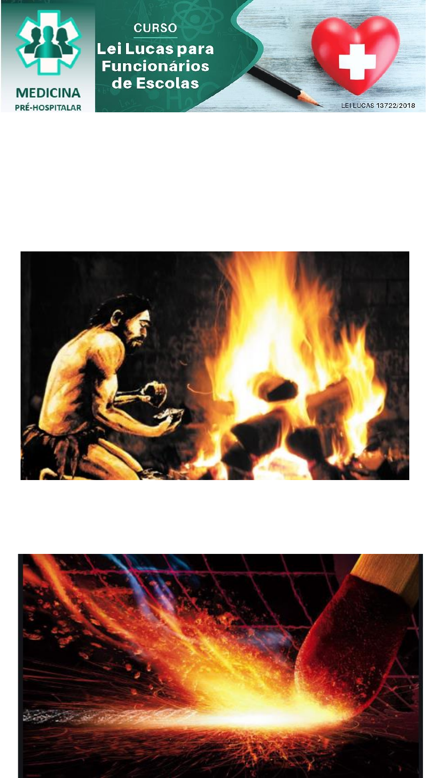 1 HOMEM X FOGO O primeiro contato do homem primitivo com o fogo foi através da observação da ação de relâmpagos sobre as madeiras das árvores, e que ele se propagava pelo aquecimento de galhos ou folhas secas, o que o levou a deduzir que a chama poderia começar com altas temperaturas. Desta forma o homem percebeu que o atrito entre dois pedaços de madeira ou pedra elevava a sua temperatura até produzir uma chama ou faísca, dando início ao fogo! Muitos e muitos anos depois, o homem descobriu que o atrito entre o mineral sílex com ferro ou aço produzia fagulhas mais fortes e duradouras. E com base nesta descoberta, em 1827 foi inventado, na Inglaterra, o palito de fósforo. 2 TRIÂNGULO DO FOGO Fogo é uma reação química que fornece calor, luz e chama. E só acontece na preseça de três elementos: Combustível, Oxigênio e Calor. Observe o triângulo do fogo: Oxigênio (Comburente) Combustível (É tudo que pode pegar Fogo) Calor - Ignição 3 TETRAEDO DO FOGO Reação em cadeia é o processo de sustentabilidade do fogo, que são formados durante o processo de queima do combustível, é quando o fogo se auto-alimenta, mantendo o processo da queima. EXPERIÊNCIA DA VELA 4 FOGO X INCÊNDIO Já vimos que o FOGO é uma reação química que produz luz e calor. O FOGO é controlado e desejado. Já o INCÊNDIO é uma forma descontrolada de FOGO, é destruidor e indesejado. Pode levar a morte pela inalação dos gases tóxicos por ele gerados e pelas graves queimaduras. FOGO CONTROLADO INCÊNDIO DESCONTROLADO FORMAS DE TRANSMISSÃO DO CALOR 1.CONDUÇÃO 5 2. CONVECÇÃO CONDUÇÃO: É a transferência de calor através de um corpo sólido, de molécula em molécula. É necessário o contato de um corpo com outro. CONVECÇÃO: Transferência de calor pelo movimento ascendente de massas de gases. Estas massas gasosas transporta o calor para cima. 6 3. IRRADIAÇÃO RESUMO: IRRADIAÇÃO: É a transmissão do calor por meio de ondas caloríficas. Todo corpo quente emite radiações que vão atingir os corpos frios. Ondas caloríficas atinge objetos, aquecendo-os. 7 PONTOS DE TEMPERATURA COMBUSTÍVEL É o alimento que alimenta o fogo e serve de campo para sua propagação. É todo material que queima. Os combustíveis podem ser sólidos, líquidos ou gasosos. PONTO DE FULGOR: A chama NÃO se mantém retirando a fonte de calor. PONTO DE COMBUSTÃO: A chama se mantém retirando a fonte de calor. PONTO DE IGNIÇÃO: Os gases entram em combustão apenas pelo contato com ar. OBSERVAÇÃO: Material combustível é considerado inflamável quando seu ponto de FULGOR é inferior a 80º.C, sendo líquido ou sólido. Os combustíveis gasosos possuem apenas ponto de IGNIÇÃO 8 Na maioria das vezes o combustível passa para o estado gasoso para então combinar com o oxigênio (O2). Em geral, o sólido e o líquido não pegam fogo. A velocidade da queima de um combustível depende de sua capacidade de combinar-se com o oxigênio, sob a ação do calor e da sua fragmentação (área de contato com o O2). COMBUSTÍVEIS SÓLIDOS Os combustíveis sólidos em sua maioria transformam-se em gases para reagir com o oxigênio. Outros transformam-se em líquidos e posteriormente em gases. Este combustível queima por 9 superfície e profundidade. Quanto maior a superfície exposta, mais rápido será o aquecimento do material e consequentemente o processo de combustão. COMBUSTÍVEIS LÍQUIDOS Os Combustíveis Líquidos se dividem em: Voláteis: São os que desprendem gases inflamáveis á temperatura ambiente. Exemplo: Àlcool, Benzina, etc. Não Voláteis: São os que desprendem gases inflamáveis em temperaturas maiores que a do ambiente. Exemplo: Óleo, graxa, etc. COMBUSTÍVEIS GASOSOS 10 Os gases não possuem volume definido, tendendo rapidamente a ocupar todo o recipiente em que estão contidos. Exemplo: Butano, Propano, etc. CLASSES DE INCÊNDIO O incêndio caracteriza-se pelo tipo de material em combustão e pelo estágio em que se encontra. Existem 5 classes de incêndio, e para cada classe, um tipo de extintor, que veremos no próximo capítulo. As classes são identificadas pelas letras A, B, C, D e K. CLASSE A – COMBUSTÍVEIS SÓLIDOS Queima na superfície e em profundidade, deixando cinzas. exemplos: papel, madeira, tecido, etc. 11 CLASSE B – COMBUSTÍVEIS LÍQUIDOS CLASSE C – EQUIPAMENTOS ELÉTRICOS Queima somente em superfície e não queima em profundidade. Não deixa resíduos quando queimado. Exemplo: gasolina, éter, álcool, gás de cozinha. Incêndio provocado por equipamentos elétricos energizados. Exemplo: fio desencapado, lâmpada incandescente, computador, etc. Quando estes equipamentos perdem a energização, passam a se enquadrar na CLASSE A. 12 CLASSE D – METAIS COMBUSTÍVEIS CLASSE K– ÓLEOS E GORDURAS É caracterizado pela queima em altas temperatura e por reagir violentamente com água. Ex: magnésio, zinco, antimônio, titânio, sódio, lítio e alumínio em pó. Incêndio em óleos e gorduras animais e vegetais. 13 PROCESSOS DE EXTINÇÃO DO FOGO Os métodos de extinção visam retirar um ou mais dos 3 componentes do fogo: Combustível, Comburente e Calor (Triângulo do Fogo). Retirando qualquer um dos três componentes o fogo de apagará, exceto para os combustíveis da Classe D. 14 AGENTES EXTINTORES DE INCÊNDIO Extintores de Incêndio são equipamentos que armazenam substâncias com capacidade de apagar o fogo. Para cada tipo de incêndio (vimos no capítulo anterior) existe um extintor apropriado. 15 Todos os extintores contém uma etiqueta de identificação, indicando para qual classe de incêndio o mesmo deverá ser usado e para qual(is) classe(s) não deverá ser utilizado. Abaixo segue o exemplo da etiqueta de um extintor de água. 16 TIPOS DE EXTINTORES 1. ÁGUA: É o agente extintor “Universal”, trabalha por resfriamento, indicado para apagar incêndios CLASSE A. A sua desvantagem é ser um bom condutor de corrente elétrica e de reagir bem com al