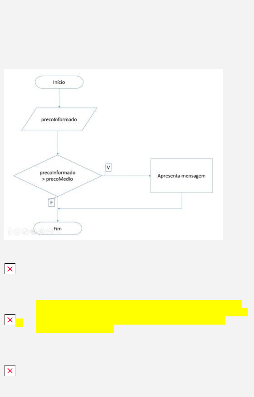Exercício algoritmo 003 5. Desvios condicionais na programação de sistemas serve para desviar o fluxo de um programa para atender a determinadas condições impostas, isto é, regras solicitadas ou ainda exceções. Neste sentido, analise o fluxograma que está sendo apresentado, e então assinale a alternativa que descreve o fluxo de maneira CORRETA: A) É solicitado o preço ao usuário; realizada uma condição, e enquanto a expressão for verdadeira a repetição da mensagem continua, senão, o fluxo segue diretamente para o final do programa. B) É solicitado o preço ao usuário; realizada uma condição, que se for verdadeira, é apresentada a mensagem e o fluxo do programa segue para o final; caso a condição for falsa, o fluxo segue diretamente para o final. C) É solicitado o preço ao usuário; realizada uma condição, e enquanto a expressão for verdadeira o loop continua executando, senão, o fluxo segue diretamente para o final do programa. D) É realizada uma condição, e quando a expressão for verdadeira é apresentada uma mensagem e o fluxo segue diretamente para o final do programa. 1. As estruturas de dados unidimensionais, também conhecidas por vetores ou matrizes de uma dimensão, representam um conjunto de dados que possuem o mesmo tipo (inteiro, real, caractere, booleano). Os vetores são estruturas de dados que são referenciadas pelo mesmo nome, necessitando de um número para acessá-los. Referente a vetores, assinale a alternativa CORRETA: A) Dependendo da linguagem de programação, a manipulação de dados de um vetor não é realizada por índices. B) A utilização de um vetor depende da linguagem de programação, pois pode ser muito diferente de uma linguagem para outra. C) A manipulação dos dados de um vetor é individual. D) A manipulação dos dados de um vetor também é em conjunto. 2. Em um algoritmo, muitas regras originam desvios condicionais dentro do código-fonte dos programas, o que faz garantir a satisfação de condições que foram exigidas. Os desvios condicionais podem ser utilizados dentro de loops de vetores normalmente, como se estivessem sendo utilizados em outro trecho do código-fonte. Neste sentido, analise o pseudocódigo a seguir, e então assinale a alternativa CORRETA: A) Serão impressos na tela os valores: 30 e 20. B) Serão impressos na tela os valores: 70 e 20. C) Serão impressos na tela os valores: 40 e 70. D) Serão impressos na tela os valores: 10 e 40. 3. Em determinadas situações, a utilização de estruturas de dados homogêneas é a solução para evitar a criação de várias variáveis do mesmo tipo, o que evita não somente a declaração, como também a manipulação de várias variáveis. Estas estruturas podem ser tanto vetores quanto matrizes bidimensionais, dependendo do caso. Neste sentido, analise a figura a seguir, e então assinale a alternativa CORRETA: A) A figura representa uma matriz bidimensional com 5 colunas e 5 linhas. B) A figura representa uma matriz bidimensional com 6 colunas e 6 linhas. C) A figura representa uma matriz unidimensional com 5 colunas e 5 linhas. D) A figura representa uma matriz unidimensional com 5 colunas e 6 linhas. 4. As estruturas de dados homogêneas permitem que sejam trabalhadas com agrupamentos de dados, cuja referência no código-fonte é apenas uma variável. Estas estruturas auxiliam na redução da quantidade de variáveis, tornando a programação menos trabalhosa e, consequentemente, o código mais legível. Referente a estruturas de dados homogêneas, assinale a alternativa CORRETA: A) Estruturas de dados homogêneas abrangem apenas estruturas de dados unidimensionais. B) Estruturas de dados homogêneas abrangem apenas estruturas de dados bidimensionais. C) Estruturas de dados homogêneas são conhecidas por algumas nomenclaturas: variáveis indexadas, vetores, arrays, entre outras. D) Estruturas de dados homogêneas não abrangem estruturas de dados bidimensionais. 5. Em determinados casos, a utilização de vetor para resolver algum problema torna-se mais trabalhosa, por ter de se criar mais de um no mesmo programa. Nestes casos, pode-se resolver utilizando uma única matriz bidimensional, cujo funcionamento é parecido com o de um vetor, mas ao invés de um único índice para manipular os dados, esta estrutura possui dois. Referente à matriz bidimensional, assinale a alternativa CORRETA: A) Pode ser comparada a uma tabela, que possui linhas e colunas. B) Pode ser comparada a uma lista com uma coluna de valores. C) Pode ter até três linhas e ilimitada a quantidade de colunas. D) Pode ter até três colunas e ilimitada a quantidade de linhas. 1. O desenvolvimento de software é uma tarefa complexa, pois existem vários fatores que contribuem para isso. As diversas regras necessárias para a implementação em um código-fonte por exemplo, que o torna complexo de se desenvolver e para uma futura manutenção. Esta questão pode ser amenizada utilizada os princípios da modularidade. Referente a modularidade, assinale a alternativa CORRETA: A) É a divisão de um código-fonte em partes menores e menos específicas. B) É a divisão de um código-fonte em partes menores mais específicas. C) É a divisão de um código-fonte em partes maiores e menos específicas. D) É a divisão de um código-fonte em partes maiores e mais específicas. 2. Dividir um código-fonte em módulos pode ser descrito por dividi-lo em blocos de código que podem efetuar operações computacionais de entrada, processamento e saída. Utilizando-se esta metodologia de dividir um problema complexo em módulos, está se tratando os problemas de forma isolada. Referente a modularização de código, assinale a alternativa CORRETA: A) Cada módulo deve possuir mais de um ponto de entrada; a unidade mestre continua executando seu fluxo enquanto a unidade escrava executa suas instruções. B) Cada módulo deve possuir um ponto de entrada; a unidade mestre continua executando s