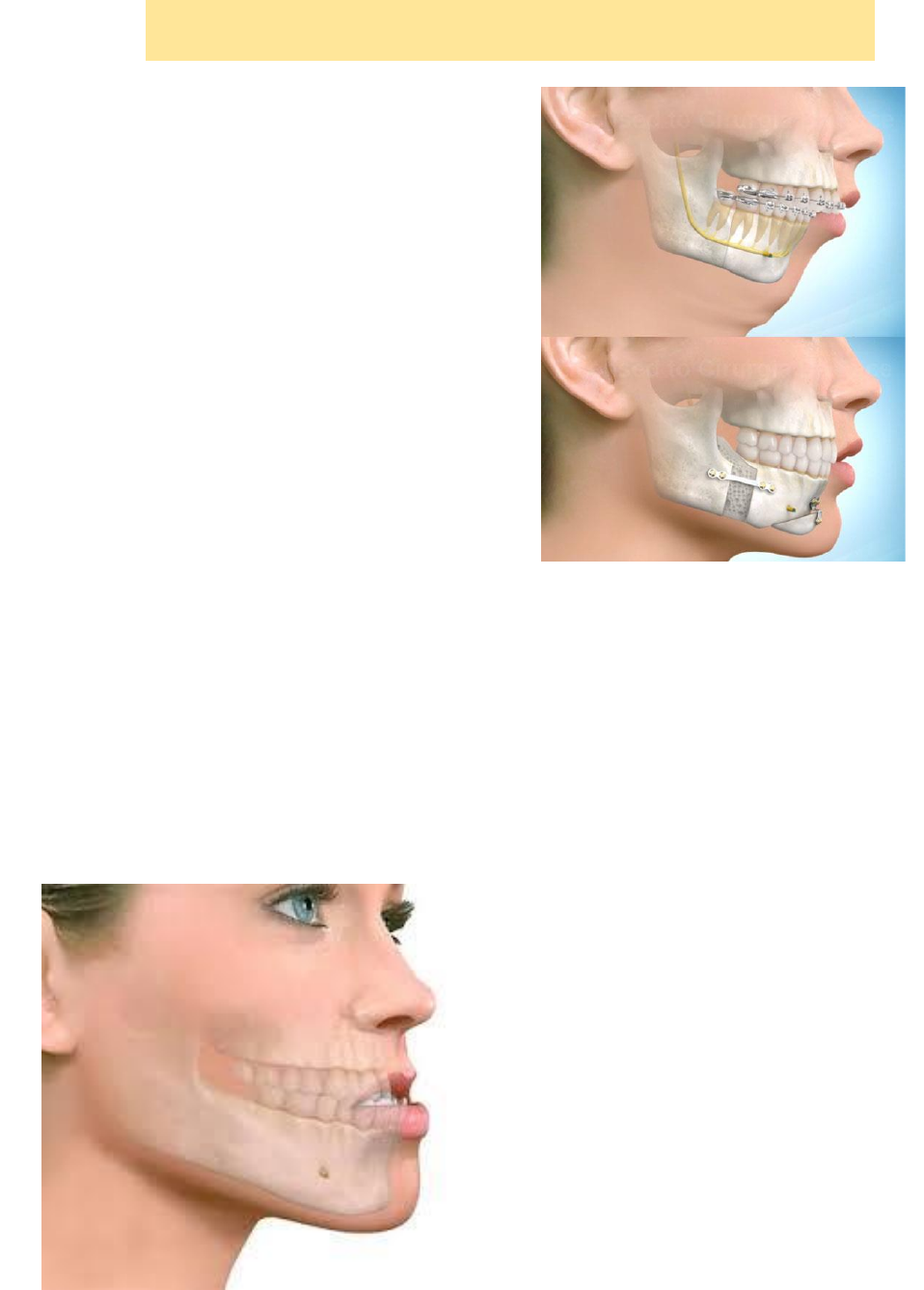 Retrognatismo e Prognatismo Retrognatismo Consiste em um crescimento anormal da mandibula, onde ocorre o chamado queixo pequeno, provocando uma desarmornia na face. O Retronatismo ocorre quando o crescimento osséo é insuficiente Geralmente, os casos de retrognatismo são causados em função de fatores hereditários ou genéticos. Assim, a pessoa já tem uma tendência para desenvolver esse problema. Porém, ele pode estar associado a hábitos que estimulam essas alterações ósseas. Esse é o caso de: • chupar chupeta; • chupar o dedo; • traumatismos; • má formação; • respirar pela boca. Em casos de retrognatismo, é comum que o paciente apresente um acúmulo de tecidos moles (papada), problemas na ATM (articulação temporomandibular), ronco, apneia, problemas na mastigação e na respiração. Dificuldades na fala e perda precoce de dentes também são características comuns de pacientes com esse quadro. Prognatismo O prognatismo caracteriza-se por uma anomalia no crescimento da mandibula, provocando uma desarmonia na face, Além de problemas dentarios o paciente com prognatismo apresentam perfil côncavo mordida alterada e labio inferior volumoso. Sintomas comuns em pessoas progntas: Ruídos articulares, dor de cabeça, nos ouvidos e musculos mentoniano hiperfuncional, ainda apresentam problemas no encaixe do dente, prejudicando a mastigação e a respiração do individuo.