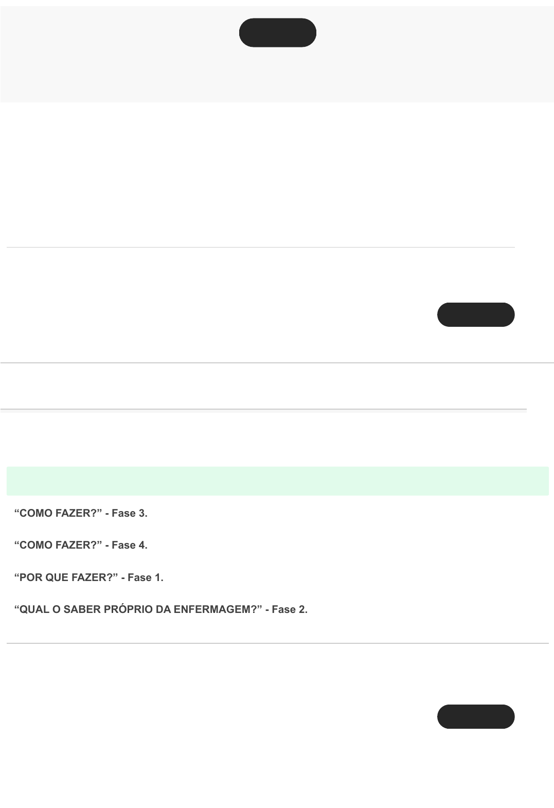Conteúdo do exercício Ocultar opções de resposta Pergunta 1 -- /1 Como era conhecida e qual era a fase da enfermagem que concentrou seus esforços no saber técnico, decorrente do aumento da demanda por profissionais enfermeiros? Resposta correta“O QUE FAZER?” - Fase 2. “COMO FAZER?” - Fase 3. “COMO FAZER?” - Fase 4. “POR QUE FAZER?” - Fase 1. “QUAL O SABER PRÓPRIO DA ENFERMAGEM?” - Fase 2. Pergunta 2 -- /1 10/10 Nota final Enviado: 14/02/22 17:54 (AMT) Ocultar opções de resposta Ocultar opções de resposta Marque o que é correto afirmar sobre o desenvolvimento do conhecimento na enfermagem. A subordinação à classe médica nunca foi um problema para a enfermagem, sendo benéfica e perpetuando até os dias atuais. Resposta correta Processo contínuo, que busca a partir de bases teóricas próprias, seu caráter científico enquanto detentora do conhecimento para a realização do cuidado. Não tem precedentes históricos; seu processo é estático. A trajetória política interfere no conhecimento da enfermagem; nunca havendo preocupações enquanto classe profissional. A trajetória política não interfere no conhecimento da enfermagem, sendo dependente apenas dos saberes da medicina. Pergunta 3 -- /1 “Sistematizado, organizado, descritivo”, estas são características de um dos padrões de conhecimento da enfermagem. Marque o padrão correto. Padrão de conhecimento estético. Resposta corretaPadrão de conhecimento empírico. Padrão de conhecimento ético. Padrão de conhecimento pessoal. Padrão de conhecimento sociopolítico. Pergunta 4 -- /1 Ocultar opções de resposta Ocultar opções de resposta Qual teoria propusera a combinação de promoção da saúde a partir de cuidados concentrados na perspectiva humanística, junto da aplicação dos conhecimentos científicos? Teoria das necessidades humanas básicas, de Wanda Horta. Teoria do cuidado cultural, de Leininger. Teoria humanística e humanitária, de Martha Elizabeth Rogers. Resposta corretaTeoria do cuidado transpessoal, de Jean Watson. Teoria de enfermagem humanística, de Paterson e Zderad. Pergunta 5 -- /1 Nas diferentes fases da enfermagem, podemos identificar uma percursora nas teorias de enfermagem. Marque a opção correta. Jean Watson: teoria humanística e humanitária. Wanda Horta: teoria ambientalista. Wanda Horta: teoria das necessidades humanas básicas. Resposta corretaFlorence Nightingale: teoria ambientalista. Florence Nightingale: teoria de enfermagem humanística. Pergunta 6 -- Ocultar opções de resposta Ocultar opções de resposta Quais são as fases da enfermagem em que é notável a dependência da enfermagem pelo saber médico? Fases 1, 2 e 3. Fases 1 e 4. Fases 2 e 4. Fases 2, 3 e 4. Resposta corretaFases 2 e 3. Pergunta 7 -- /1 Dentre os padrões de conhecimento de enfermagem, existe um que deve tangenciar todos os demais, para que o cuidado seja realizado com responsabilidade. Marque a opção correta. Padrão de conhecimento sociopolítico. Padrão de conhecimento empírico. Padrão de conhecimento estético. Padrão de conhecimento pessoal. Resposta corretaPadrão de conhecimento ético. Pergunta 8 -- /1 Ocultar opções de resposta Ocultar opções de resposta O padrão de conhecimento pessoal, tem o autoconhecimento como requisito para compreender as necessidades do outro em sua totalidade. Diante desta informação, assinale qual característica não se aplica ao padrão pessoal: Imparcialidade; Cuidado sensível; Competência profissional; Contribuição pessoal; Resposta corretaProcesso estático; Pergunta 9 -- /1 Dentro do conceito amplo de cuidado, não pode ser considerado sinônimo ou significado de cuidado: Resposta corretaProcedimento unicamente biomédico; Fenômeno complexo; Noção de obrigação ou dever; Compromisso social. Desvelo; Pergunta 10 -- Ocultar opções de resposta Considerada a primeira teórica da enfermagem, Florence Nightingale formulou a teoria ambientalista. Dentro de seus conhecimentos, assinale àquele que não faz parte de sua teoria: Alimentação saudável; Resposta corretaAmbientes escuros e arejados. Ambientes arejados e ensolarados; Destino correto dos rejeitos; Reforma do ambiente hospitalar;