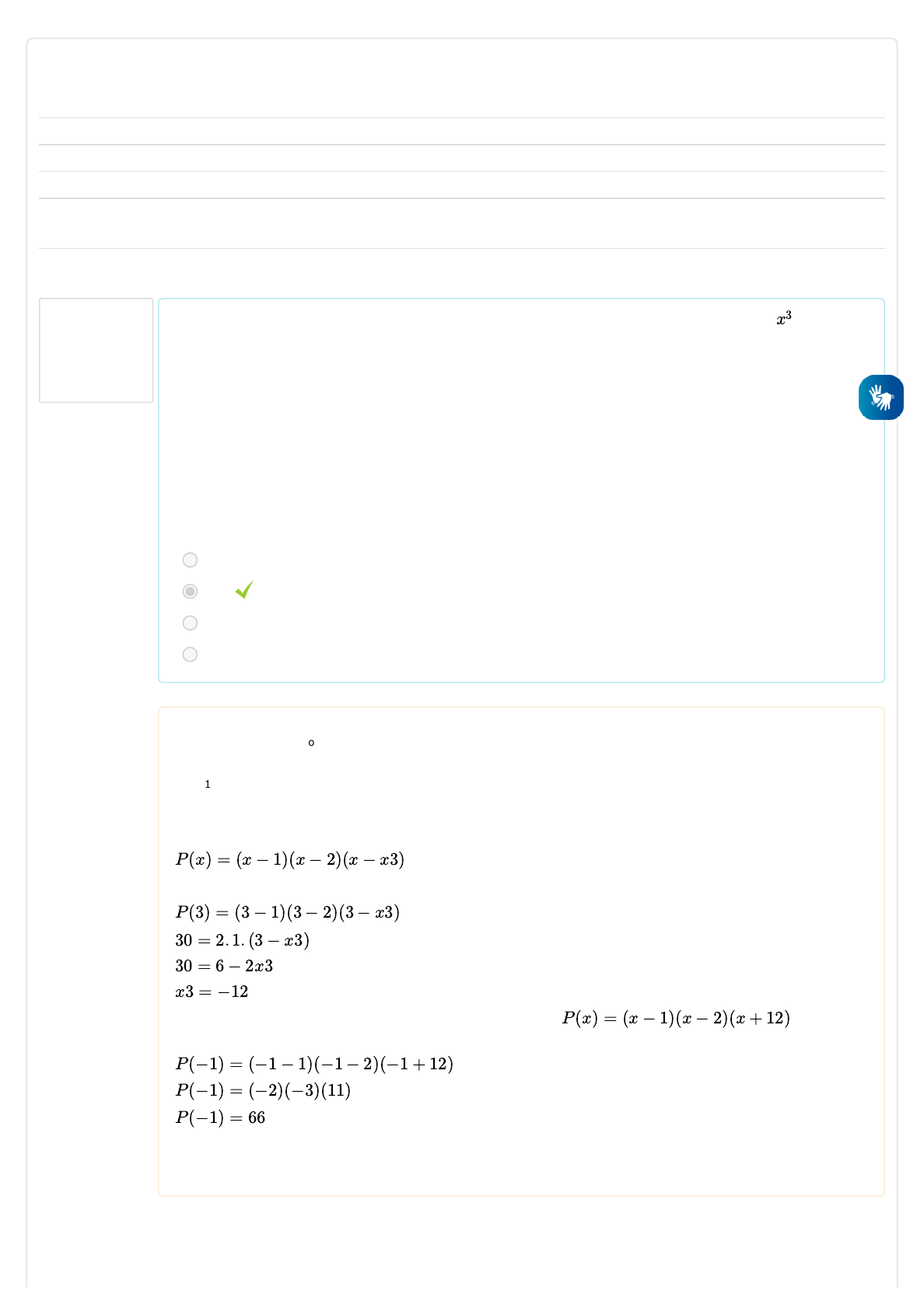 dadas, assim como o coeficiente do termo de 3 grau, e o valor do polinômio para x=3. Com