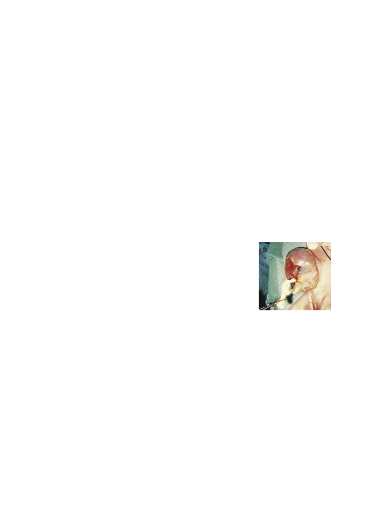 peritônio e o âmnio. A hérnia seria composta de pequenas alças intestinais. A onfalocele