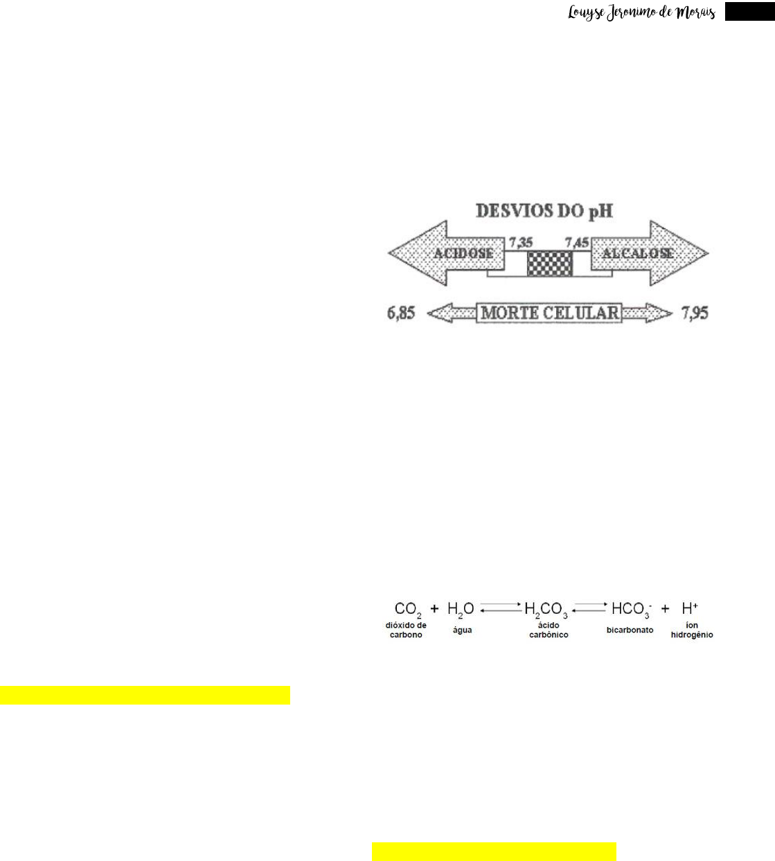 1 Gasometria arterial É um exame complementar utilizado na pneumologia e na terapia intensiva. É feito a partir da punção da artéria radial ou braquial ou femural (compressão por 10 a 15 min, faz para evitar hematoma). Consiste na medição dos gases sanguíneos no sangue arterial: pO2, pCO2, pH. O transporte de CO2 tem um efeito direto sobre o equilibro acidobásico do sangue. O pulmão excreta ácido volátil. Quanto melhor a ventilação alveolar, mais se consegue eliminar CO2. Este último, por sua vez, combina- se com a água, formando ácido carbônico. Há dissociação de íons hidrogênio e íons bicarbonato. • PaO2 em ar ambiente nível do mar: 109 – 0,45 x idade. o Idade 30 anos: PaO2 = 95 o Idade 70 anos: PaO2 = 77 A manutenção do equilíbrio é fundamental para a homeostasia. A maioria das reações químicas do organismo ocorre em faixas estreitas de pH. O pH se relaciona com a concentração de íons H+. • pH ↓ = ↑ concentração de H+ (acidose); • pH ↑ = ↓ concentração de H+ (alcalose). Os distúrbios acidobásicos são frequentemente encontrados nos pacientes críticos. Existem sistemas tampão para manter o pH constante, apesar da adição de ácidos ou bases ao meio interno. Sistemas que vão regular a concentração de H+ • Sistema tampão: sistema químico de tampão acidobásico dos líquidos corporais. Ao agir, conseguem reduzir a variação no pH de forma muito rápida (em segundos). Ele não vai eliminar os íons hidrogênio, vai apenas mantê-lo fixado. Ocorre logo no início da alteração do pH do plasma. • Centro respiratório: regula a remoção do CO2, assim como do ácido carbônico no plasma. Isso ocorre em minutos. • Rins: eliminam mais bicarbonato ou íons hidrogênio. Excretam diurese mais ácida ou alcalina, de modo a manter a concentração de íons hidrogênio. No entanto, os rins demoram mais para atuarem no equilíbrio do pH. Começa a agir em torno de alguns dias. O primeiro sistema que vai agir é o tampão, depois o respiratório e, por fim, o renal. Quando há um aumento da concentração de íons hidrogênio, há queda do pH, o que leva a uma acidemia. Quando reduz a concentração de H+, temos um meio alcalino. Variações muito grandes do pH levam à morte celular e são incompatíveis com a vida, por isso há a ação desses sistemas e, de início, o sistema tampão para que o pH não varie tanto. O pH plasmático é determinado principalmente pela relação dos íons bicarbonato e pelo CO2. A função do sistema tampão é evitar variações bruscas do pH. Os íons hidrogênio se ligam com o bicarbonato, formando ácido carbônico, que vira CO2 e água. Isso também ocorre de forma inversa. A enzima anidrase carbônica catalisa a reação. Quando se eleva o bicarbonato, este se junta com o hidrogênio, aumentando o CO2; o inverso também acontece. O bicarbonato é considerado a base do sistema, porque ele vai consumir íons hidrogênio. O CO2 é considerado o ácido do sistema, porque ele libera os íons hidrogênio, após se juntar com a água e formar o ácido carbônico. Como analisar uma gasometria arterial? 1. Saber se o gasômetro está calibrado: coloca na fórmula de Henderson-Hasselbach. • pH = 6,10 + log (HCO3/PaCO2 x 0,003060) Ex.: pH = 7,25; PaCO2 = 25 mmHg; HCO3 = 10,7 mEq/L pH = 6,10 + log (10,7/25 x 0,003060) = 7,254 2. Verificar se existe alteração do pH e qual o distúrbio acidobásico primário. • Valores normais na gasometria arterial 2 o pH: 7,35 – 7,45 o pCO2: 35-45 (componente respiratório, porque quem elimina são os pulmões) o pO2: 109 – 0,45 x idade o HCO-3: 22-26 (componente metabólico) o HCO-3: padrão ou standard – corresponde ao HCO-3 do sangue após a correção da PaCO2 para 40. Só estará alterado se ocorrer déficit ou excesso real de bicarbonato no sangue. o BE (base excess)/Buffer Base Na gasometria, existem dois valores de bicarbonato. Há o bicarbonato normal e o padrão ou standard (ST). Isso acontece porque, por exemplo, se houver elevação da pCO2 no sangue, em segundos, o sistema tampão age elevando o bicarbonato. Isso significa que o organismo está produzindo bicarbonato a mais? Ainda não, porque só quem está agindo é o sistema tampão. O bicarbonato que já existe no sistema tenta neutralizar a ação do CO2. No valor do bicarbonato standard, o gasômetro corrige o valor da pCO2 como se ela estivesse normal e, se a elevação do bicarbonato estava proporcional apenas à elevação da pCO2, o valor dele vai ser normal. Com o passar dos dias, o rim começa a reter mais bicarbonato para neutralizar o pH mais ácido devido ao aumento da pCO2 no sangue. Aí sim que o bicarbonato standard se eleva. Uma alteração respiratória crônica altera os dois bicarbonatos. Se tiver alteração na pCO2, tem como saber se é aguda ou crônica. Olha o bicarbonato padrão ou standart. O bicarbonato não é a única base do sistema, existem outras também. Quando essas bases se somam, teremos um valor denominado buffer base. Quando há um excesso ou déficit de bases, chamamos de base excess (BE). Valor normal = -2 a +2 • BE+: alcalose metabólica • BE-: acidose metabólica. Em UTI, esse valor ajuda até no prognóstico do paciente. Quanto menor o seu valor, mais grave é o paciente. Só se altera em distúrbios crônicos. Distúrbios acidobásicos - classificação • Acidose metabólica: bicarbonato reduzido • Acidose respiratória: CO2 aumentado (retenção) • Alcalose metabólica: bicarbonato aumentado • Alcalose respiratória: CO2 reduzido Mecanismos compensatórios Todo distúrbio primário gera uma resposta secundária. Se o distúrbio primário for metabólico, a resposta secundária é respiratória, e vice versa. Esta resposta secundária tem como objetivo atenuar o efeito do distúrbio primário sobre o pH. Geralmente, a resposta secundária não normaliza o pH, mas evita variações muito grandes. Classificação dos distúrbios • Simpl